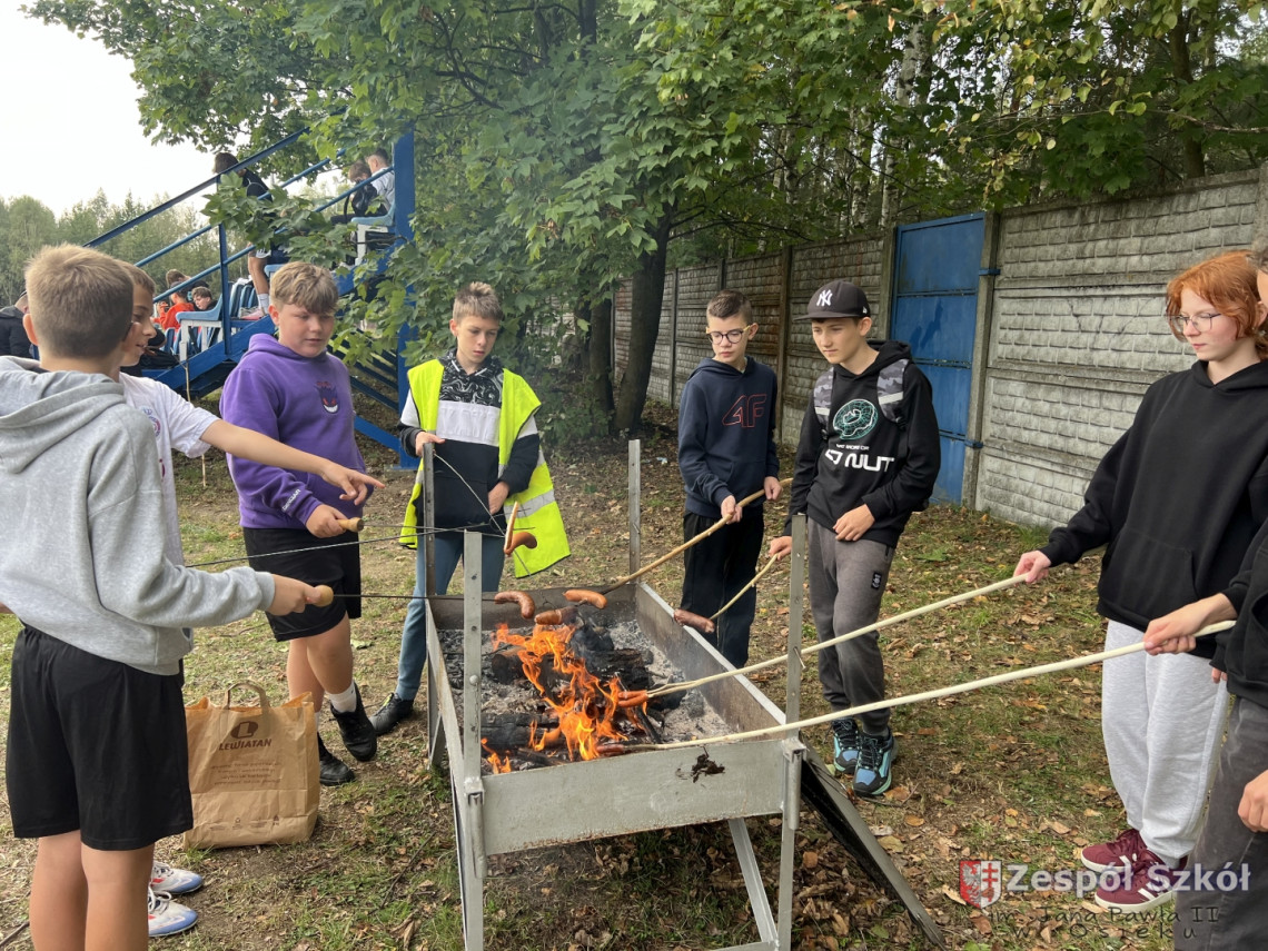 26. 09. 2024r. uczniowie klas  VI a, VI b  i VIII  korzystając z pięknej pogody,  pierwszych jesiennych dni,  uczestniczyli  w ognisku klasowym. Śmiechy, udana atmosfera, a przede wszystkim roznoszący się zapach smażonych kiełbasek to nic innego niż program ogniska integracyjnego.  Oprócz pieczenia tradycyjnych kiełbasek były także zabawy, gry zespołowe oraz relaks na świeżym powietrzu. Gry i zabawy (m. in. przeciąganie liny, gry zespołowe, podchody) nauczyły nas zdrowej rywalizacji i pokazały, że zabawa uczy, bawi i łączy. Ognisko zakończyło się dyskoteką na „świeżym powietrzu”. Czas upłynął bardzo szybko i w świetnym nastroju.  Spotkanie przy ognisku dostarczyło  mnóstwo radości sprzyjało  kształtowaniu pozytywnych relacji w grupie i z nauczycielami. Takie ogniska klasowe jak najbardziej służą integracji, choćby po to by oderwać się od spraw rzeczywistych i porozmawiać na „luźne” tematy. Wszyscy świetnie się bawili i miło spędzili czas.