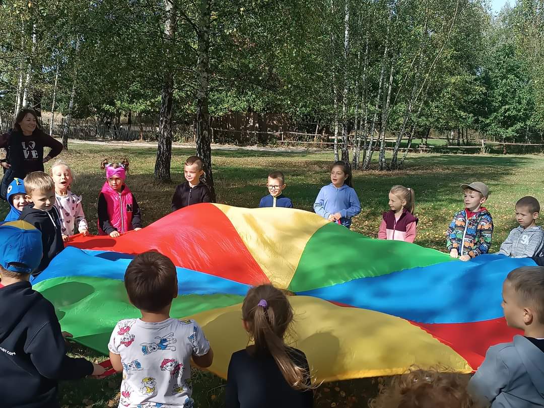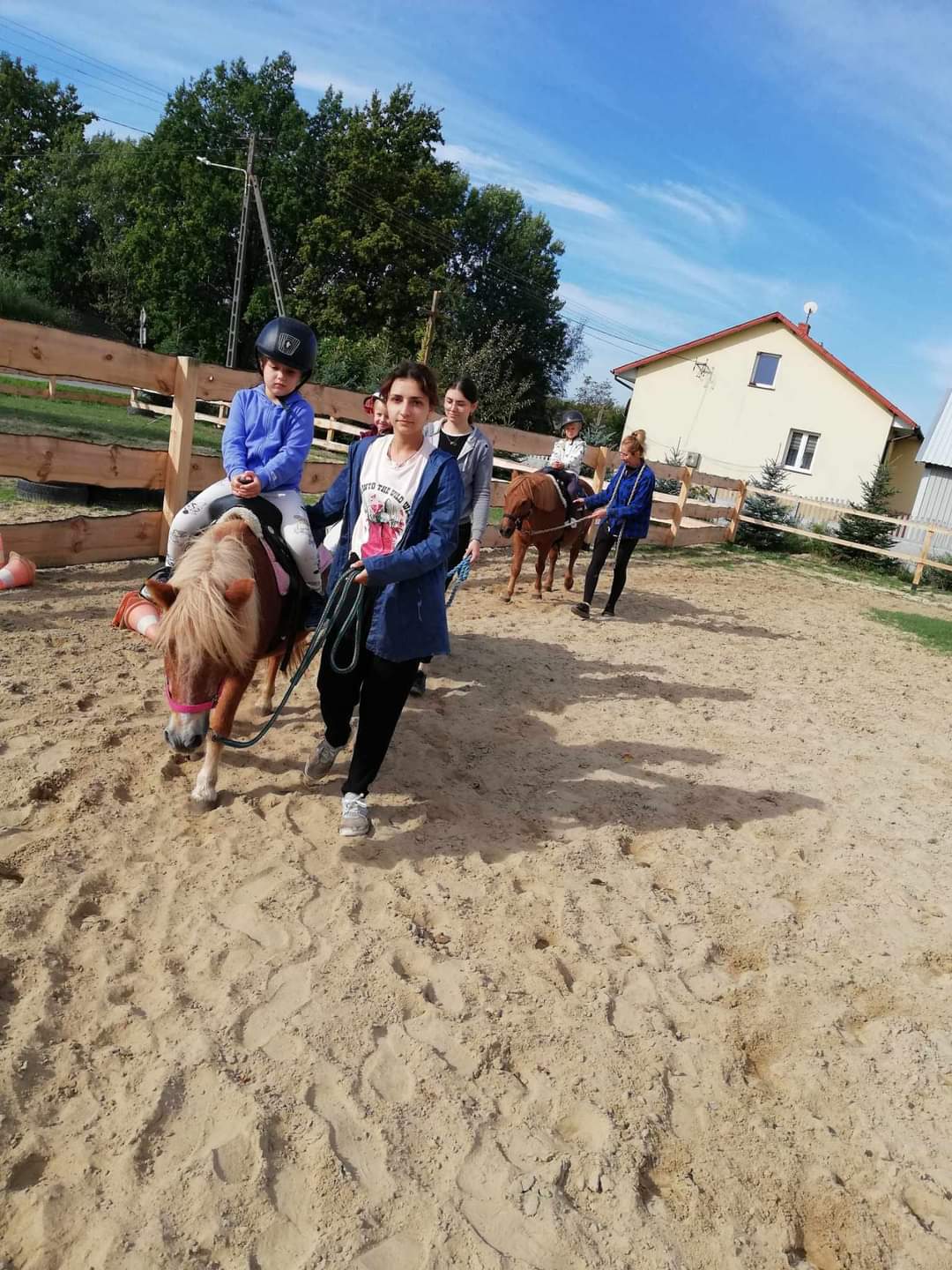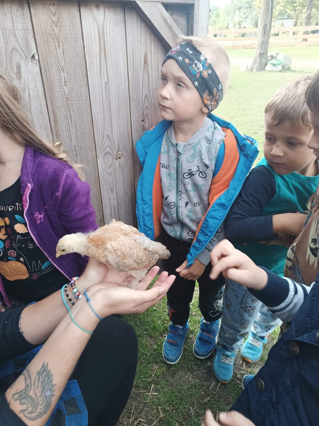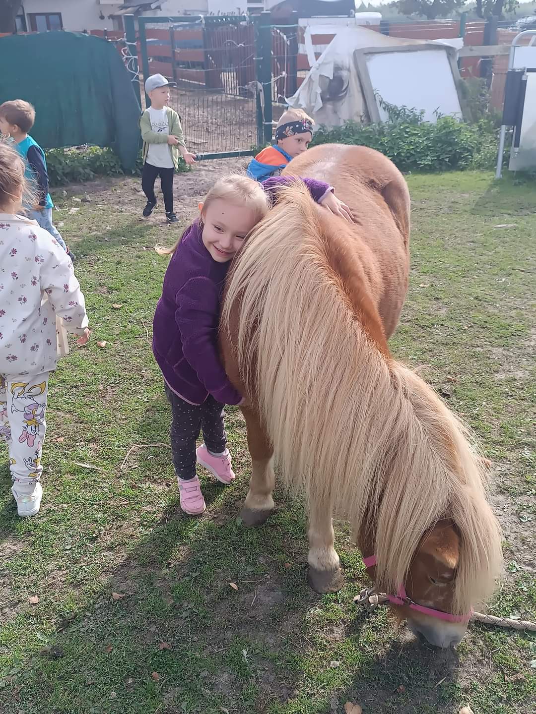 Właśnie w to urokliwe miejsce wybrały się tego dnia grupy 4 i 5-latków wraz z wychowawczyniami p.M.Domagała-Okoń i A.Kos. Celem wycieczki było zapoznanie dzieci ze zwierzętami żyjącymi na wsi, aktywnym wypoczynkiem na świeżym powietrzu, poszerzaniem edukacji ekologicznej, dbałości o środowisko i ochronę przyrody.Przedszkolaki miały przyjemność zobaczyć przyjazne zwierzęta, wziąć udział w lekcji jazdy konnej, a na koniec zjeść przepyszne kiełbaski z ogniska.To był dzień pełen wrażeń 🙂💪😍