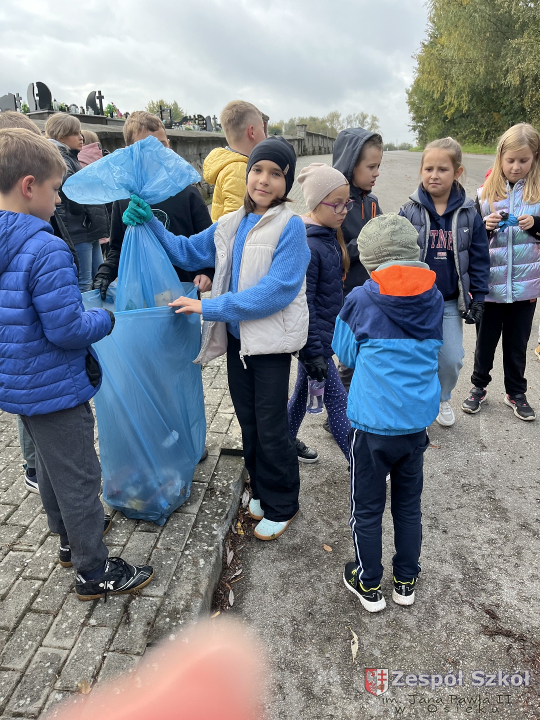 Uczniowie klas: I-IV wyposażeni w rękawice ochronne i worki na śmieci sprzątali teren wokół szkoły, kościoła, drogę na cmentarz, park i plac zabaw. Podjęte działanie proekologiczne zwróciło uwagę na niezwykle ważny temat, jakim jest ochrona klimatu, postawa odpowiedzialności i dbałość o środowisko oraz sprawiło, że nasza mała ojczyzna stała się jeszcze piękniejsza.
