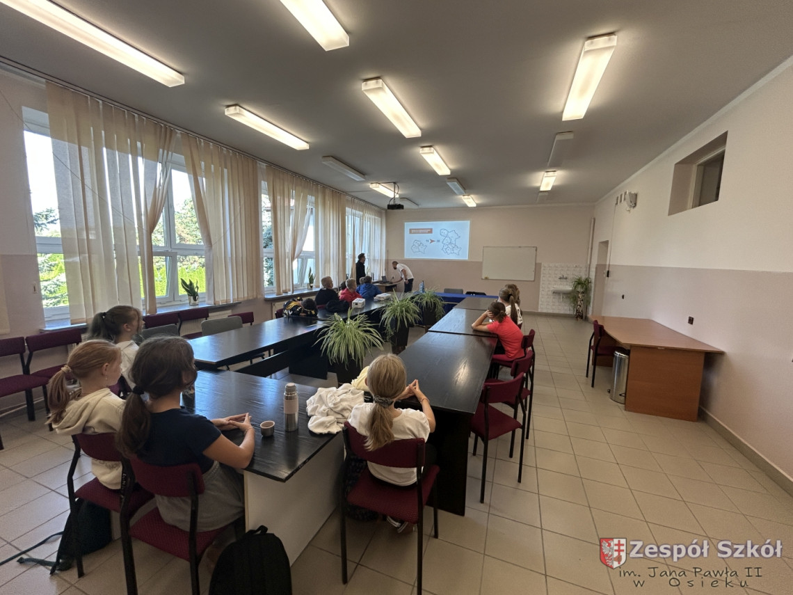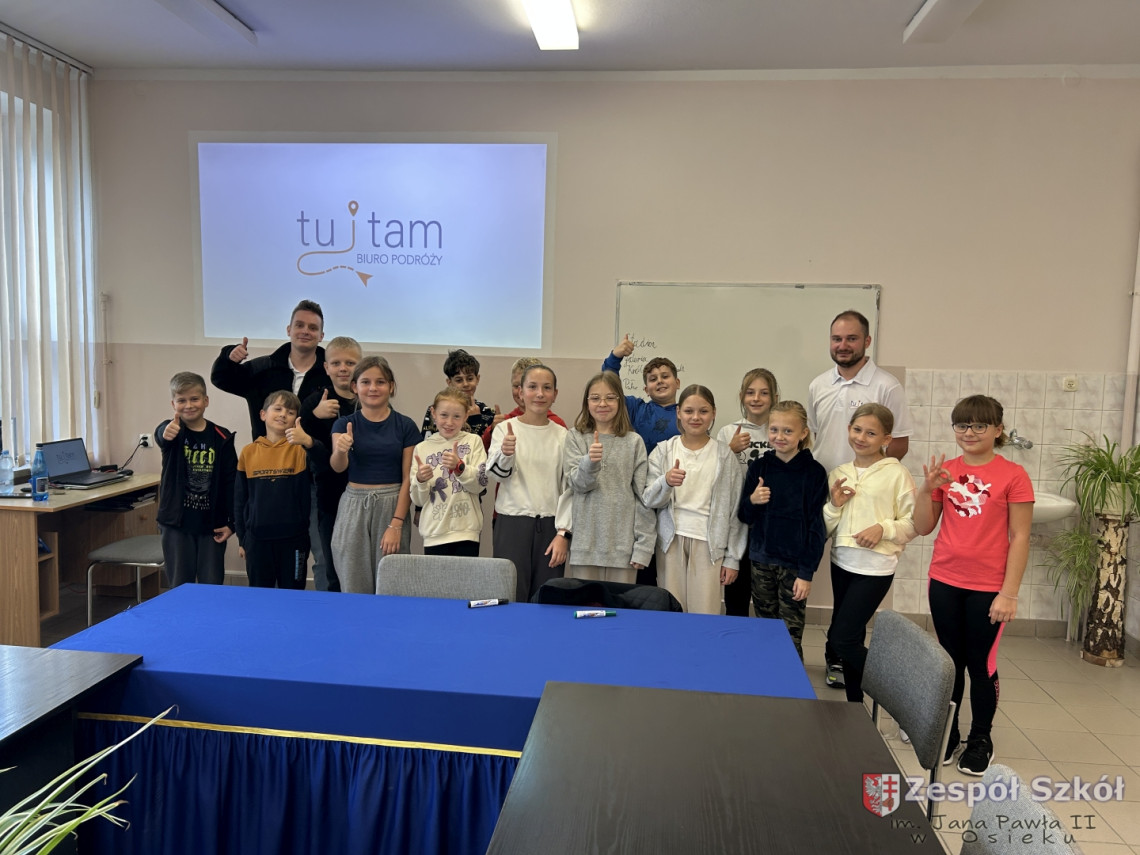 W dniu 09. 10. 2024 r. uczniowie klas: 5,6a,6b,7,8 Zespołu Szkól im. Jana Pawła II w Osieku uczestniczyli w interesującym spotkaniu w ramach doradztwa zawodowego poprowadzonego przez przedstawicieli Biura Podróży