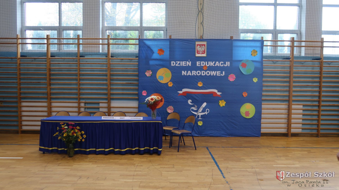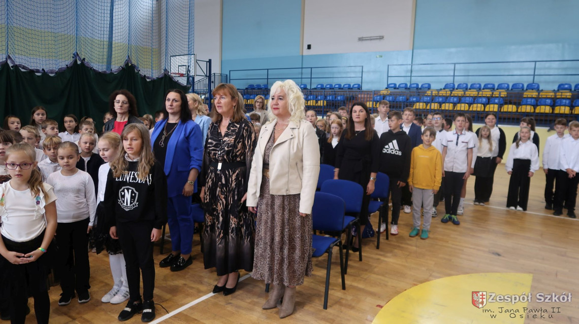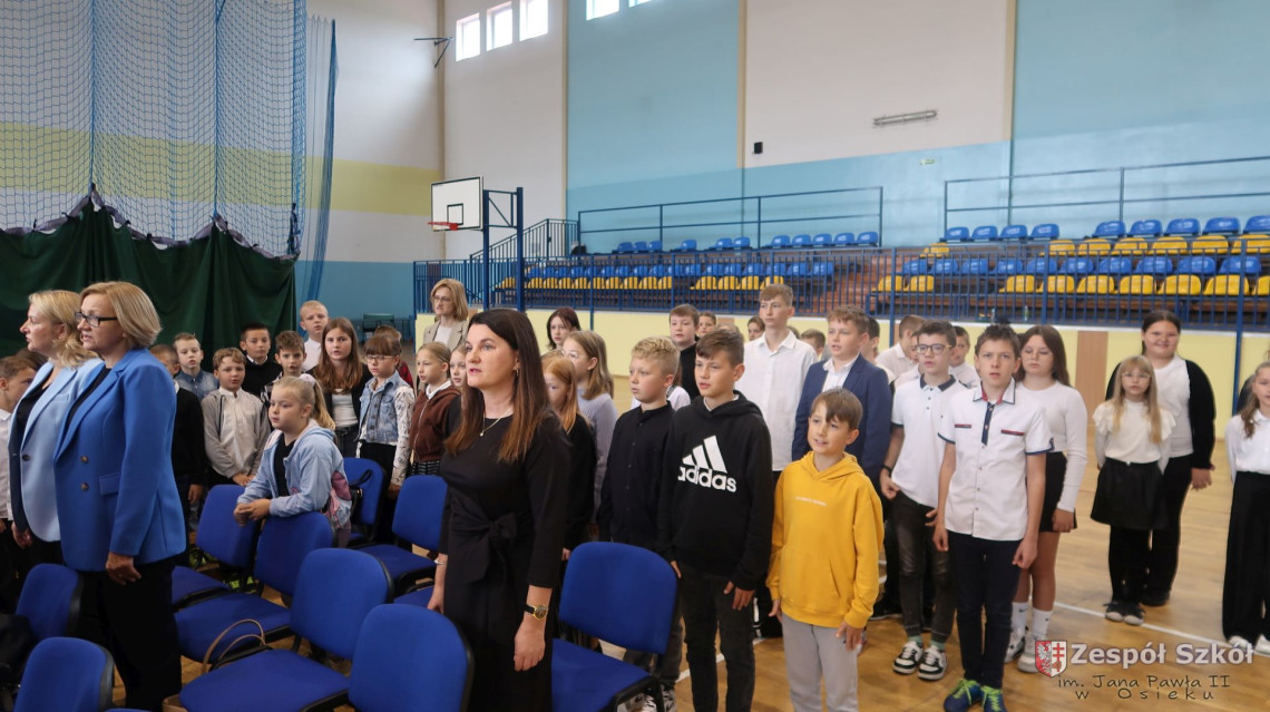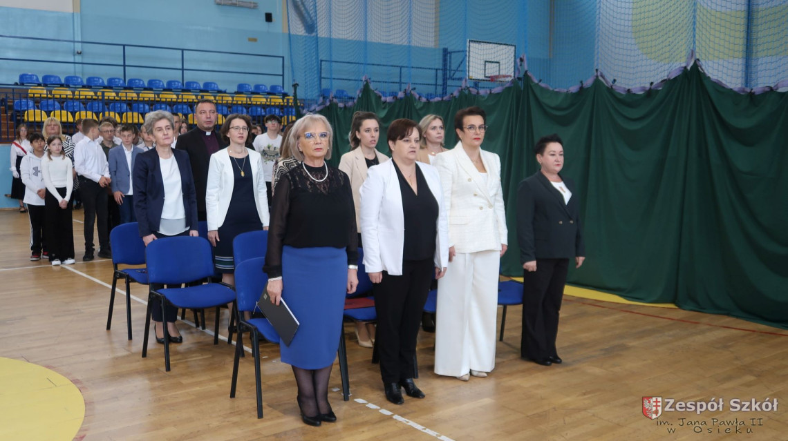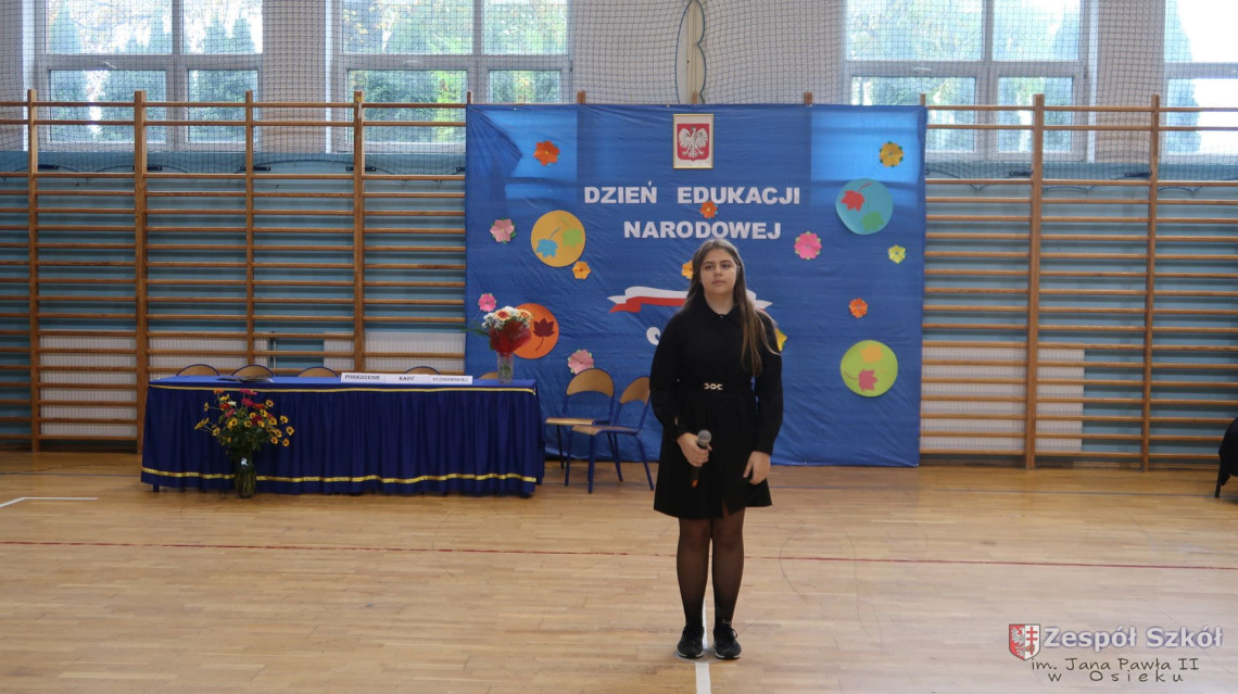 Akademię rozpoczęła przemówieniem dyrektor Zespołu Szkół im. Jana Pawła II w Osieku pani Małgorzata Kunowska, która serdecznie powitała wszystkich zebranych na tej uroczystości. Pani dyrektor złożyła życzenia nauczycielom i pracownikom szkoły oraz wręczyła Nagrody Dyrektora.