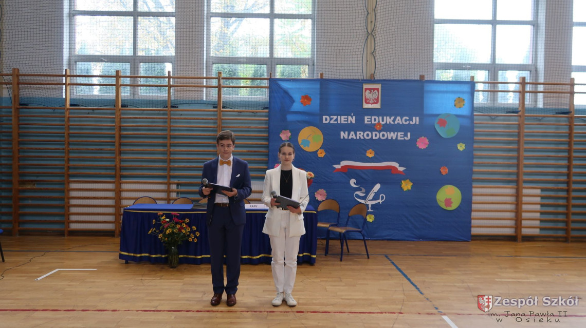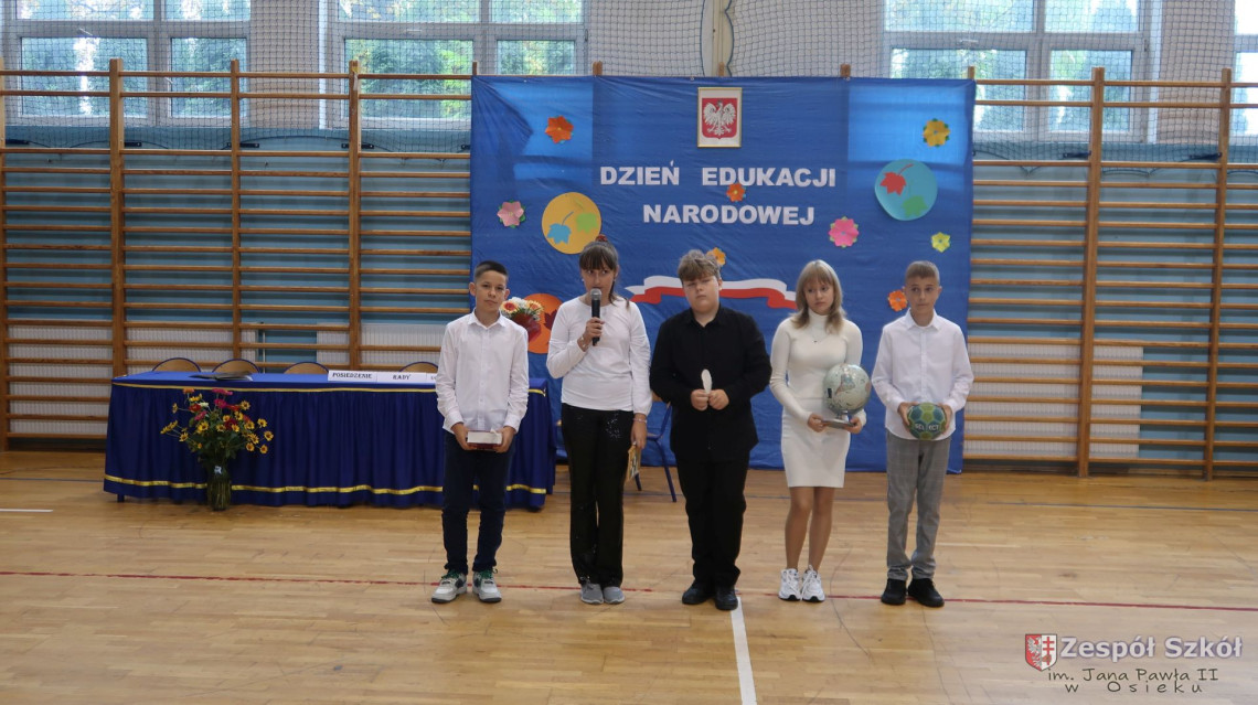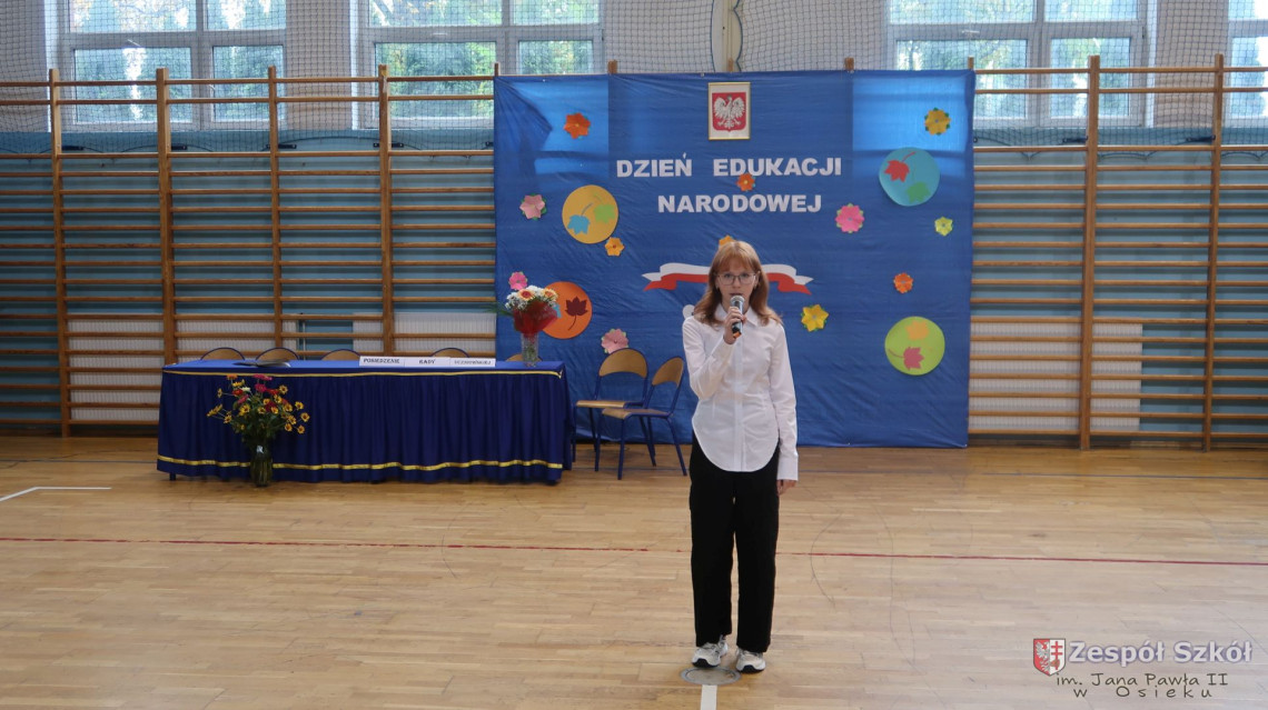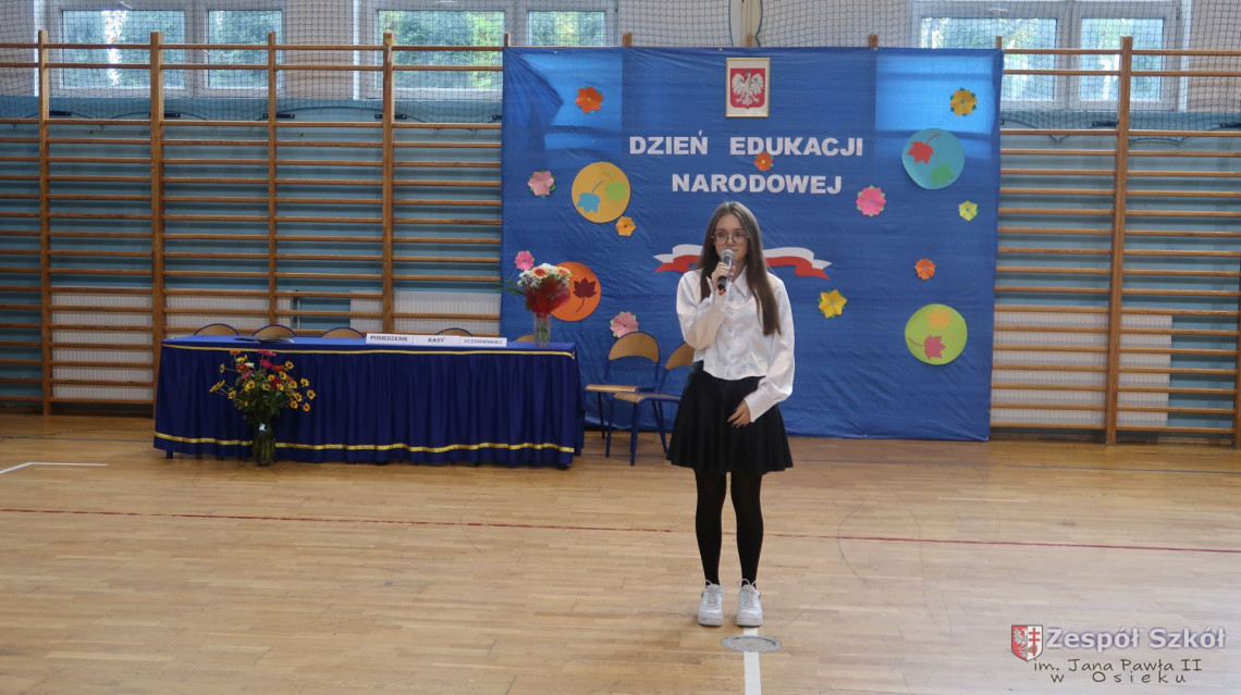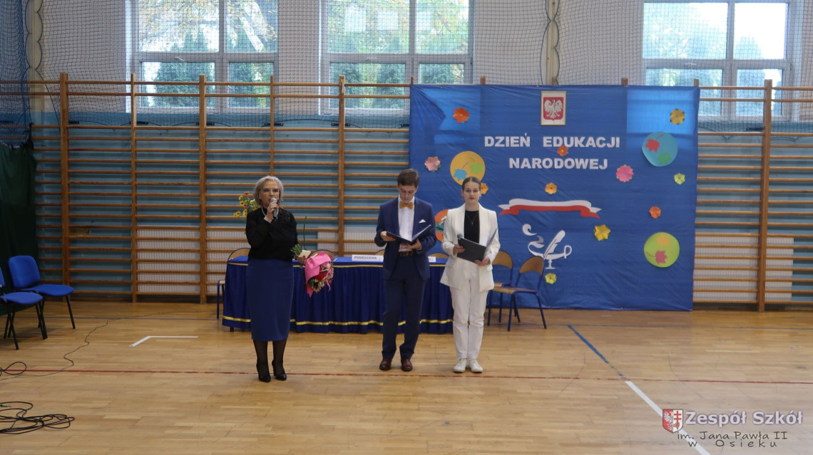 Dnia 11 października 2024 r. odbyła się w naszej szkole uroczysta akademia z okazji Dnia Edukacji Narodowej. W uroczystości udział wzięli: sekretarz Urzędu Miasta i Gminy Osiek p. Dorota Skotarek, dyrekcja, nauczyciele, uczniowie oraz pracownicy szkoły.