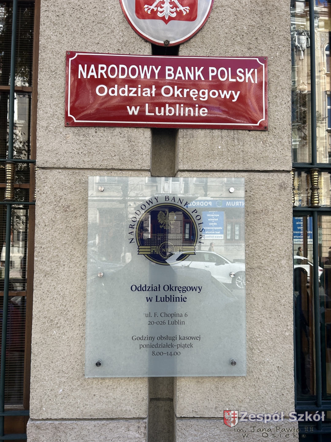 1. Oddziału Okręgowego Narodowego Banku Polskiego w Lublinie. W trakcie spotkania z pracownikiem oddziału zdobędziemy informacje o roli pieniądza, dowiemy się jak w Polsce wygląda obieg pieniądza oraz w jaki sposób są zaopatrywane w pieniądze jednostki bankowe. Następnie odbędziemy szkolenie z rozpoznawania znaków pieniężnych polskich i zagranicznych. Dowiemy się również na jakiej zasadzie działają w Polsce kantory oraz jakie warunki należy spełnić, aby je założyć.
