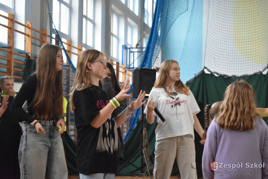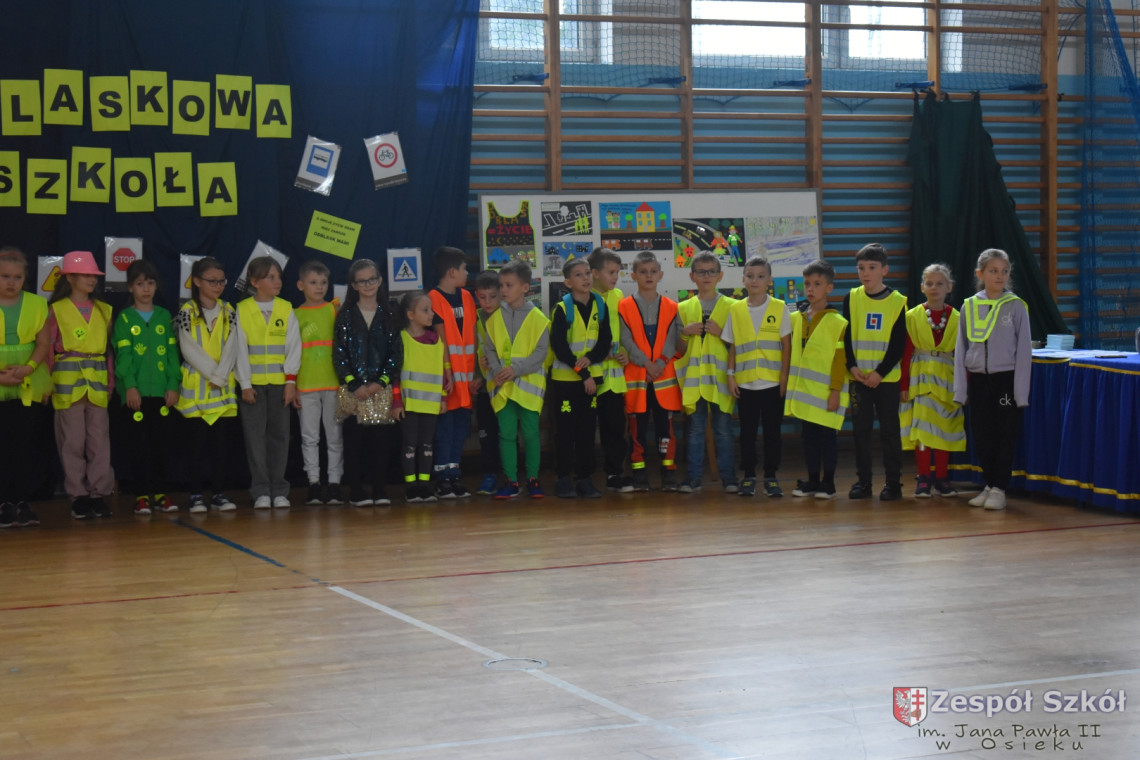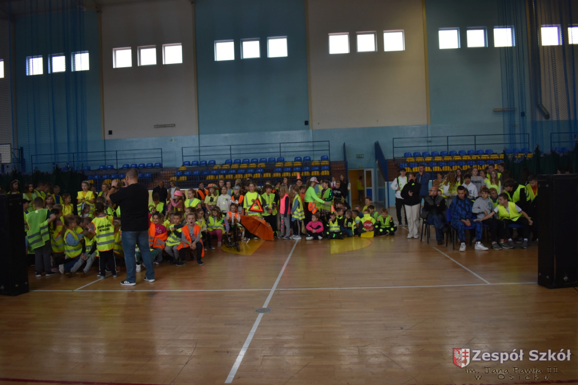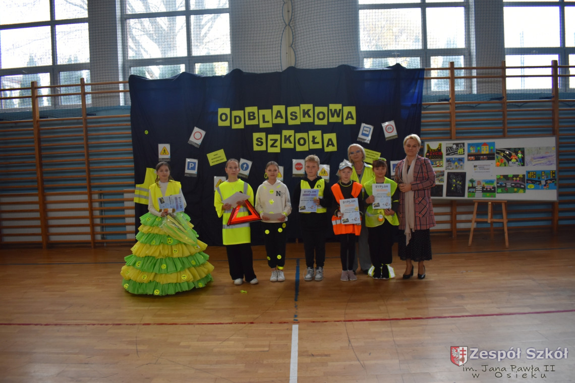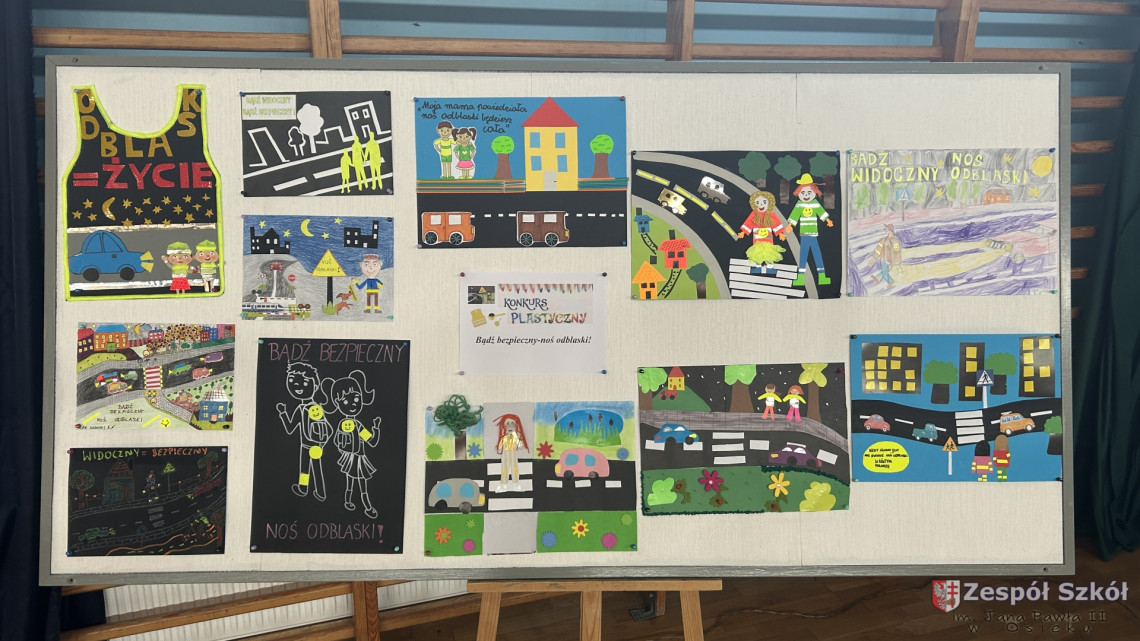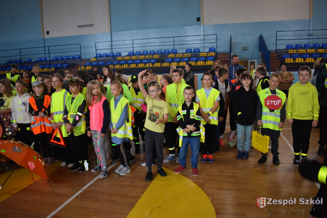 Dnia 29 października 2024r. w Zespole Szkół im. Jana Pawła II w Osieku odbył się apel pod hasłem: „Bądź bezpieczny – noś odblaski”. Uczniowie klas I - VIII spotkali się , aby wspólnie zakończyć i podsumować tegoroczną akcję ODBLASKOWA SZKOŁA. Wraz z początkiem roku szkolnego uczniowie klas młodszych pod opieką wychowawców udali się poza teren szkoły, gdzie mieli możliwość zastosowania w praktyce poznanych zasad bezpiecznego poruszania się po drogach. Dzieci ponadto wykonały: makiety sytuacji drogowych, znaki drogowe oraz plakaty promujące noszenie odblasków i kamizelek odblaskowych.