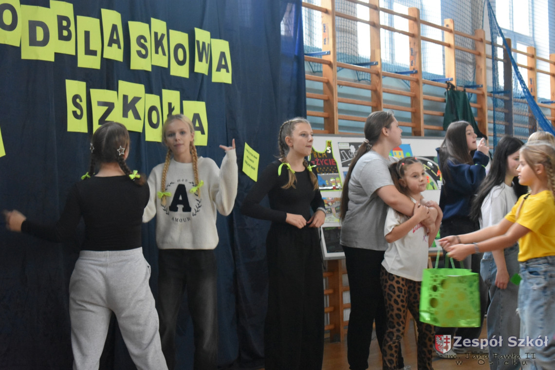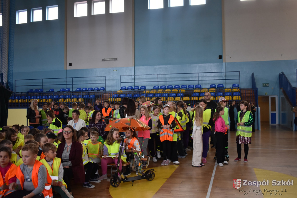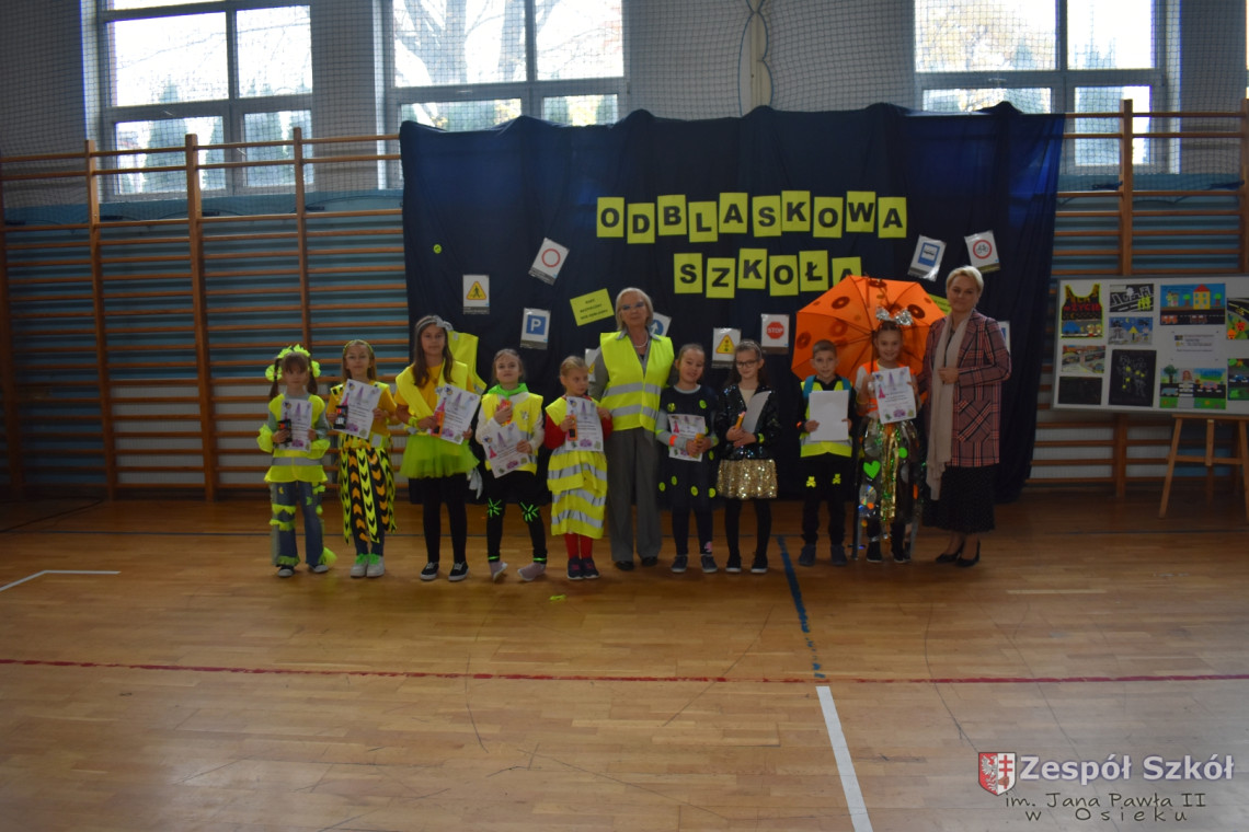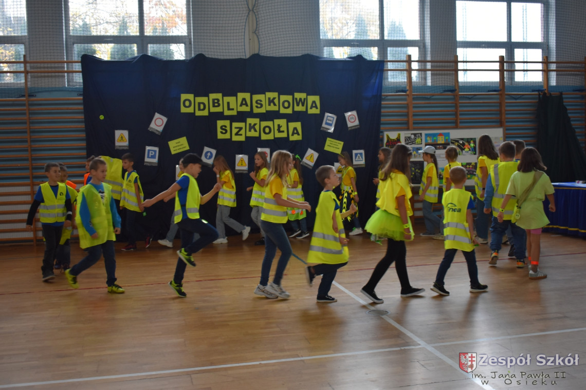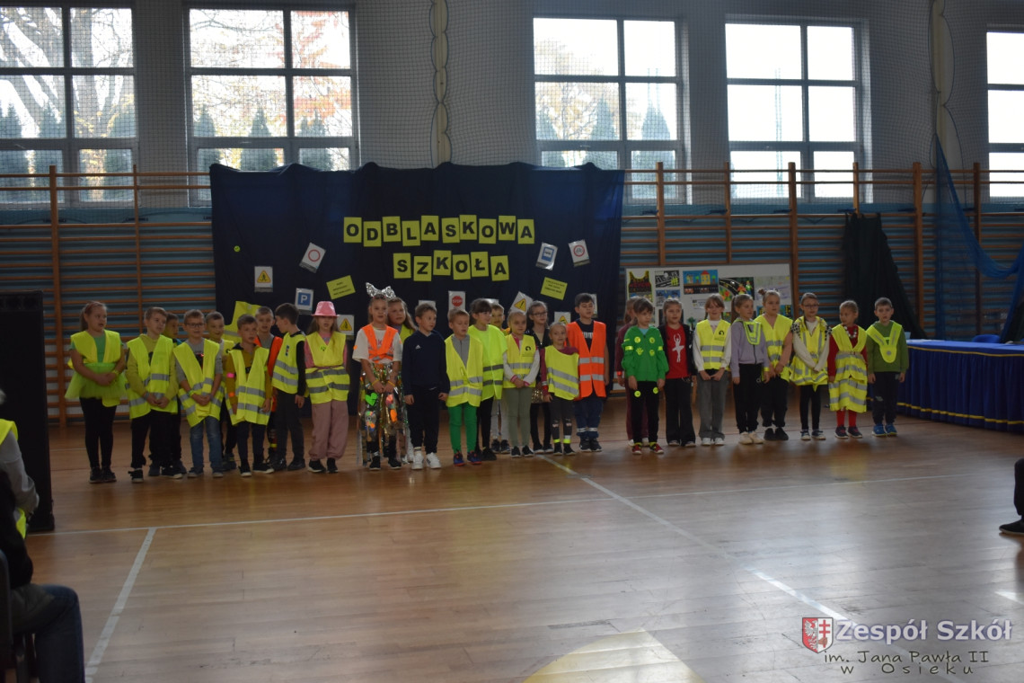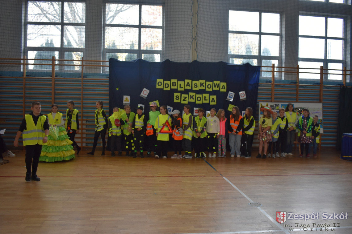 Główną atrakcją był POKAZ MODY ODBLASKOWEJ. Uczniowie klas I – VII zaprezentowali oryginalne i pomysłowe stroje odblaskowe.