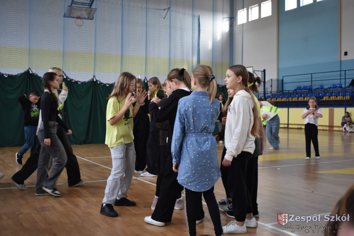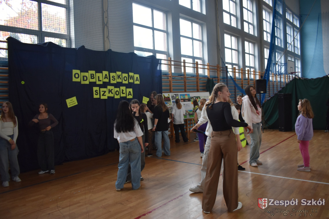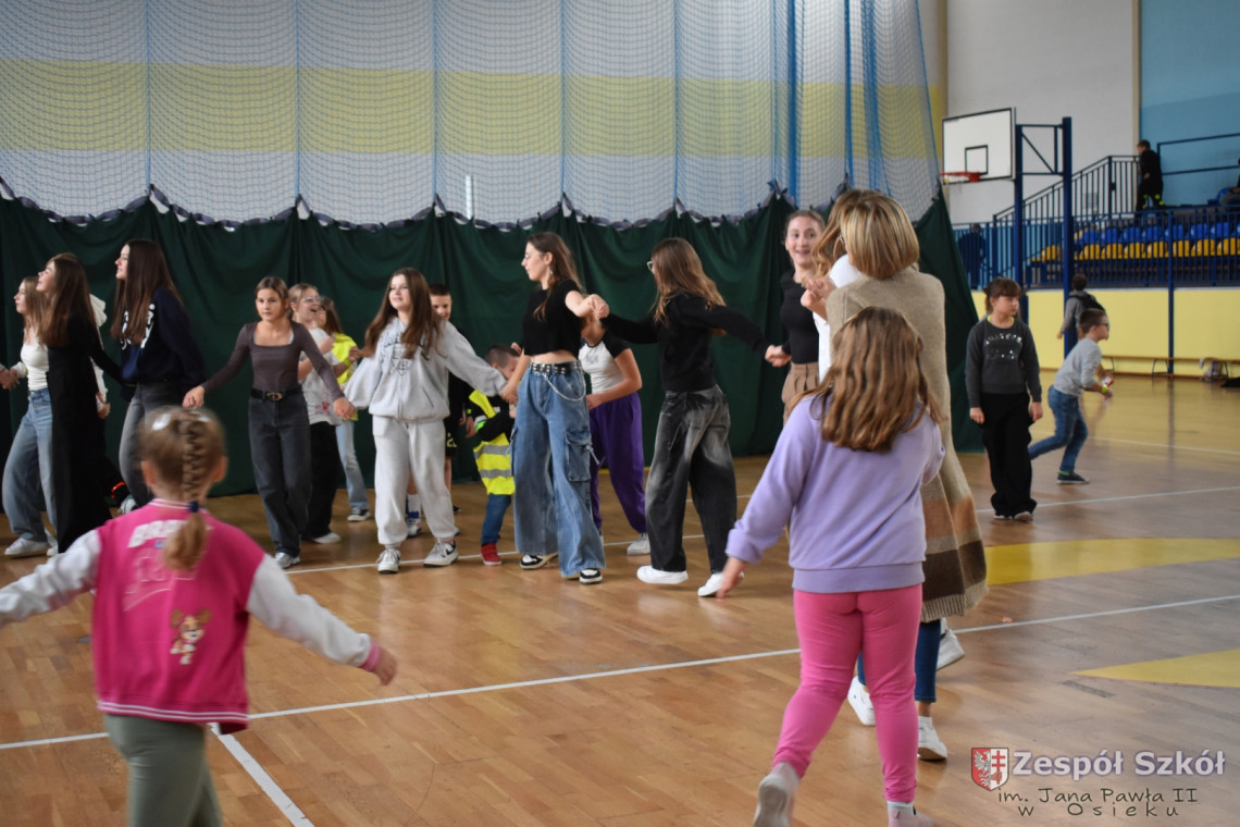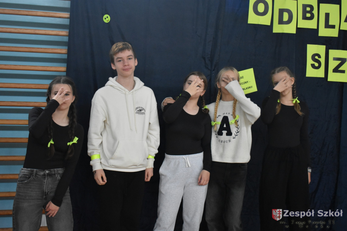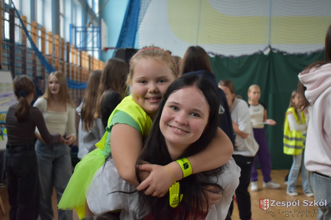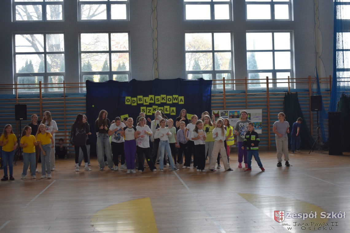 Zwieńczeniem działań profilaktycznych była odblaskowa dyskoteka. Zabawa przyciągnęła wszystkich, którzy oczekiwali „tanecznych pląsów”, tak najmłodszych, jak i najstarszych uczniów szkoły. To był dzień pełen radości, zabawy i śmiechu.