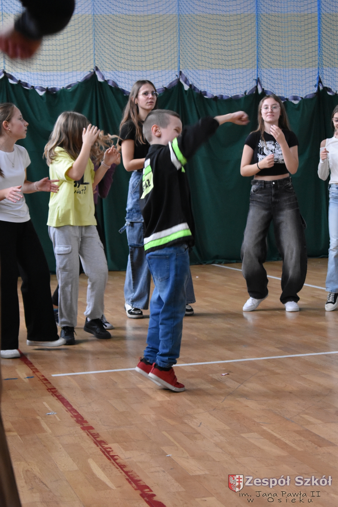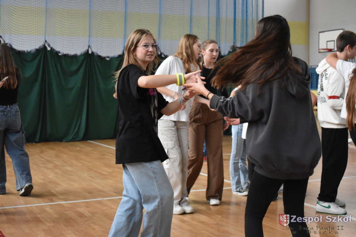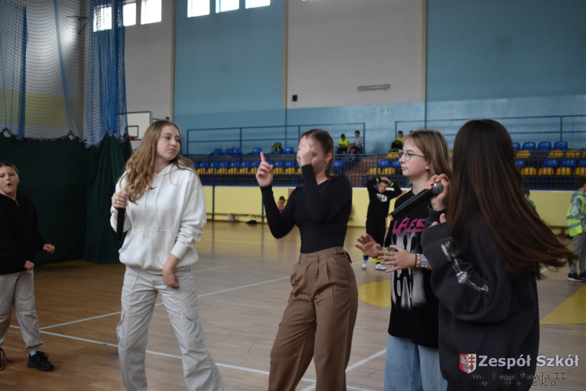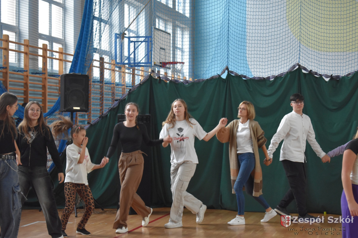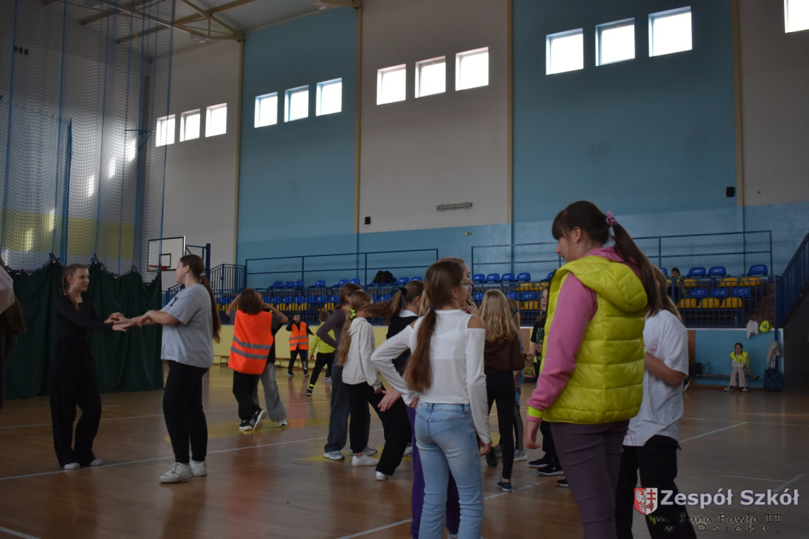 Zwieńczeniem działań profilaktycznych była odblaskowa dyskoteka. Zabawa przyciągnęła wszystkich, którzy oczekiwali „tanecznych pląsów”, tak najmłodszych, jak i najstarszych uczniów szkoły. To był dzień pełen radości, zabawy i śmiechu.
