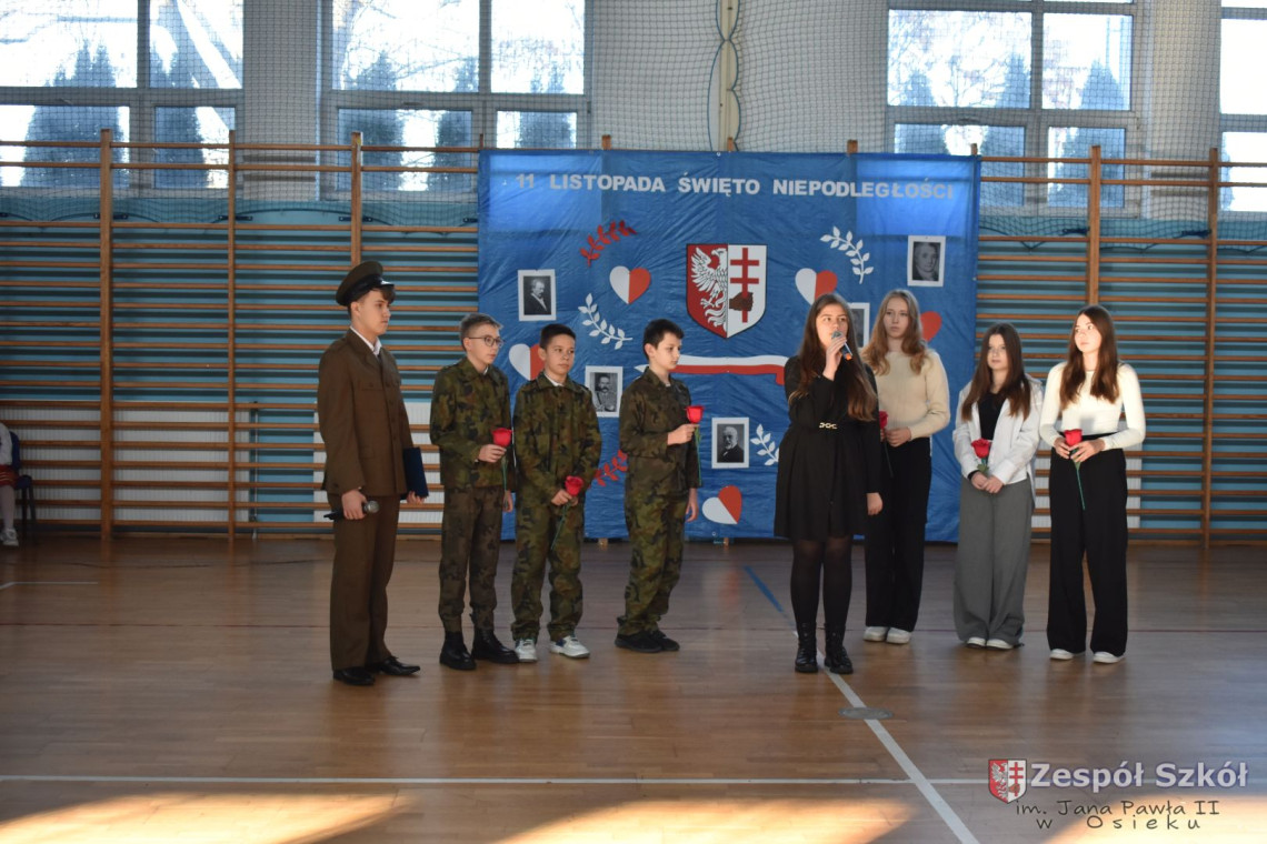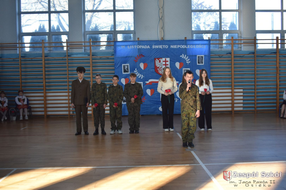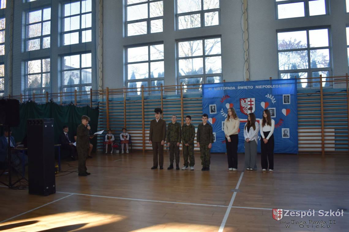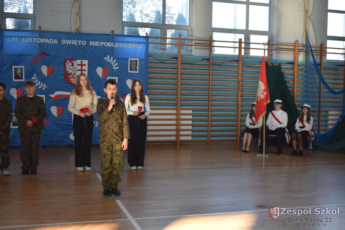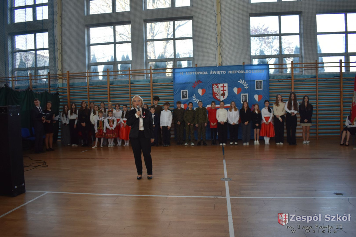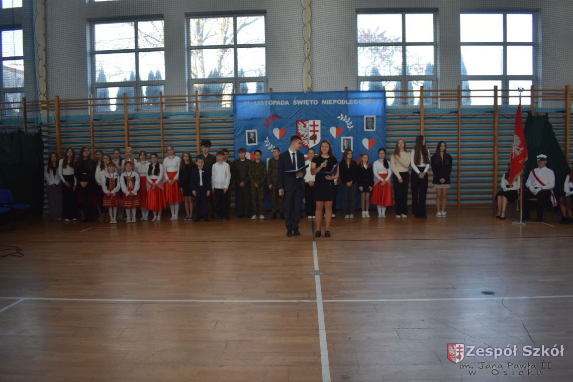 W dniu 06 listopada 2024 r. w murach Zespołu Szkół im. Jana Pawła II w Osieku odbyła się uroczysta akademia poświęcona rocznicy odzyskania niepodległości. W uroczystości udział wzięli: dyrekcja, nauczyciele, uczniowie, pracownicy szkoły oraz rodzice.