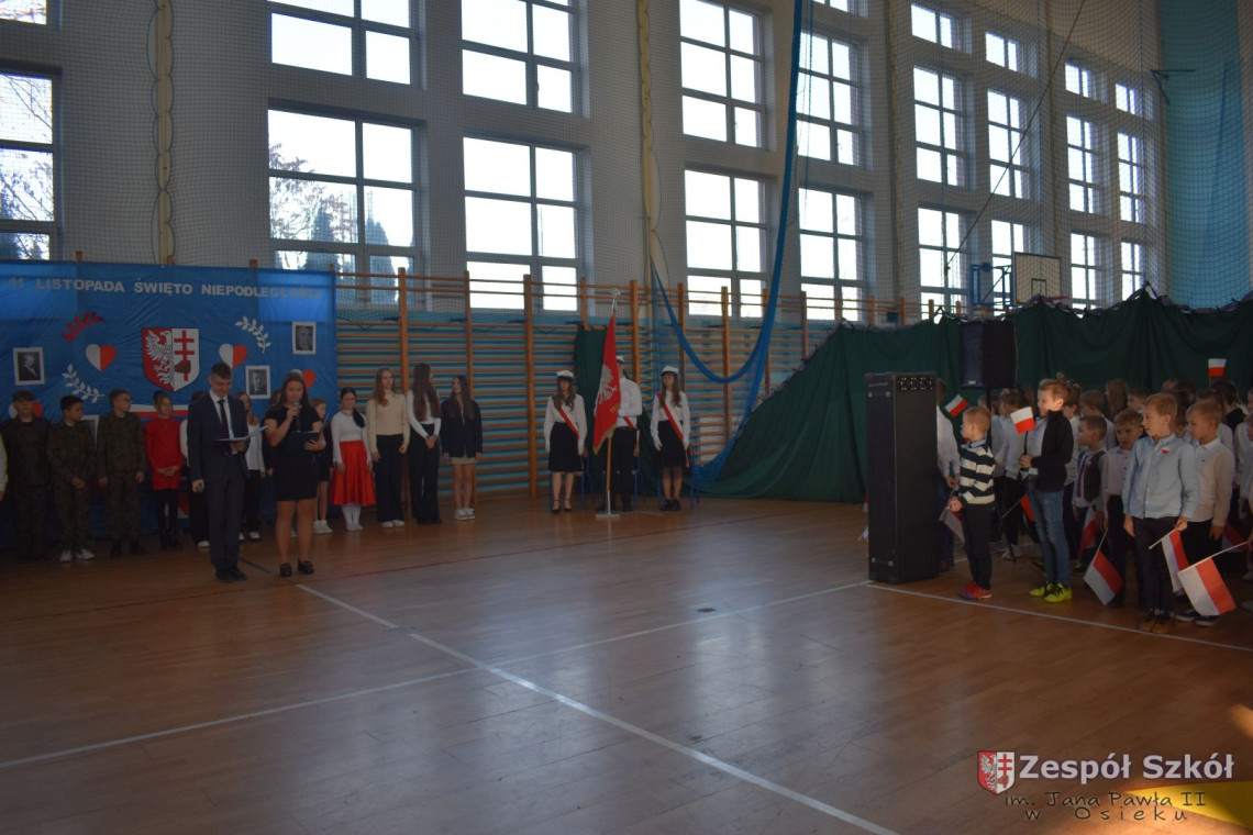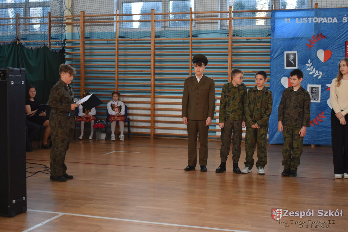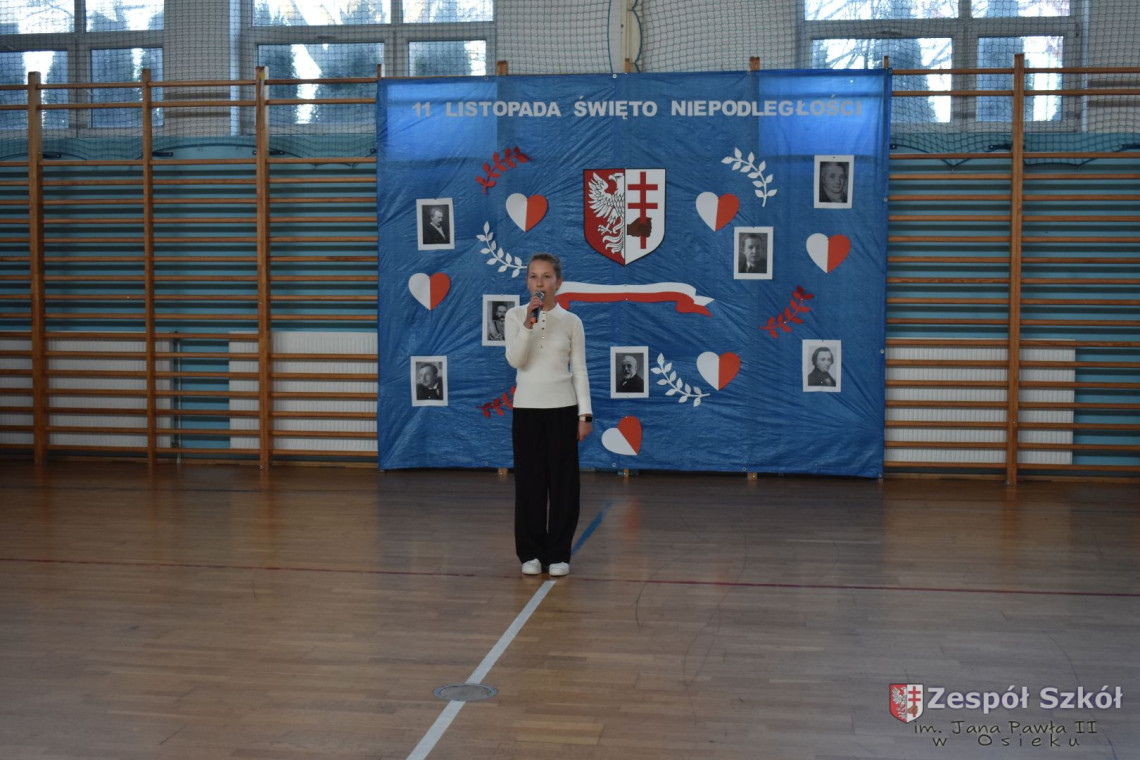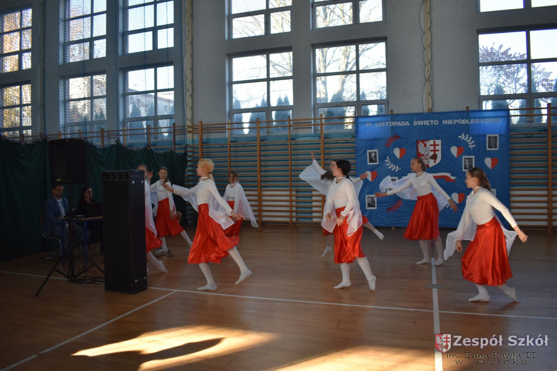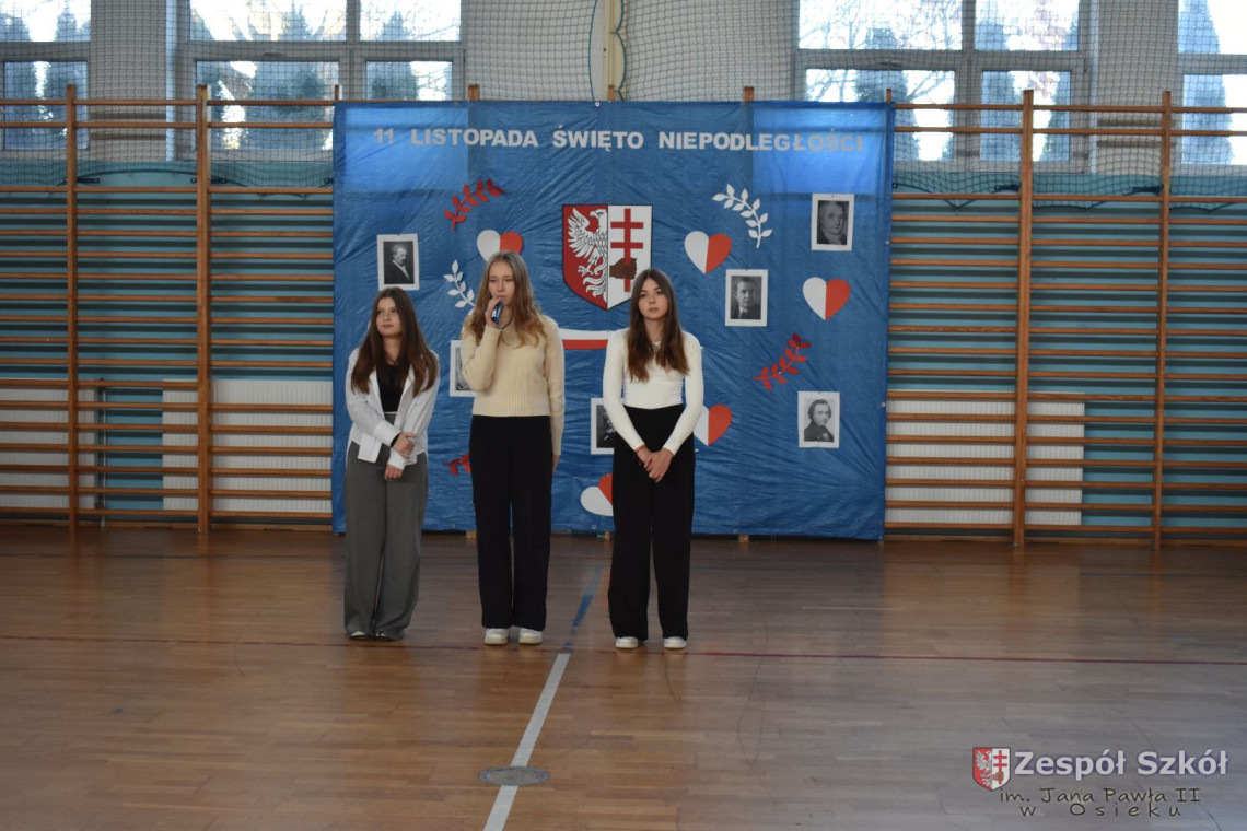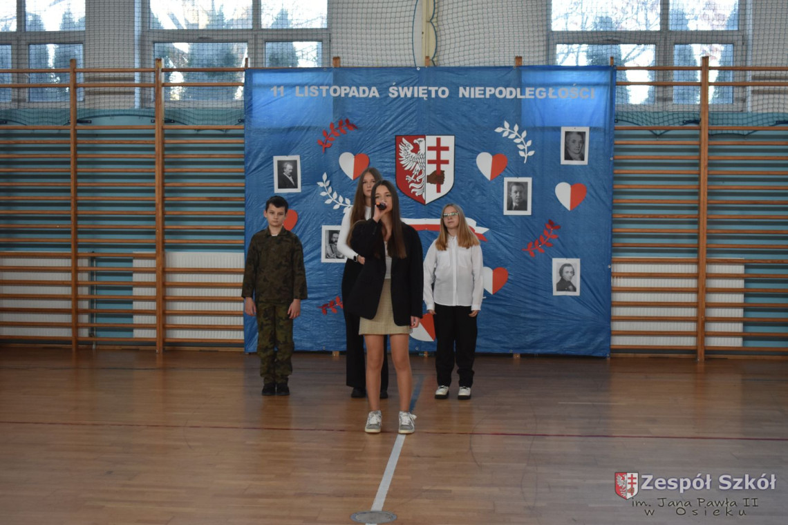 W dniu 06 listopada 2024 r. w murach Zespołu Szkół im. Jana Pawła II w Osieku odbyła się uroczysta akademia poświęcona rocznicy odzyskania niepodległości. W uroczystości udział wzięli: dyrekcja, nauczyciele, uczniowie, pracownicy szkoły oraz rodzice.