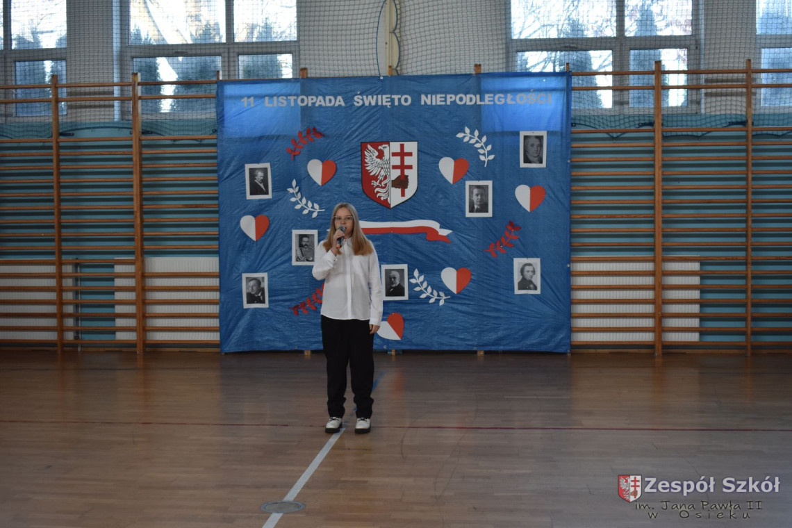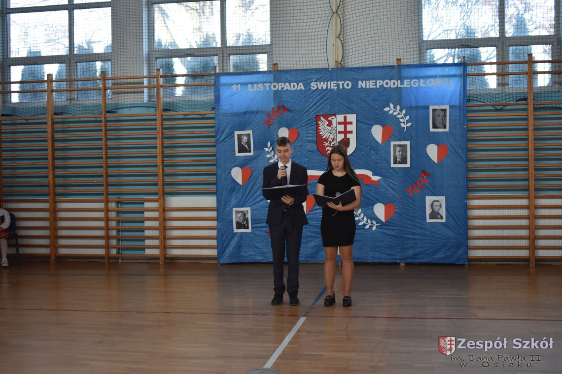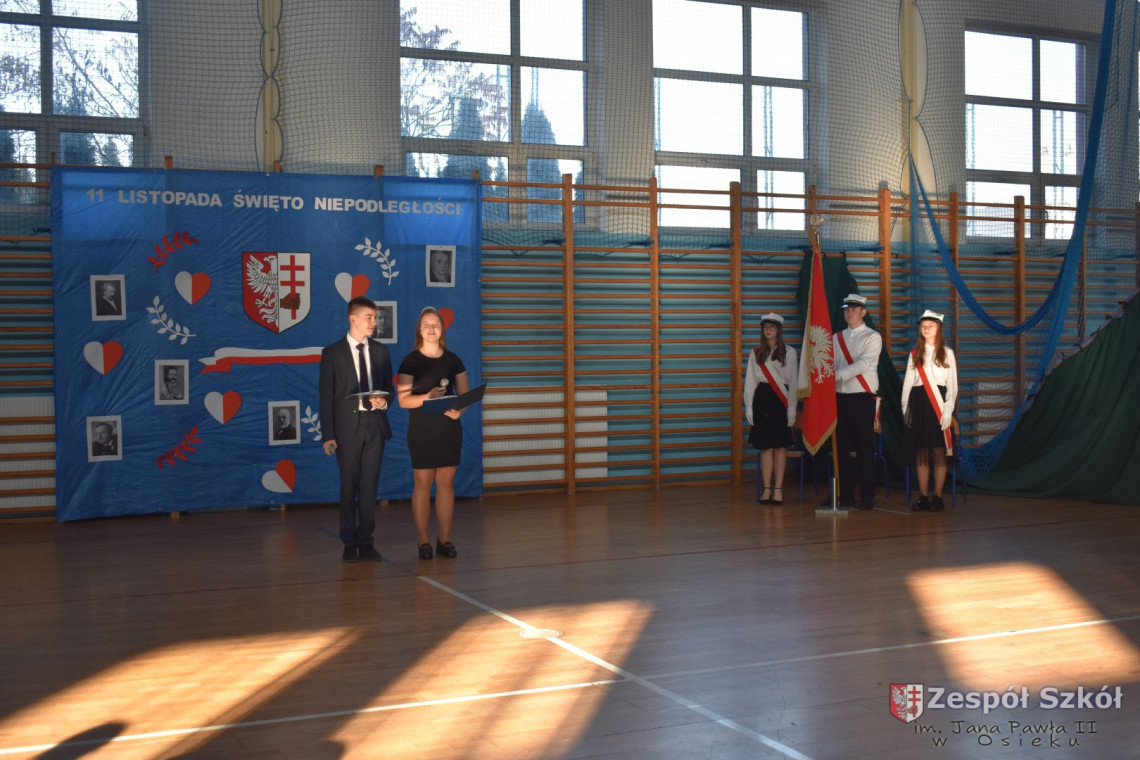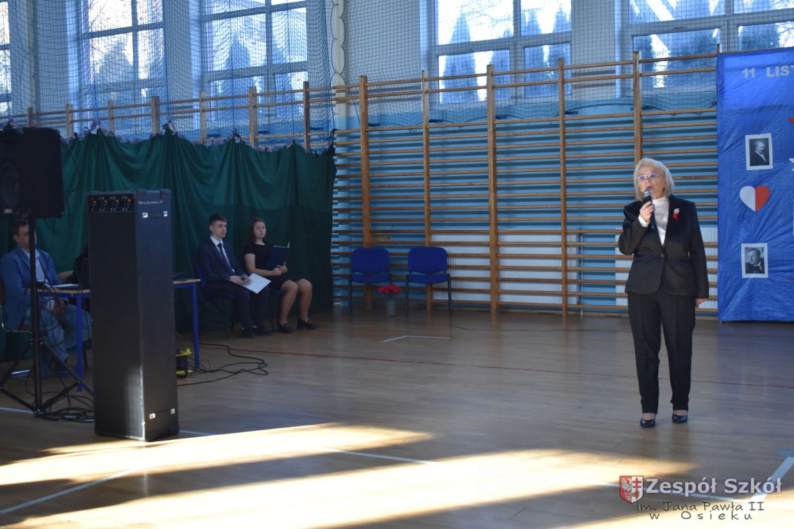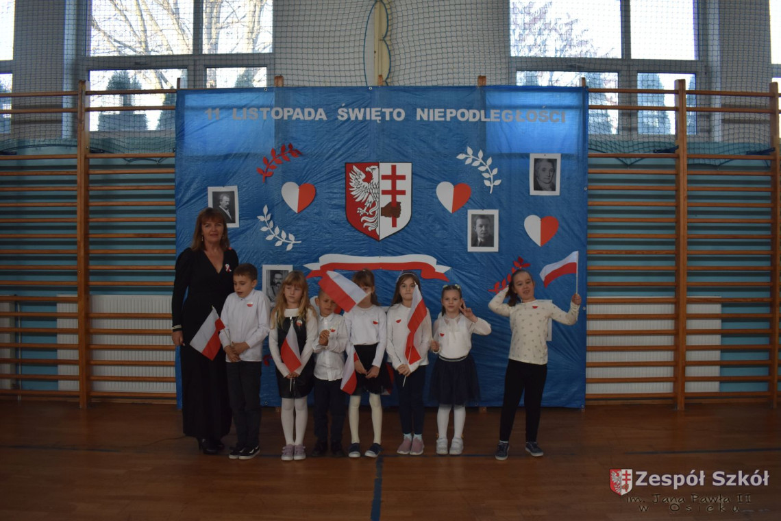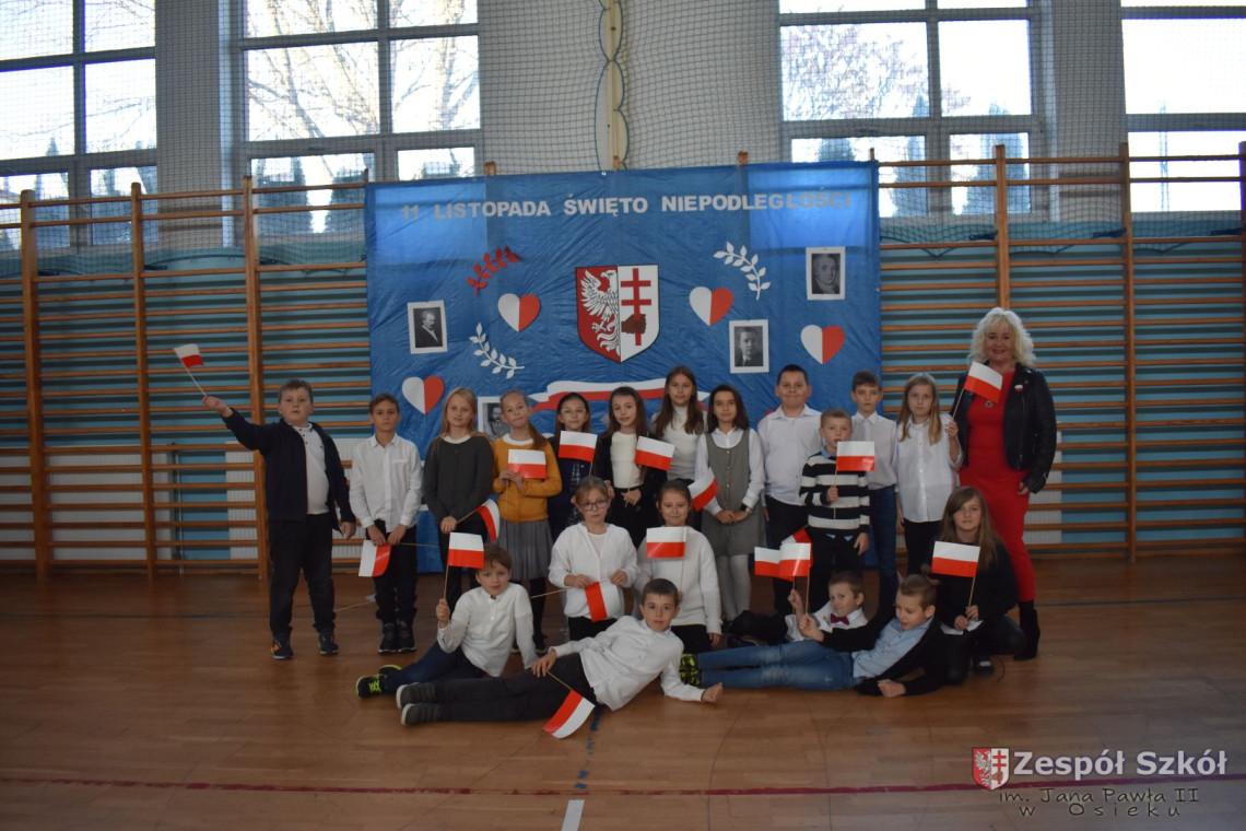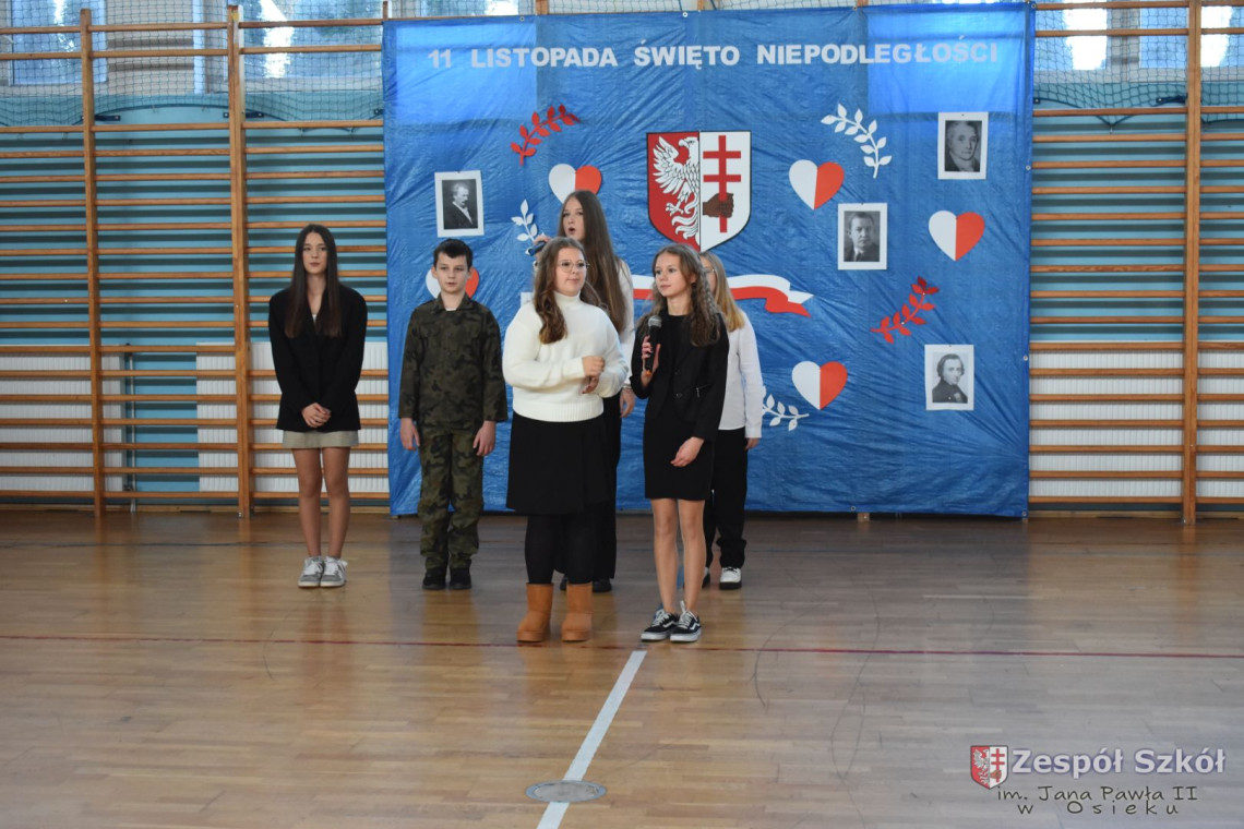 W dniu 06 listopada 2024 r. w murach Zespołu Szkół im. Jana Pawła II w Osieku odbyła się uroczysta akademia poświęcona rocznicy odzyskania niepodległości. W uroczystości udział wzięli: dyrekcja, nauczyciele, uczniowie, pracownicy szkoły oraz rodzice.