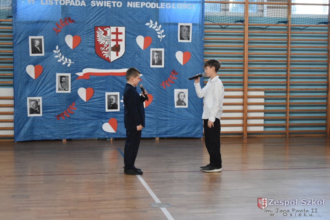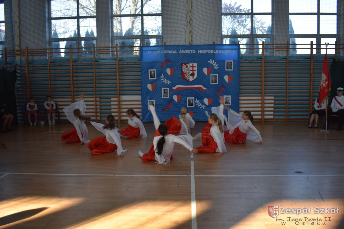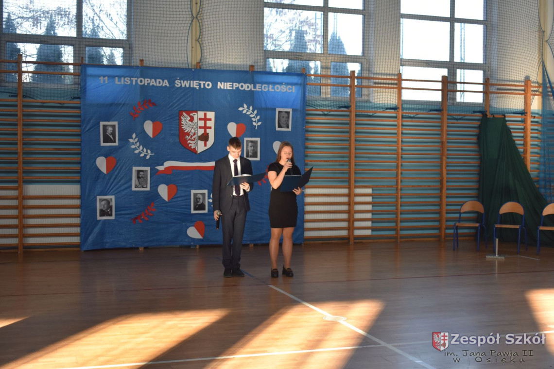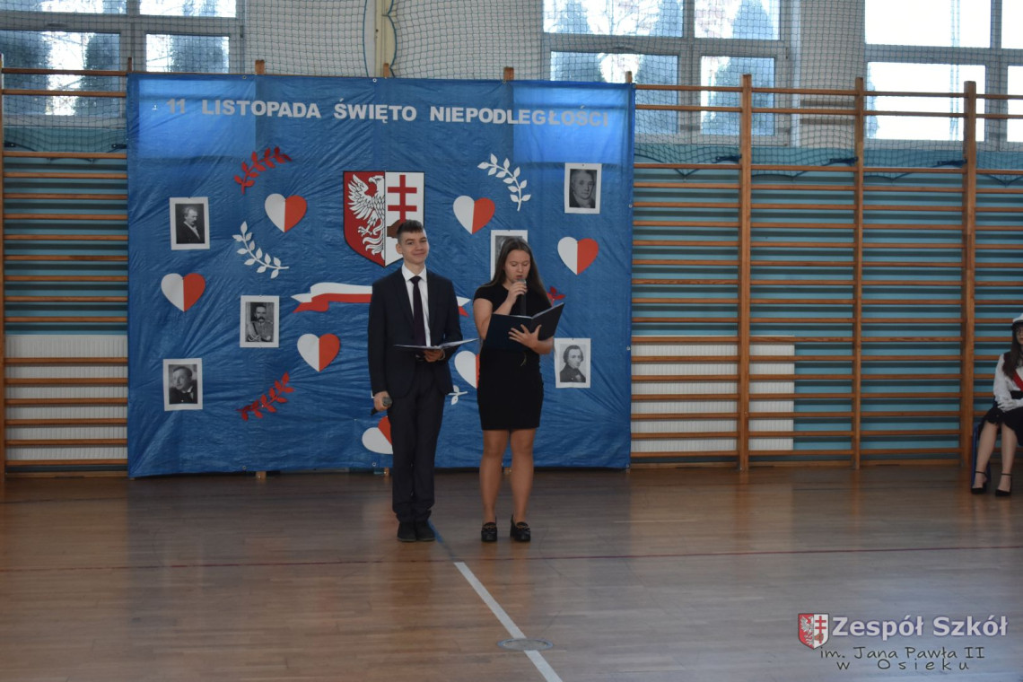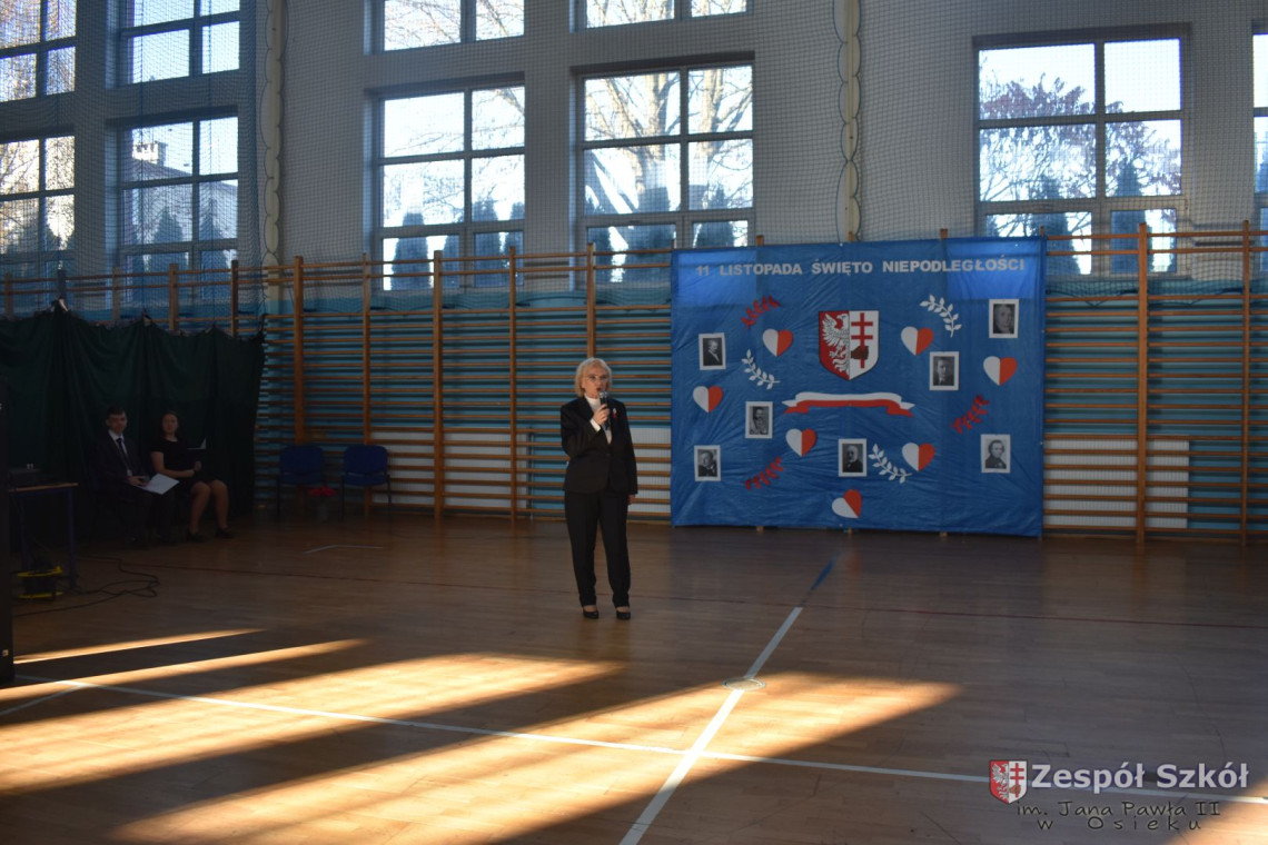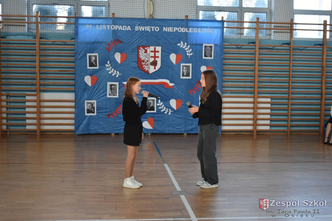 W dniu 06 listopada 2024 r. w murach Zespołu Szkół im. Jana Pawła II w Osieku odbyła się uroczysta akademia poświęcona rocznicy odzyskania niepodległości. W uroczystości udział wzięli: dyrekcja, nauczyciele, uczniowie, pracownicy szkoły oraz rodzice.