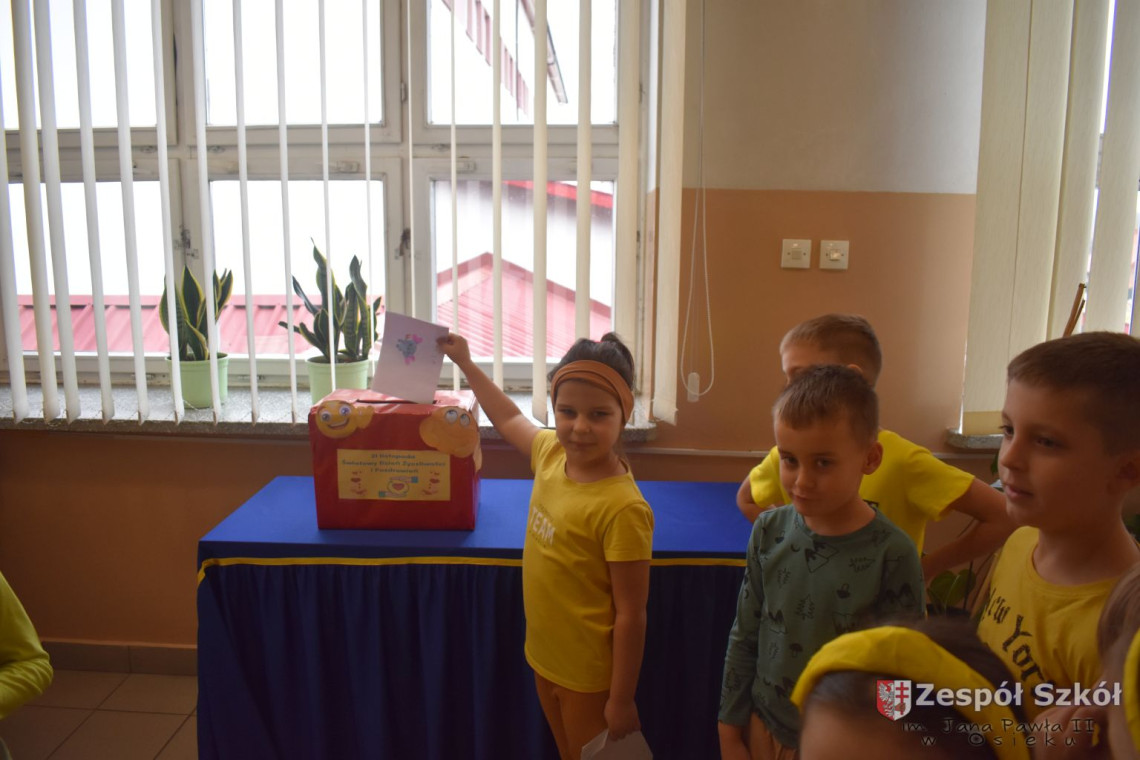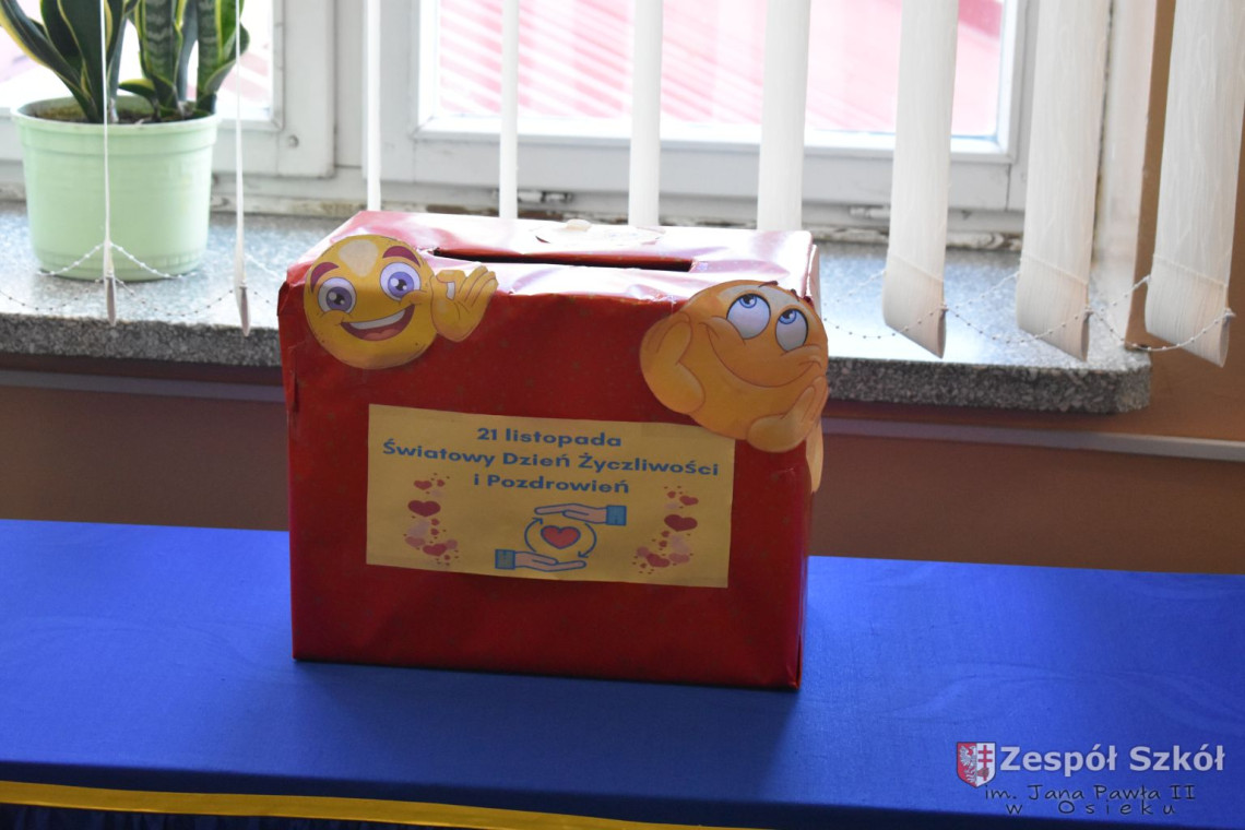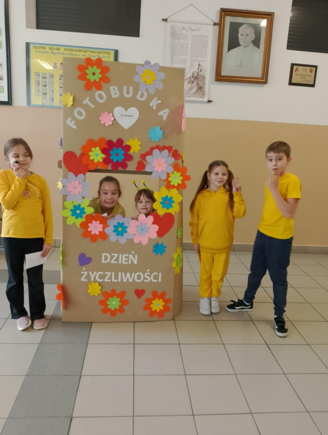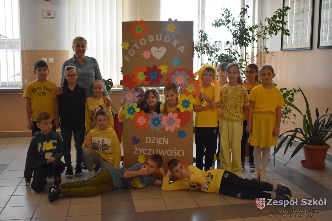 21 listopada, kiedy w naszej szkole odbywał się Światowy Dzień Życzliwości i Pozdrowień. Cała społeczność szkolna swoją radość, entuzjazm postanowiła wyrazić poprzez żółte akcenty w ubiorze. Dzień Życzliwości i Pozdrowień to święto, które na dobre zagościło w naszym szkolnym kalendarzu. Ten dzień wykorzystuje się  do uświadamiania całej społeczności szkolnej, jak ważna jest życzliwość na co dzień, nie tylko od święta. I nie chodzi tutaj