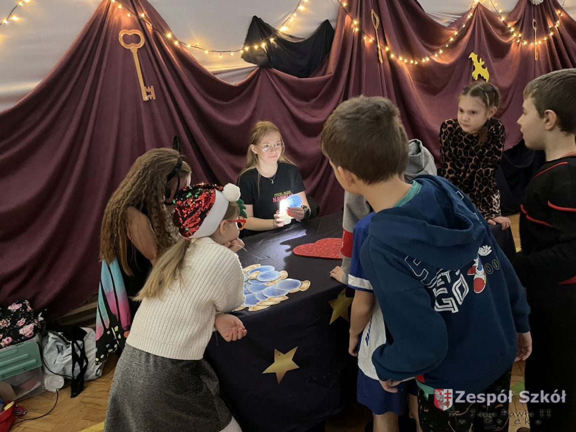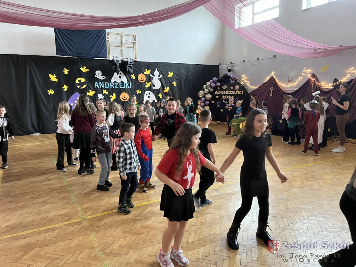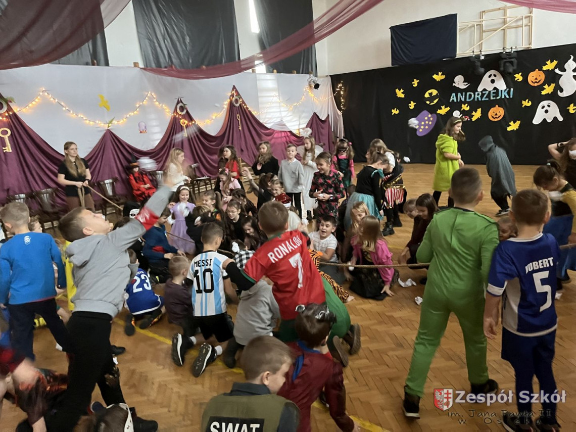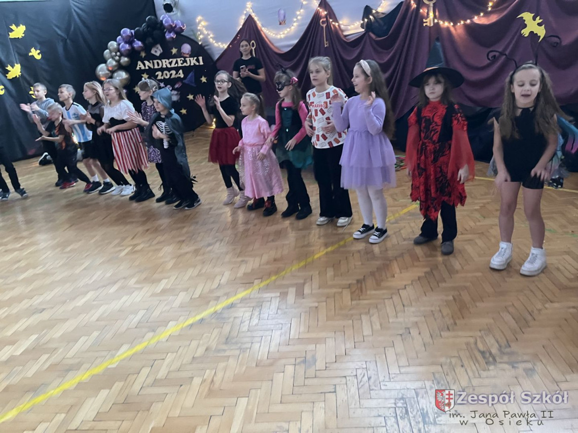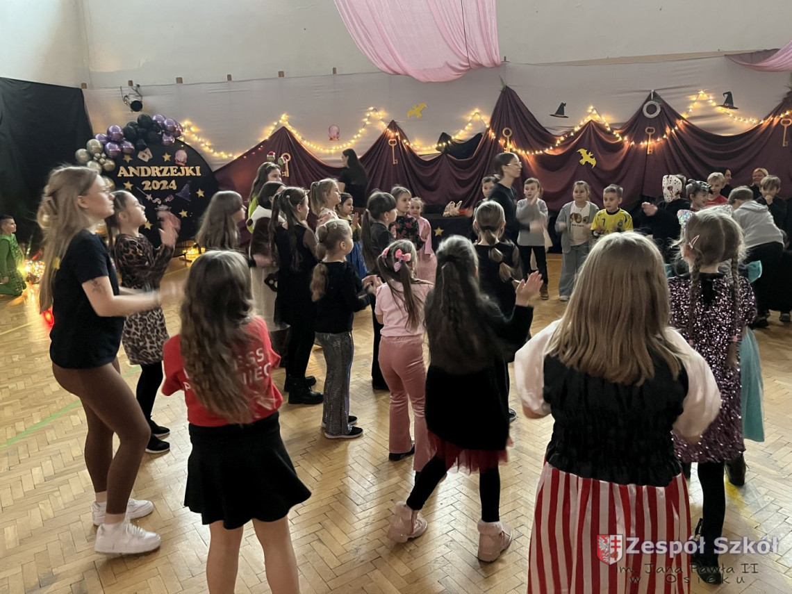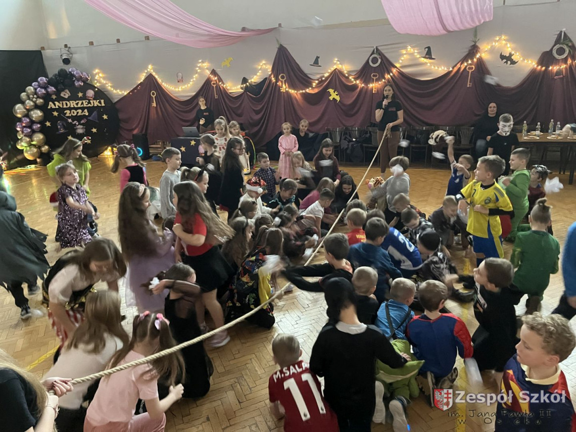 Tymi słowami rozpoczęła się zabawa andrzejkowa w kl.1-3.Andrzejki,które na stałe wpisały się w scenariusz szkolnego kalendarza są wspaniałą okazją do dobrej zabawy i integracji szkolnej społeczności. W dniu 29 listopada 2024r. uczniowie klas młodszych wzięli udział w długo oczekiwanej zabawie andrzejkowej. Każda klasa w sposób wyjątkowy przygotowała się do tego magicznego dnia, zaskakując różnorodnymi przebraniami. Dzieci, poprzez zabawę, miały okazję przybliżyć się do tradycji i obrzędów ludowych dotyczących ANDRZEJEK .Wróżby przeplatane były tańcami, figlami i pląsami przy skocznej muzyce. Wesoła zabawa w gronie kolegów i koleżanek dostarczyła dzieciom wiele radości, uśmiechu i niezapomnianych przeżyć.