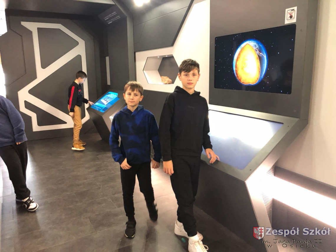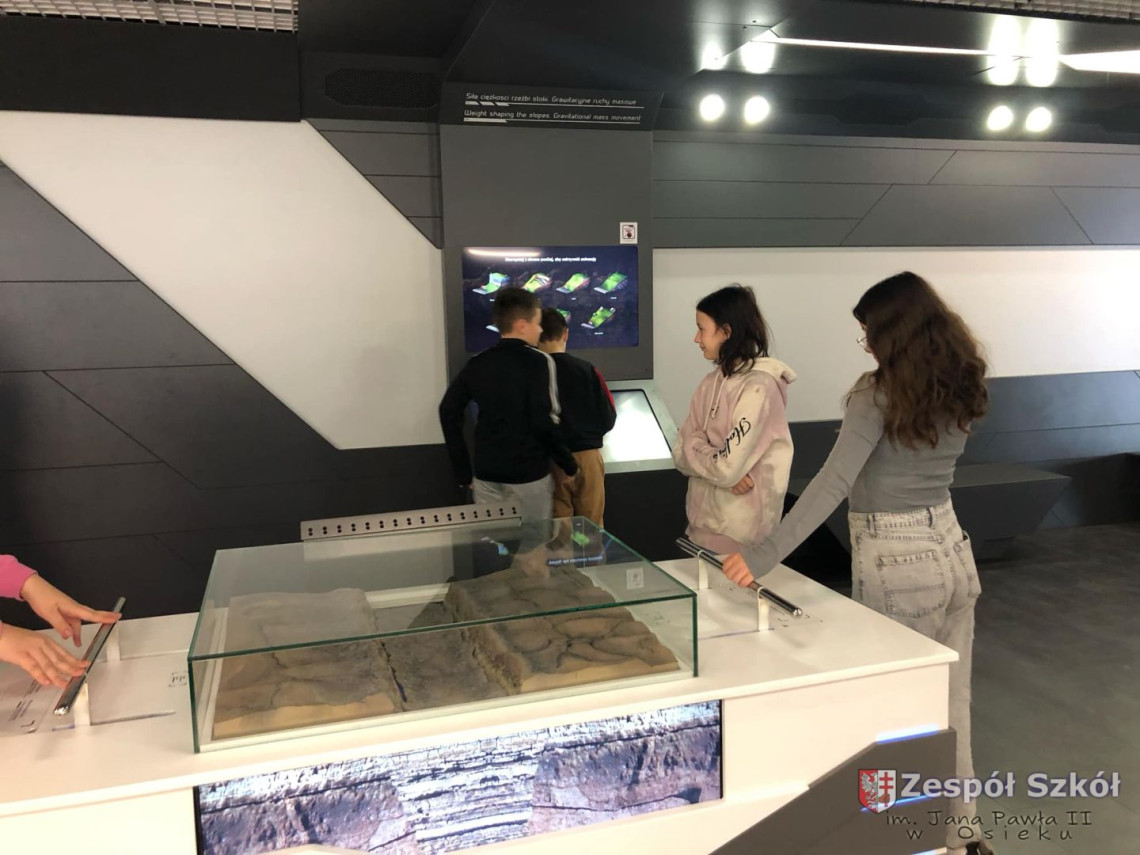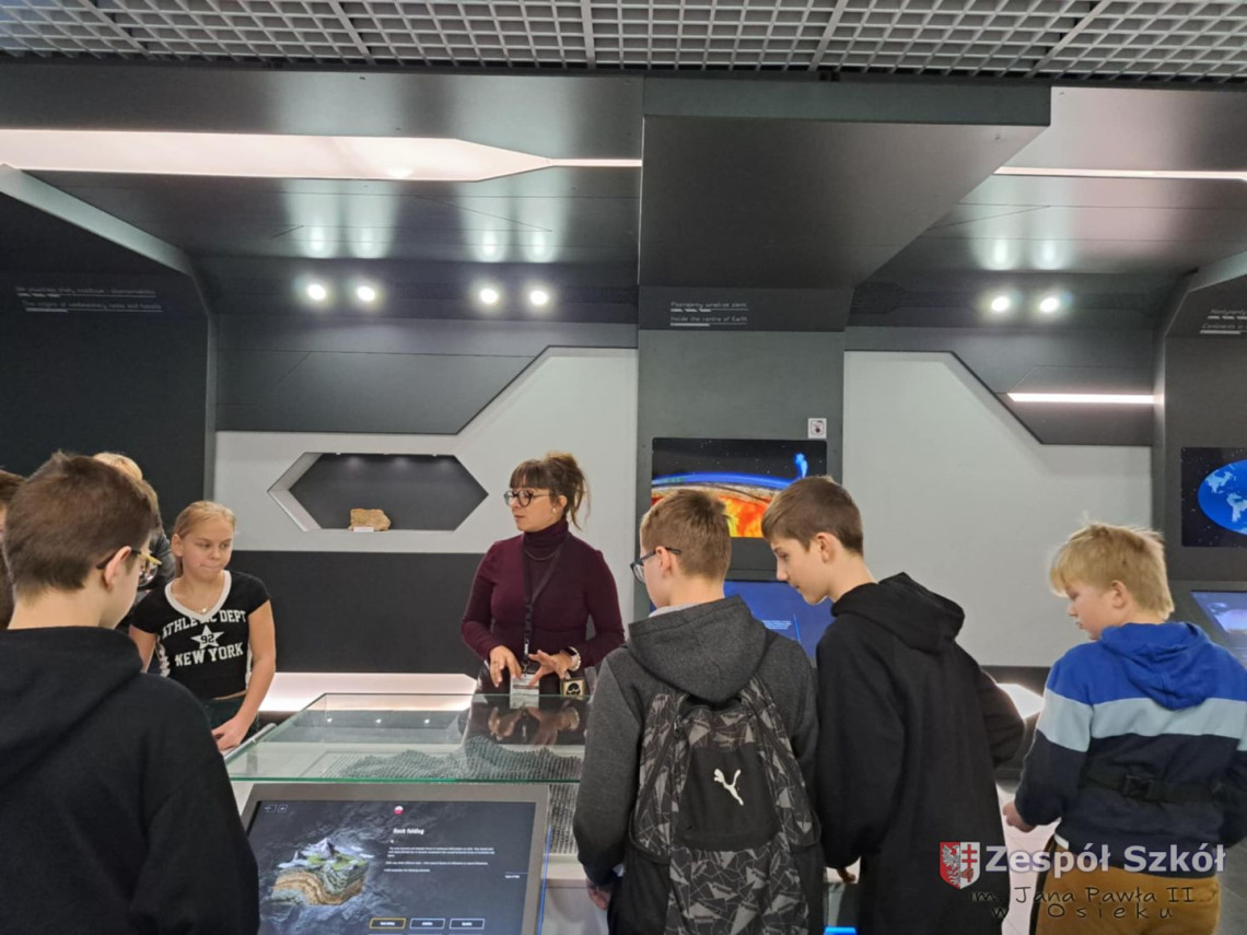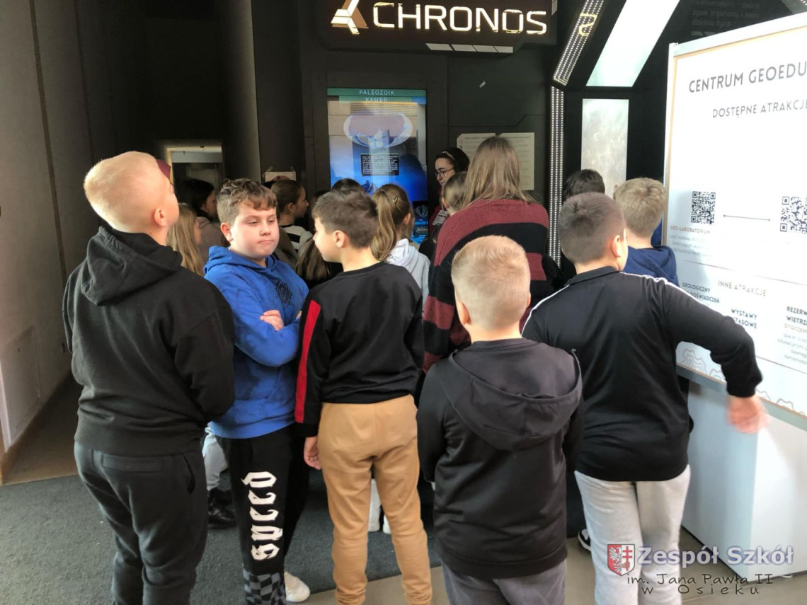 W Centrum Geoedukacji uczniowie zwiedzali niezwykłą wystawę edukacyjną zainscenizowaną w formie futurystycznej stacji badawczej „Chronos’’, odbyli wirtualną podróż przez dzieje Ziemi na pokładzie kapsuły 5D, a także stanęli oko w oko