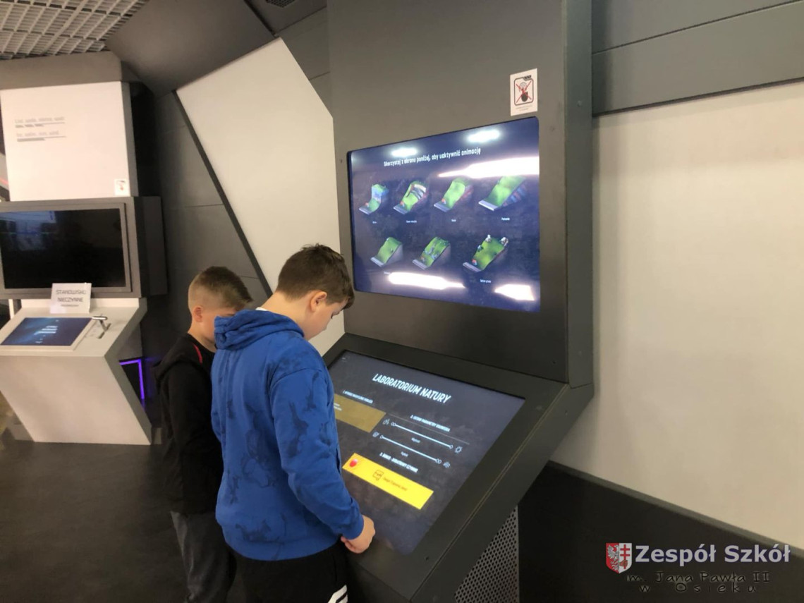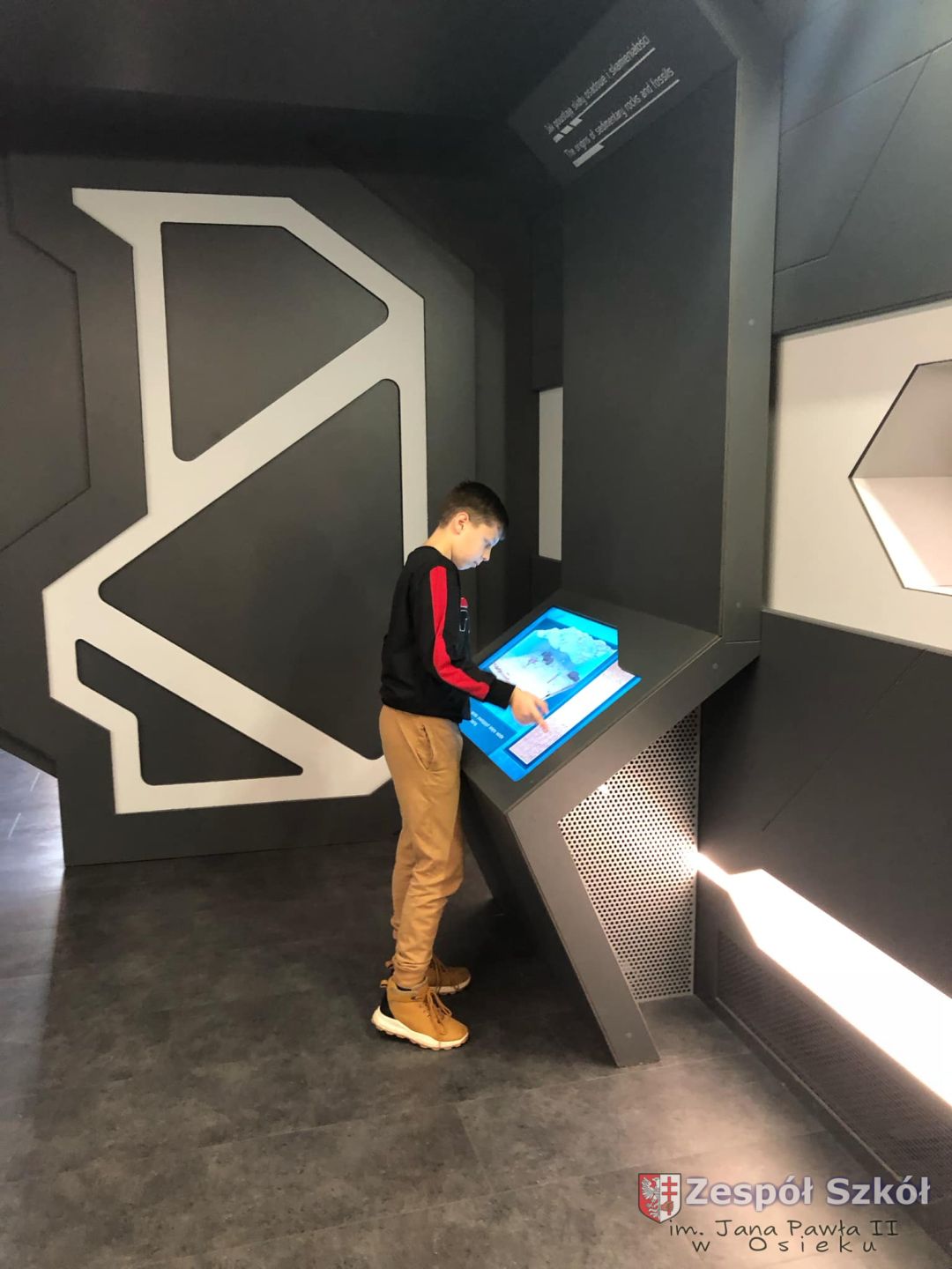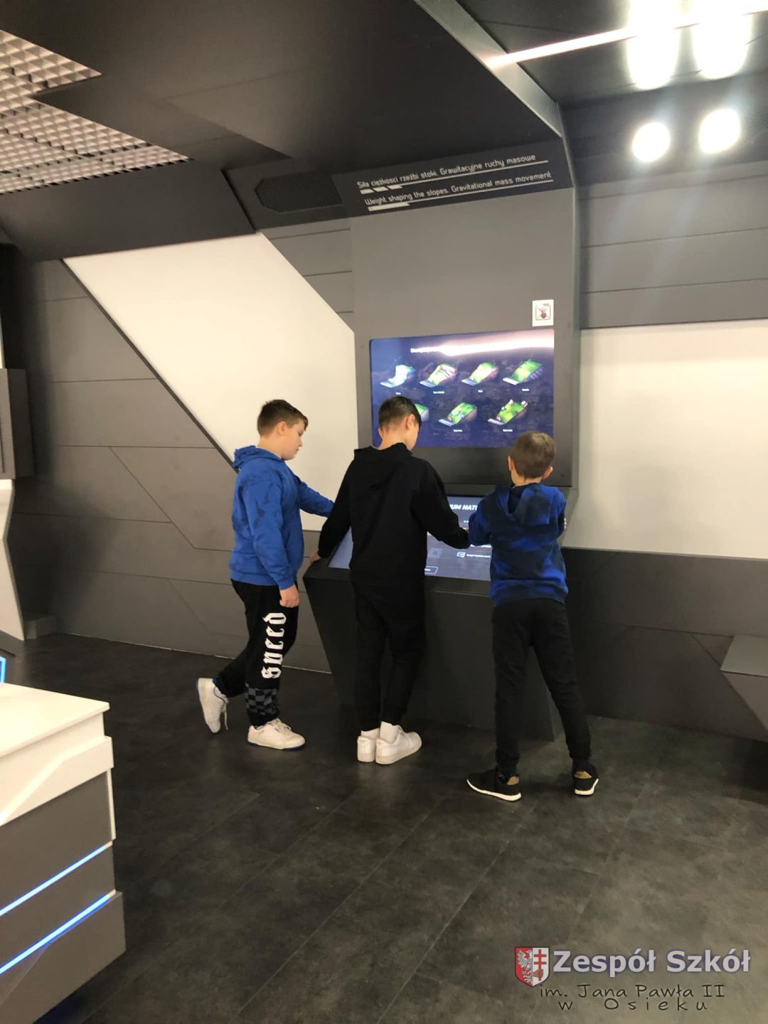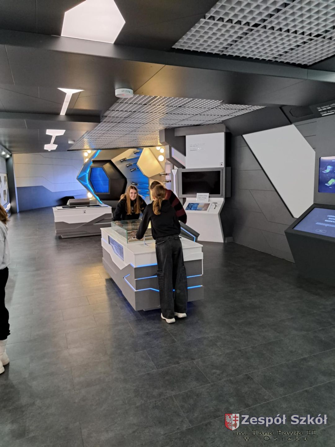 W Centrum Geoedukacji uczniowie zwiedzali niezwykłą wystawę edukacyjną zainscenizowaną w formie futurystycznej stacji badawczej „Chronos’’, odbyli wirtualną podróż przez dzieje Ziemi na pokładzie kapsuły 5D, a także stanęli oko w oko
