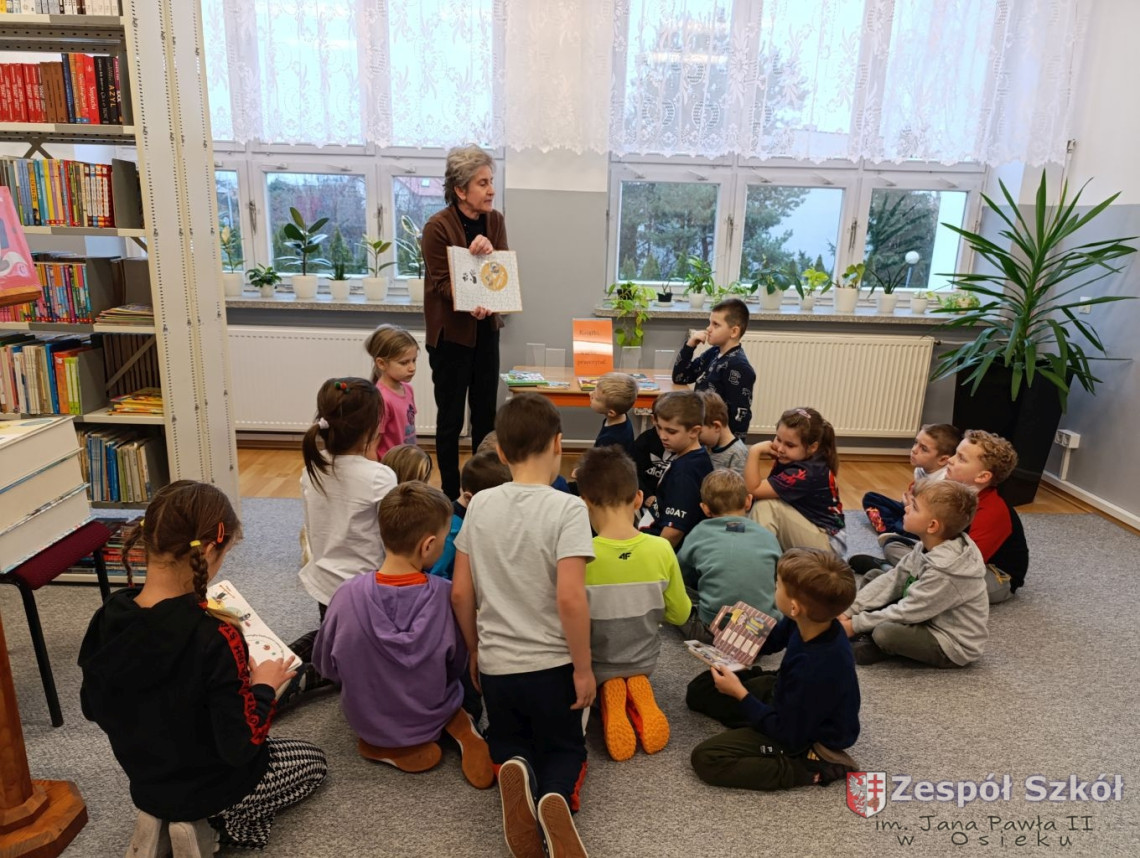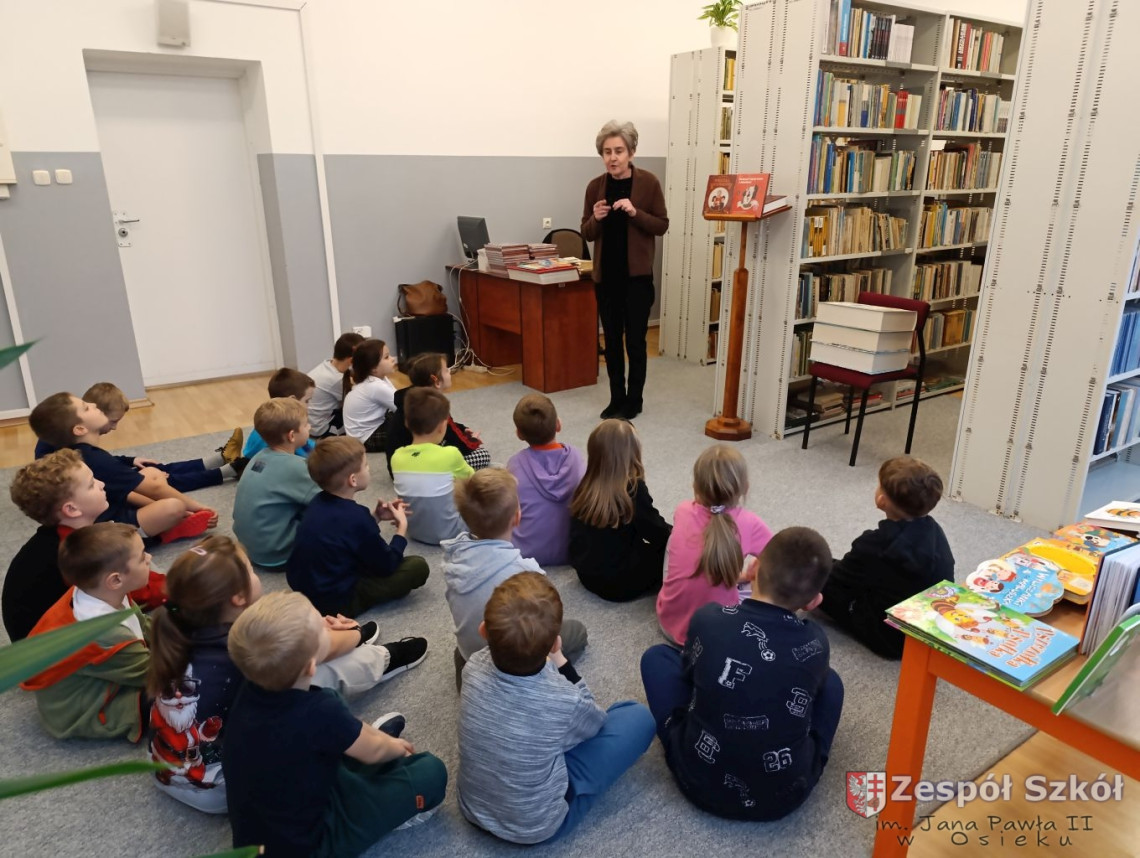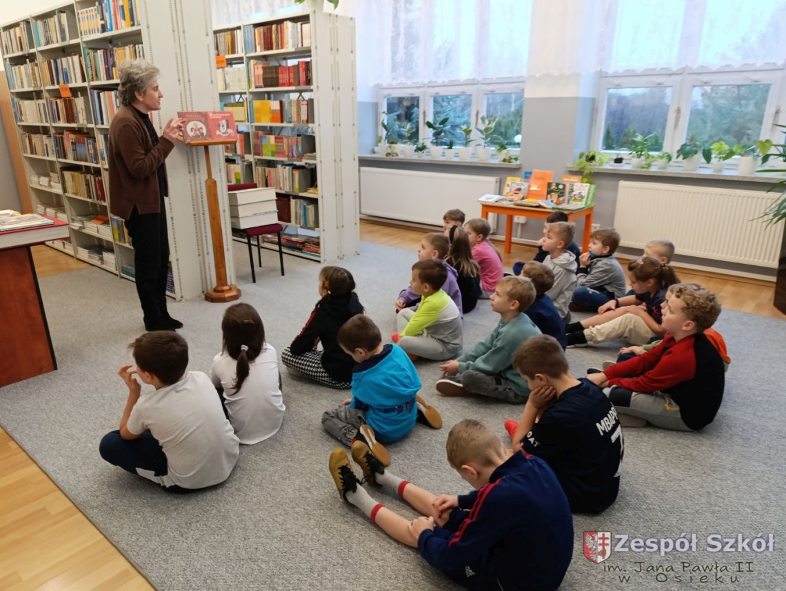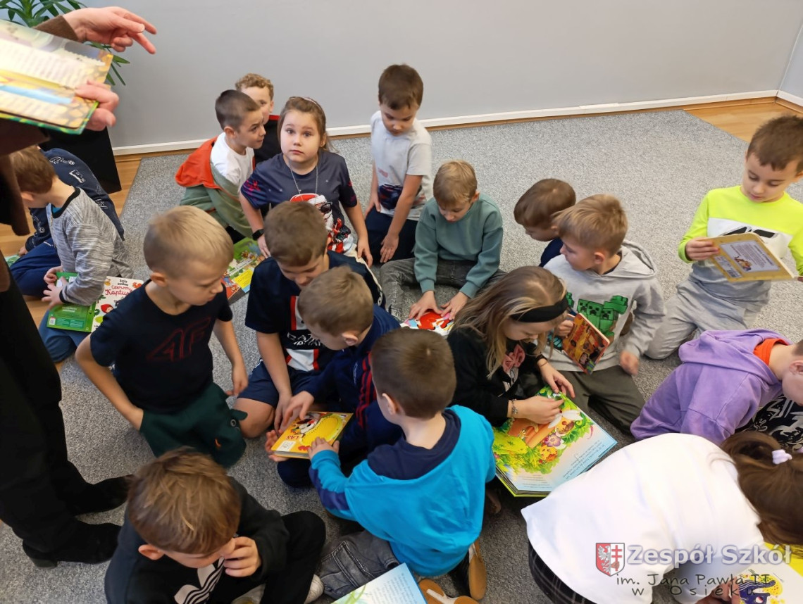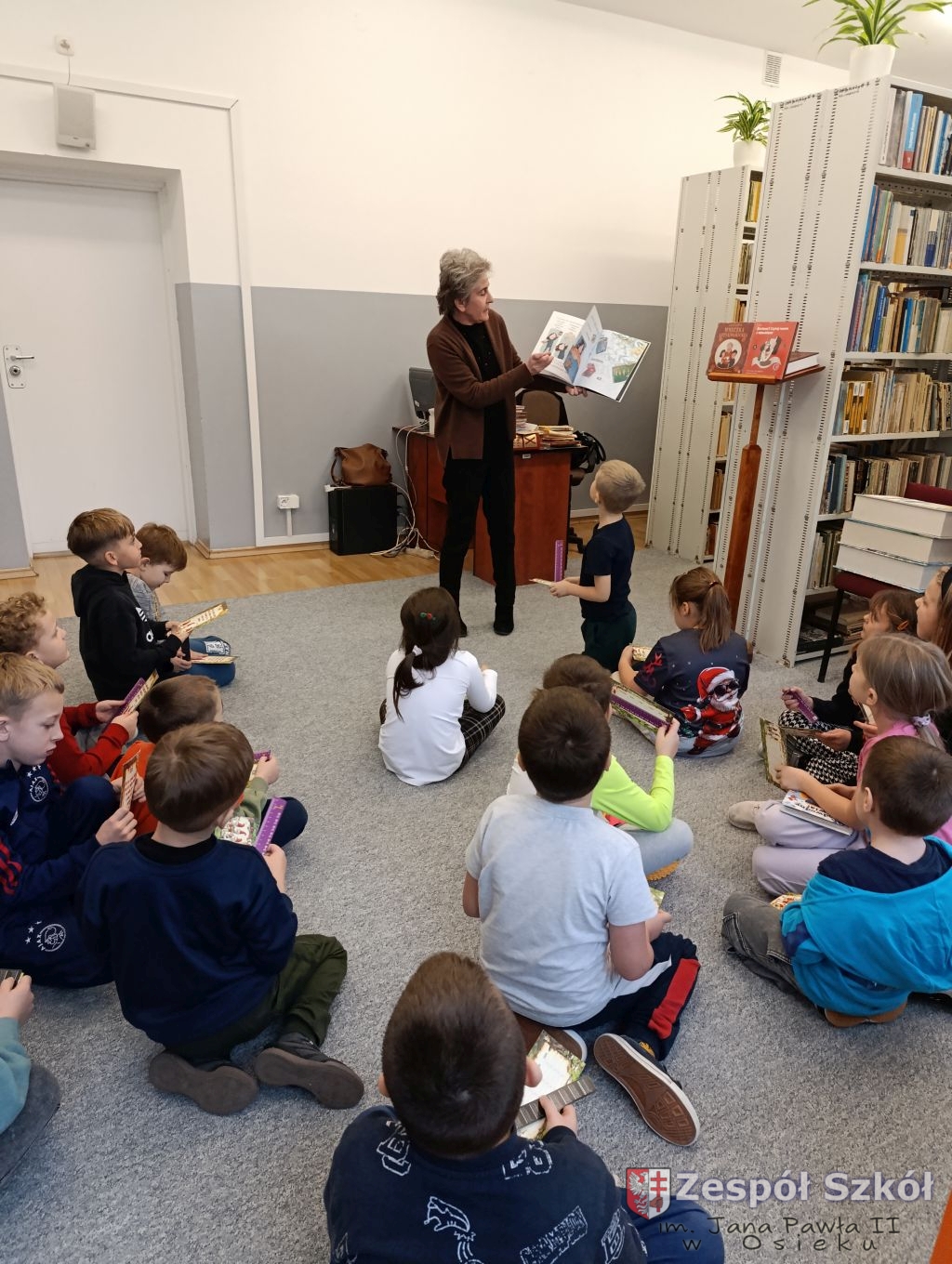 W dniach 10 i 11 grudnia 2024 r. uczniowie klas pierwszych uczestniczyli w zajęciach bibliotecznych, gdzie mogli poznać zasady obowiązujące w szkolnej bibliotece. Dzieci dowiedziały się jak samodzielnie wypożyczać i oddawać książki oraz jak o nie dbać. Każdy pierwszoklasista otrzymał wyprawkę czytelnika zawierającą książkę „Wnuczka antykwariusza” autorstwa Emilii Dziubak i zakładki do książki, a dla rodziców broszurę informacyjną „Kochasz czytaj razem z dzieckiem”.