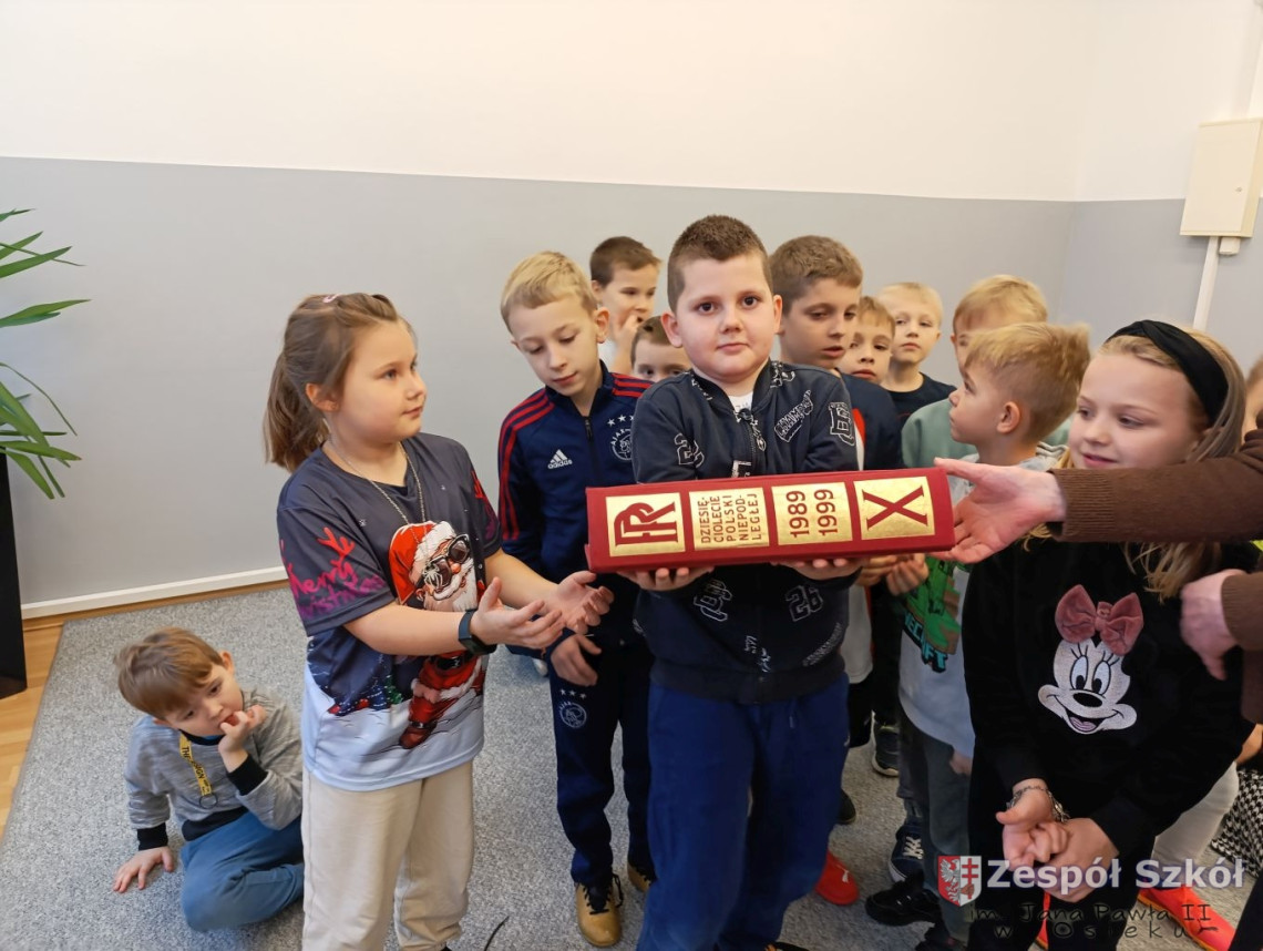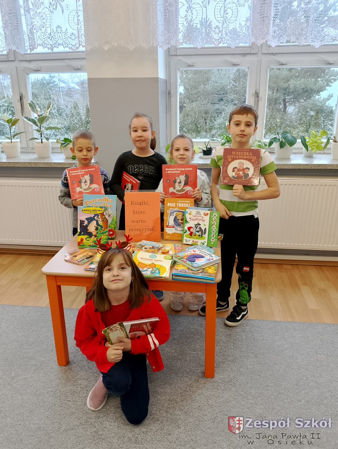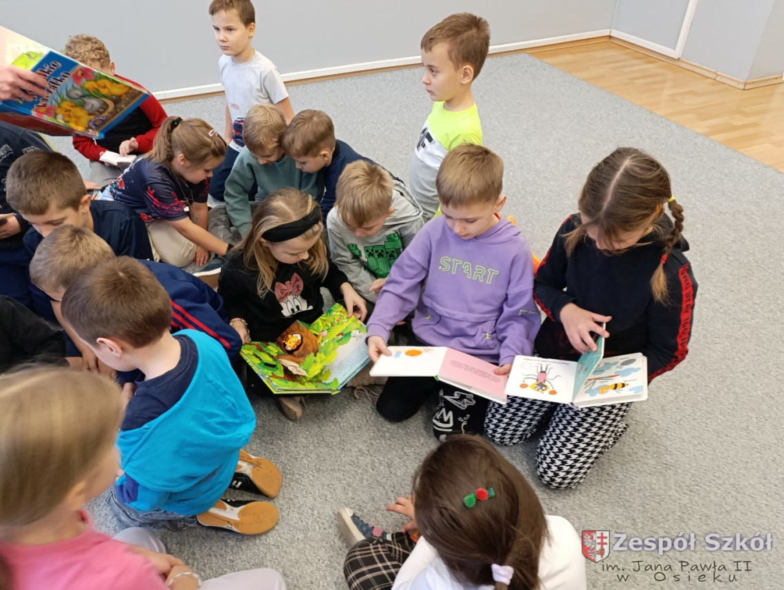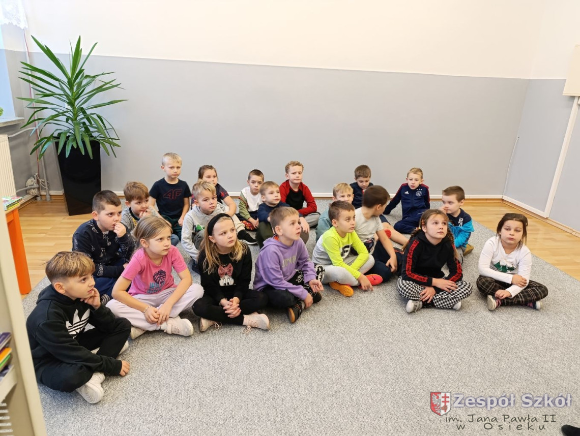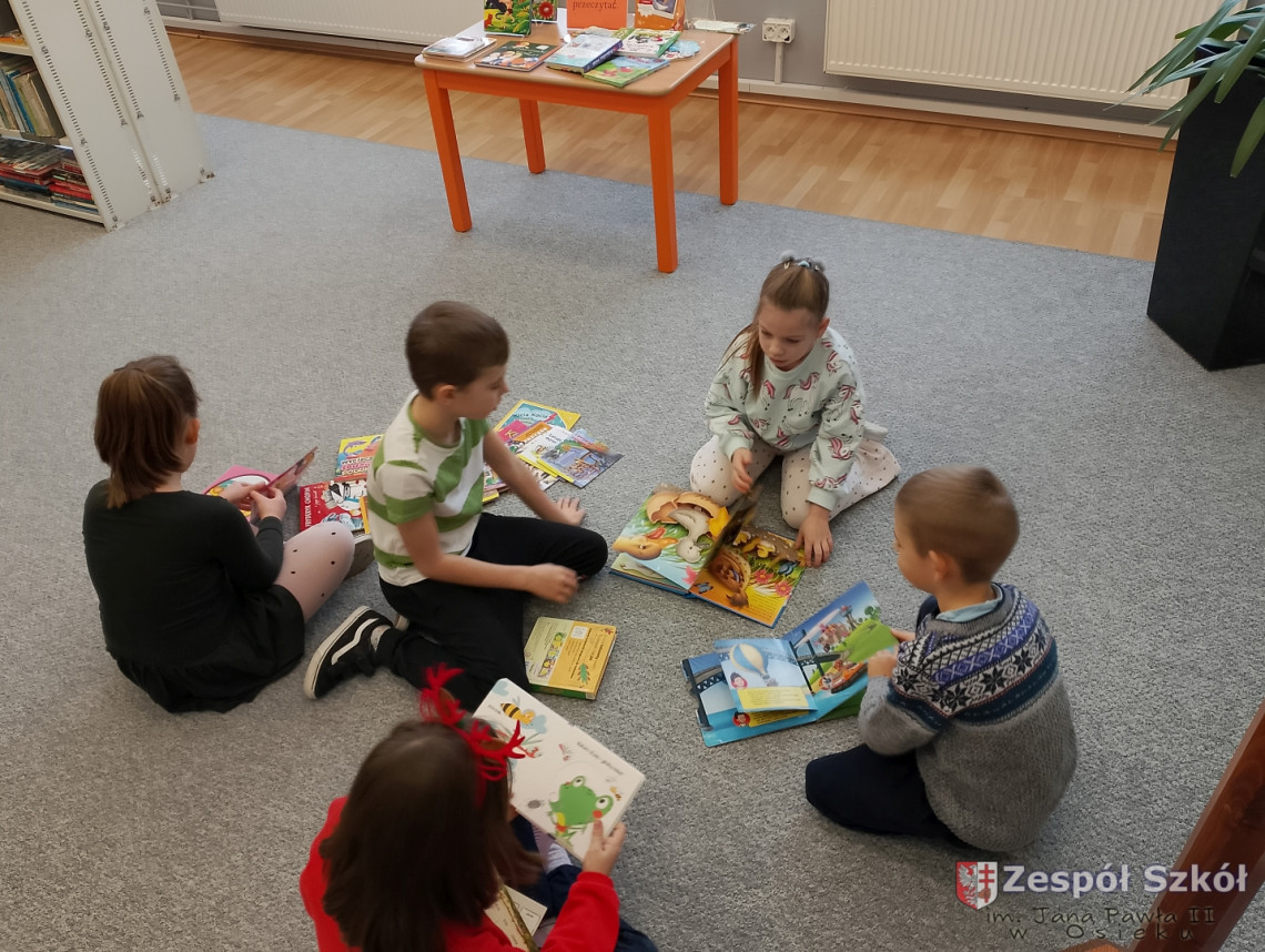 W dniach 10 i 11 grudnia 2024 r. uczniowie klas pierwszych uczestniczyli w zajęciach bibliotecznych, gdzie mogli poznać zasady obowiązujące w szkolnej bibliotece. Dzieci dowiedziały się jak samodzielnie wypożyczać i oddawać książki oraz jak o nie dbać. Każdy pierwszoklasista otrzymał wyprawkę czytelnika zawierającą książkę „Wnuczka antykwariusza” autorstwa Emilii Dziubak i zakładki do książki, a dla rodziców broszurę informacyjną „Kochasz czytaj razem z dzieckiem”.