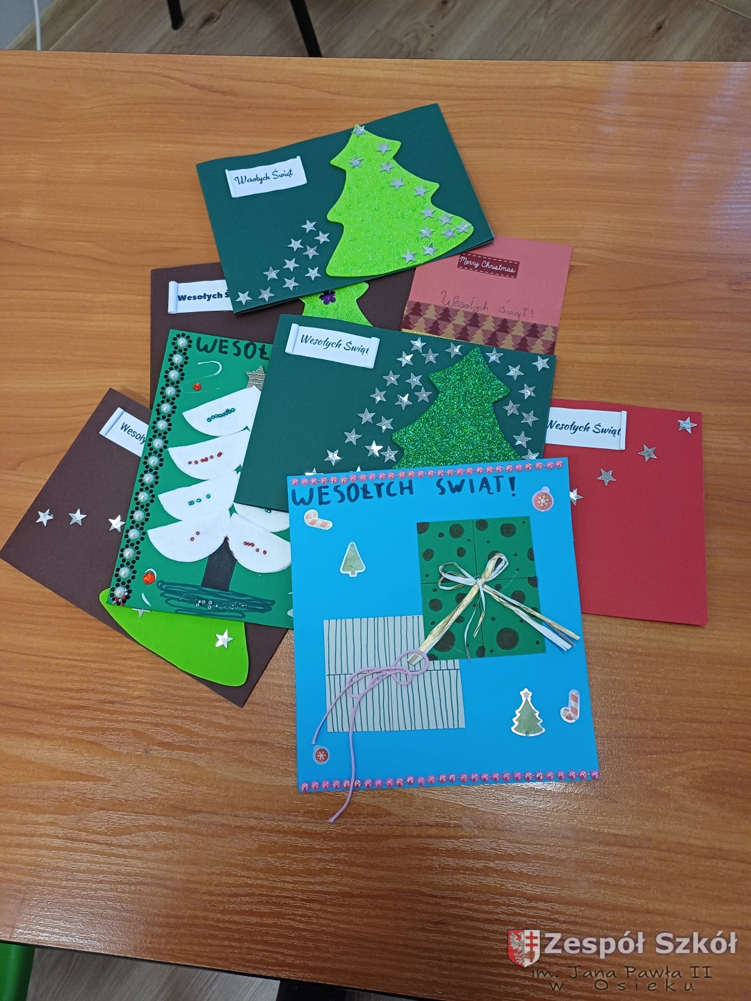 Chętni uczniowie wykonując kartki z życzeniami z okazji Świąt Bożego Narodzenia włożyli w nie wiele wysiłku i serca.