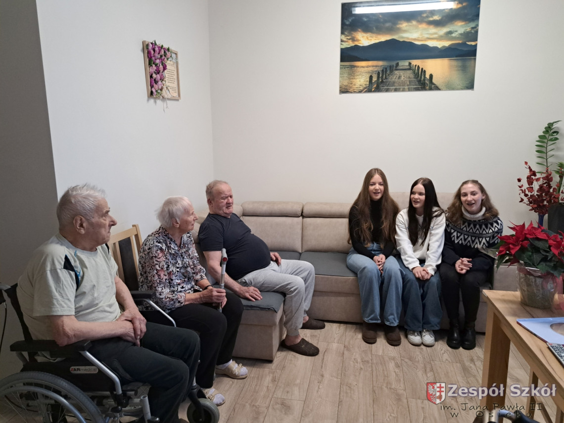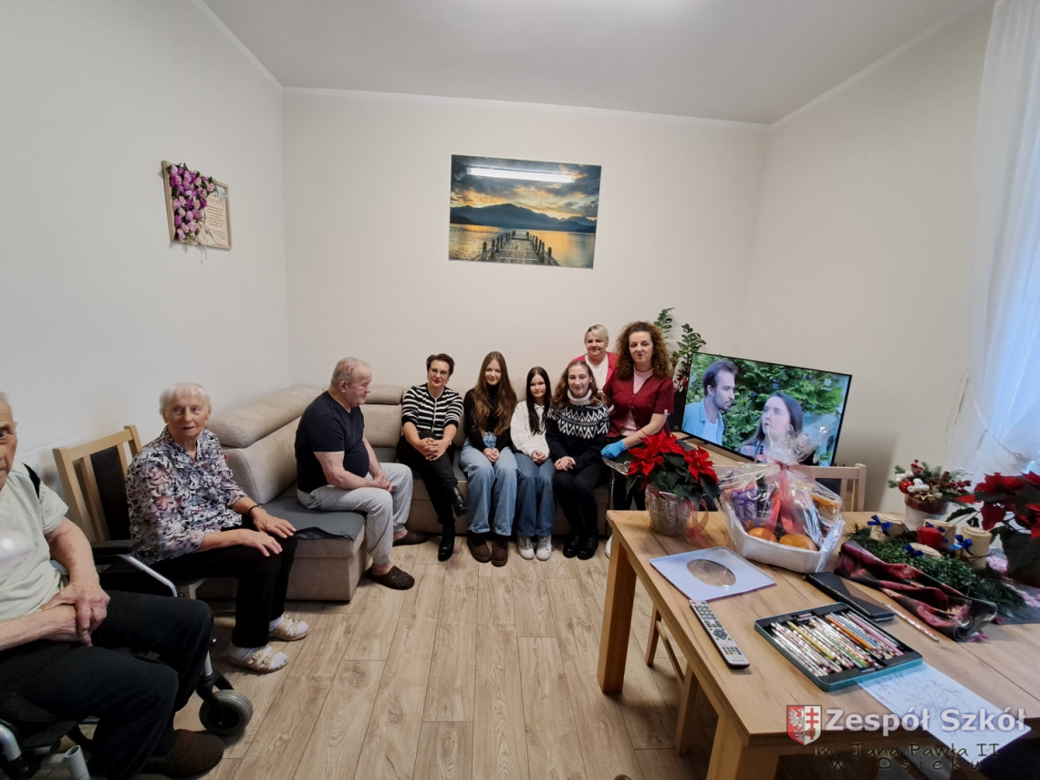 W duchu świątecznej atmosfery uczniowie naszej szkoły zorganizowali spotkanie w Centrum Opiekuńczo-Mieszkalnym w Bukowej. „To, co przeżyło jedno pokolenie, drugie przerabia w sercu i pamięci...” – te słowa najlepiej oddają klimat tego spotkania. Był to wyjątkowy dzień pełen ciepła i świątecznej atmosfery. Wierzymy, że uczniowie swoją obecnością, wspólnym kolędowaniem i świątecznymi życzeniami wnieśli do serc podopiecznych radość oraz poczucie, że w tym szczególnym okresie nie są sami.