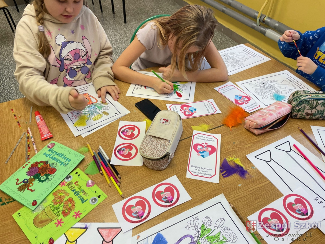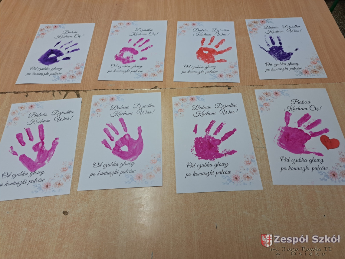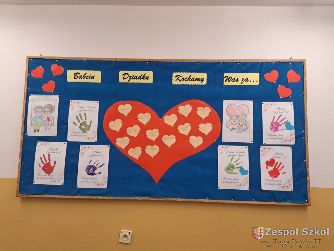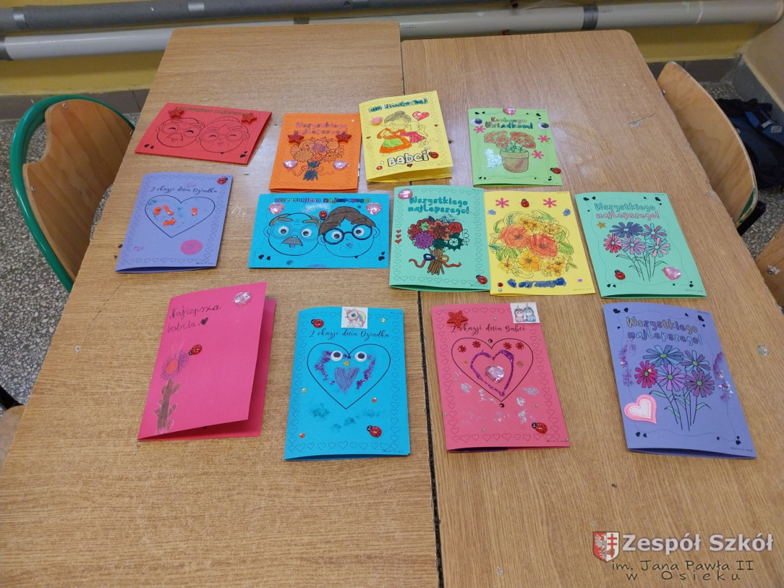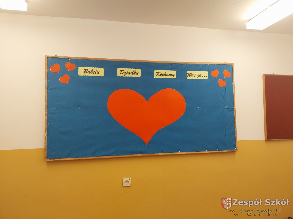 Z tej okazji uczniowie ze świetlicy szkolnej wycięły ogromne serce, na którym przykleiły małe serduszka, a na nich napisały wyrazy, jakimi określają swoją Babcię i swojego Dziadka. Wśród prac znalazły się również laurki i prace według własnego pomysłu. Przygotowanie podarunków było świetną okazją dla uczniów do wykazania się kreatywnością.