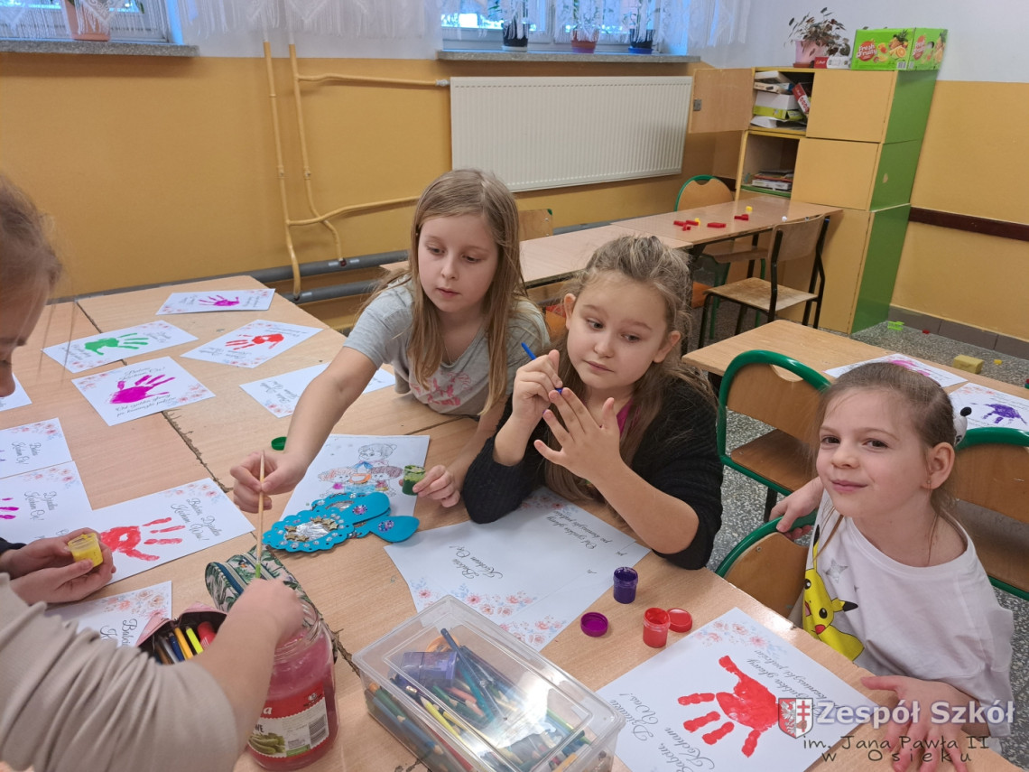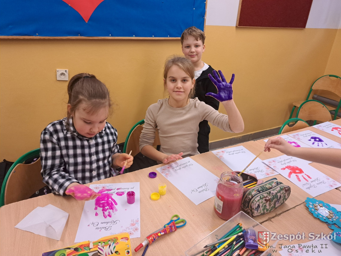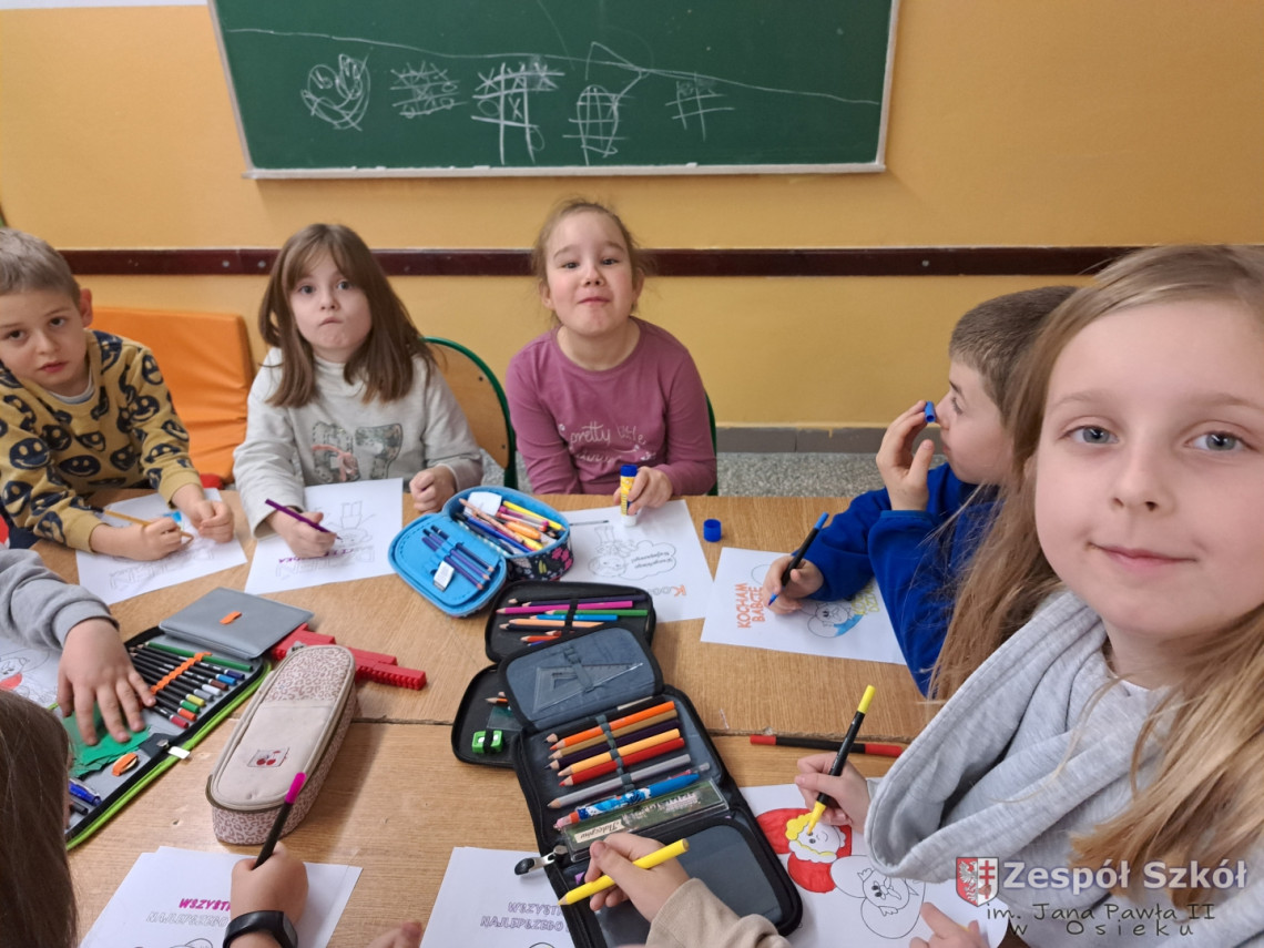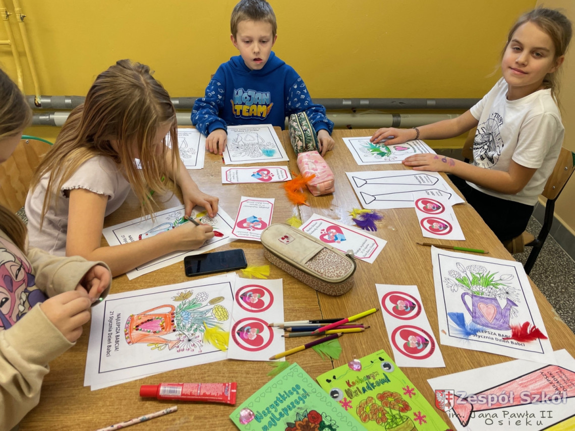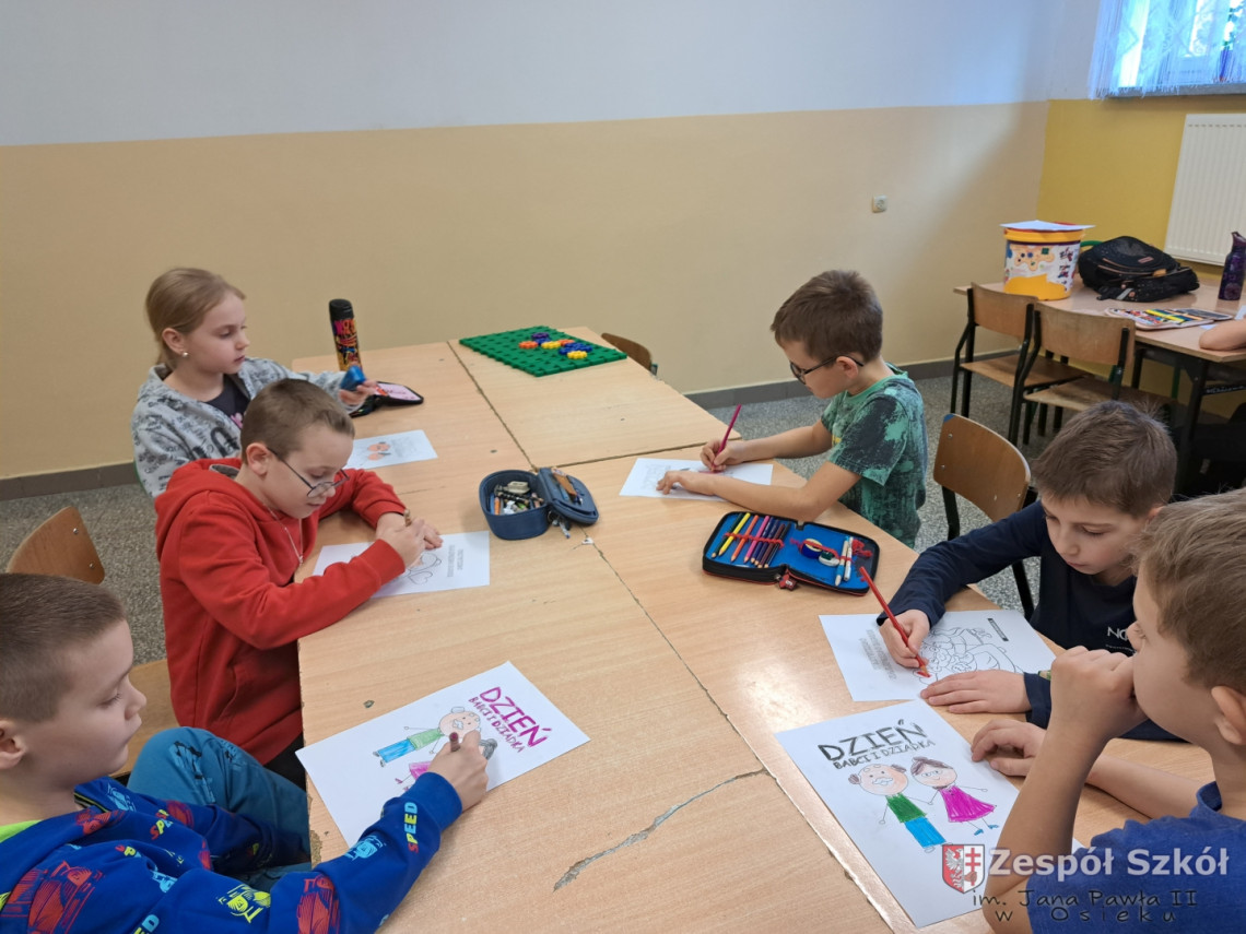 Z tej okazji uczniowie ze świetlicy szkolnej wycięły ogromne serce, na którym przykleiły małe serduszka, a na nich napisały wyrazy, jakimi określają swoją Babcię i swojego Dziadka. Wśród prac znalazły się również laurki i prace według własnego pomysłu. Przygotowanie podarunków było świetną okazją dla uczniów do wykazania się kreatywnością.