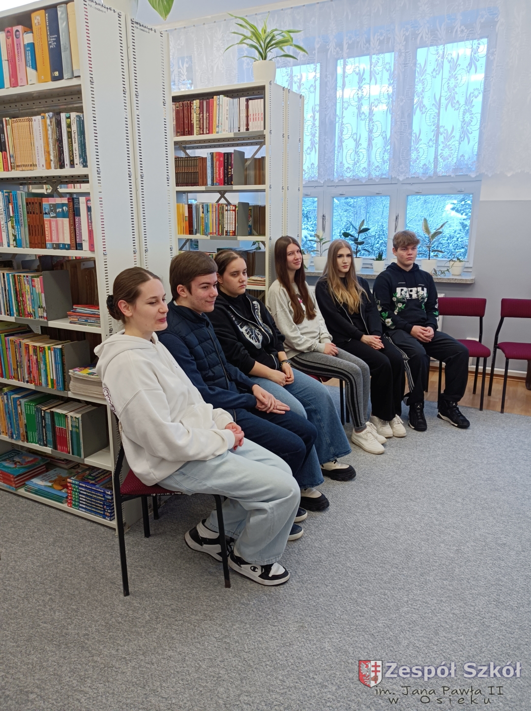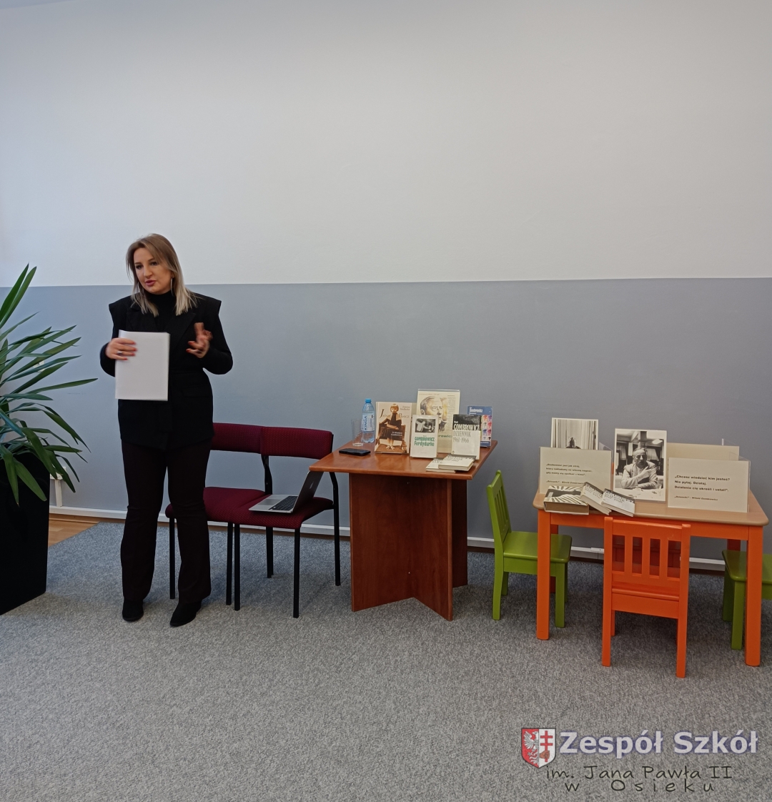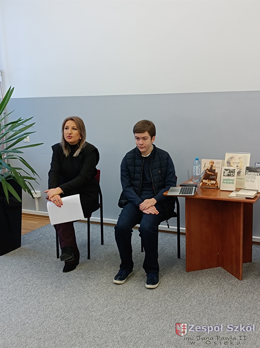 W dniu 15 stycznia 2025 r. uczniowie Liceum Ogólnokształcącego uczestniczyli w spotkaniu poświęconym Witoldowi Gombrowiczowi. Gościem spotkania była moderator Dyskusyjnego Klubu Książki w Osieku – pani Kataryna Kunowska, która przybliżyła młodzieży sylwetkę jednego z najwybitniejszych pisarzy i dramaturgów polskich XX wieku.