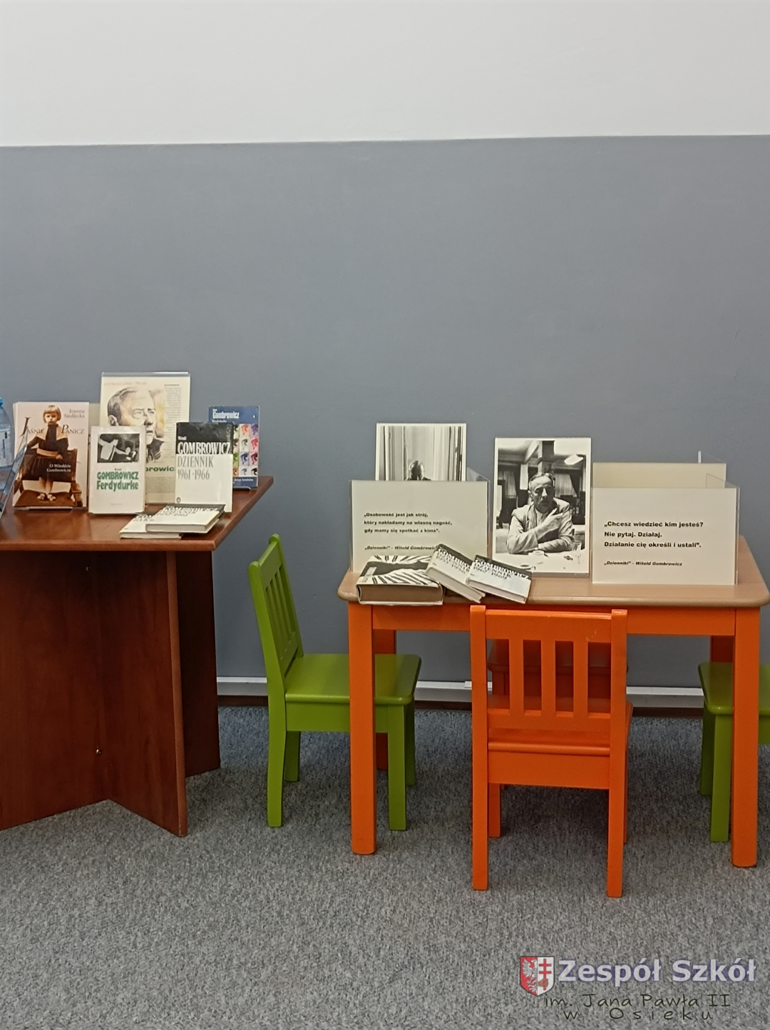 Dopełnieniem spotkania była przygotowana przez panią Zdzisławę Król wystawa publikacji poświęconych Witoldowi Gombrowiczowi oraz jego autorstwa, jakie licealiści mogą wypożyczyć w szkolnej bibliotece.