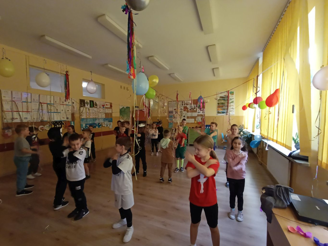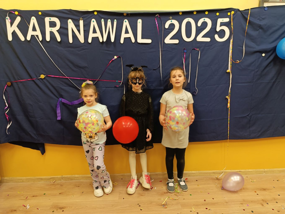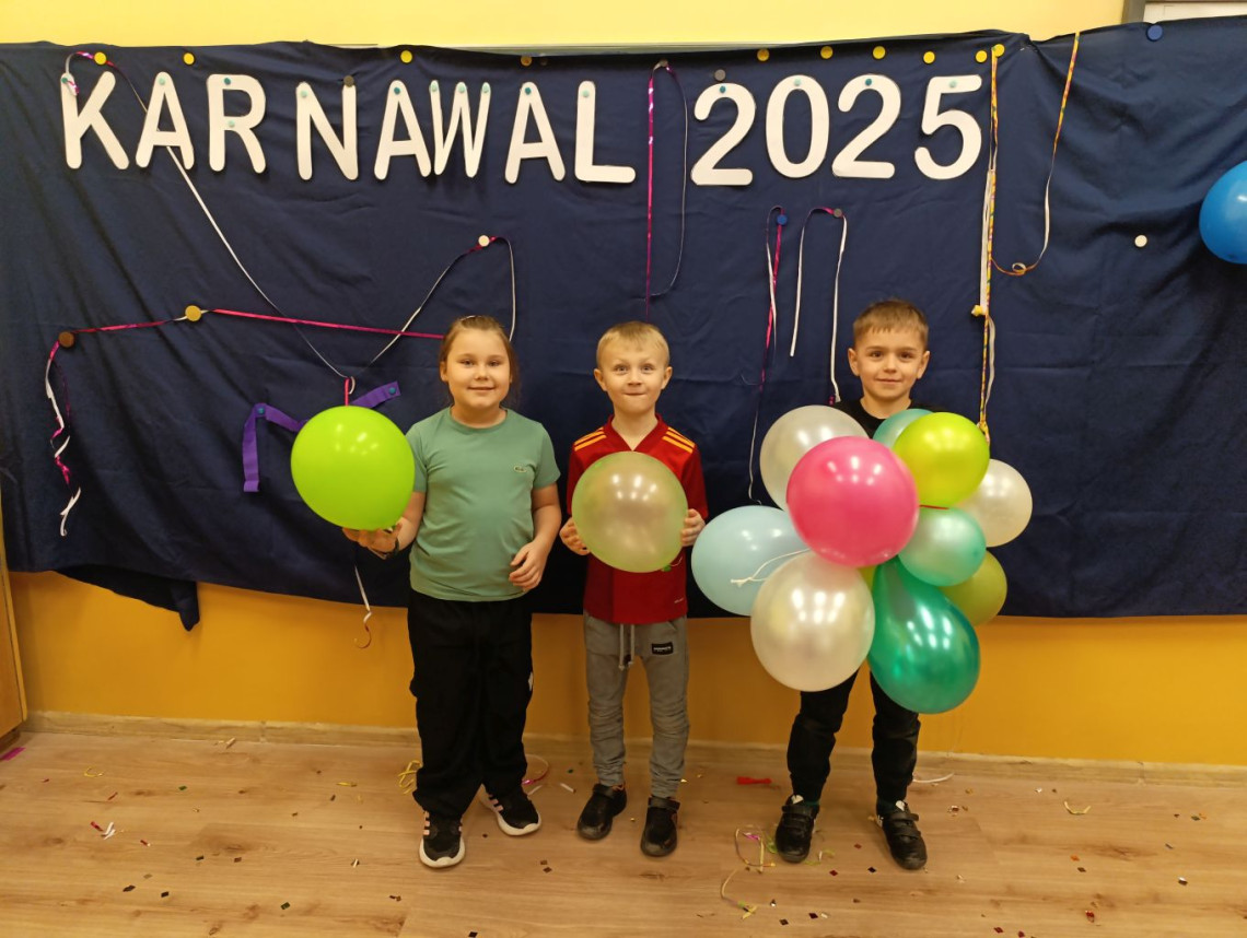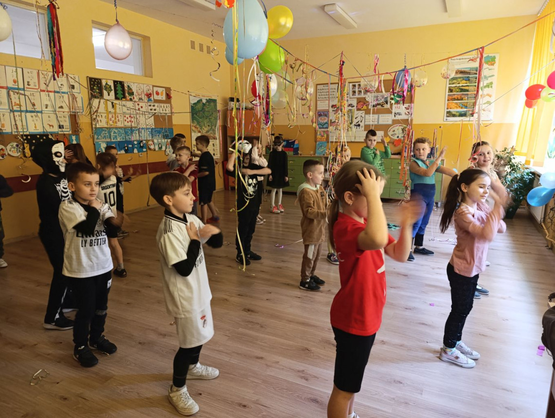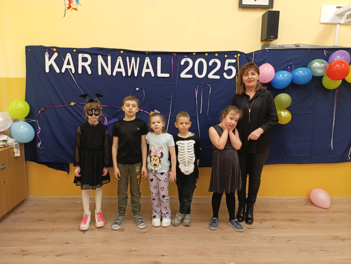 28 lutego 2025r. w naszej szkole odbył się bal karnawałowy w klasach pierwszych. Ten dzień był długo wyczekiwany przez uczniów, a sala lekcyjna w tym wyjątkowym dniu zamieniła się w piękną salę balową. Nauczyciele, uczniowie i rodzice wcześniej przyozdobili salę serpentynami, łańcuchami i balonami, co sprawiło że nabrała zjawiskowego wyglądu i wprowadziła wszystkich w wesoły nastrój. Uczniowie przebrani w piękne i kolorowe stroje bawili się wyśmienicie przy dźwiękach muzyki. W czasie przerwy dzieci miały czas na słodki poczęstunek przygotowany przez rodziców. Była to również wspaniała okazja do integracji uczniów klas pierwszych i zrobienia pamiątkowych zdjęć. Zabawa była super i na pewno długo pozostanie w naszej pamięci.