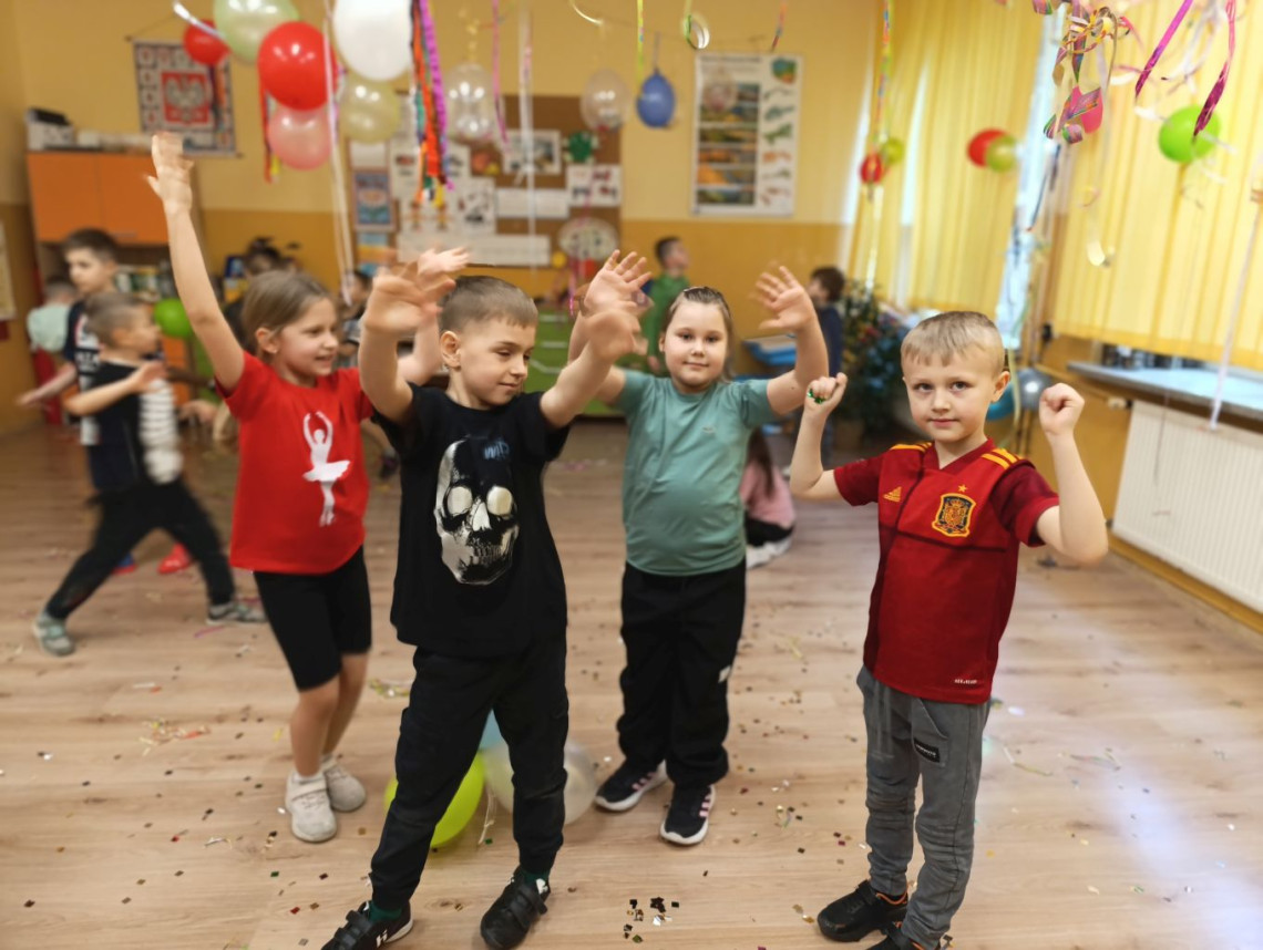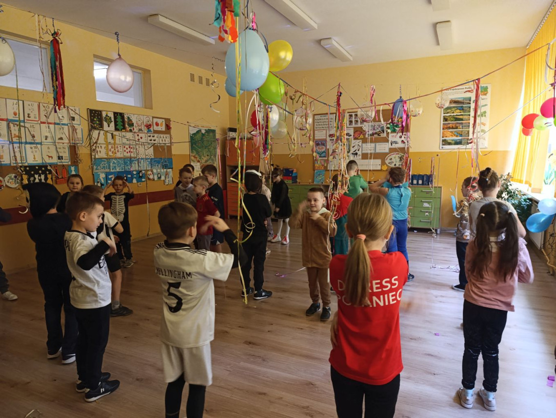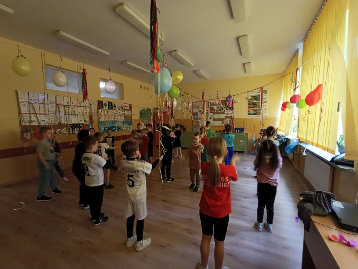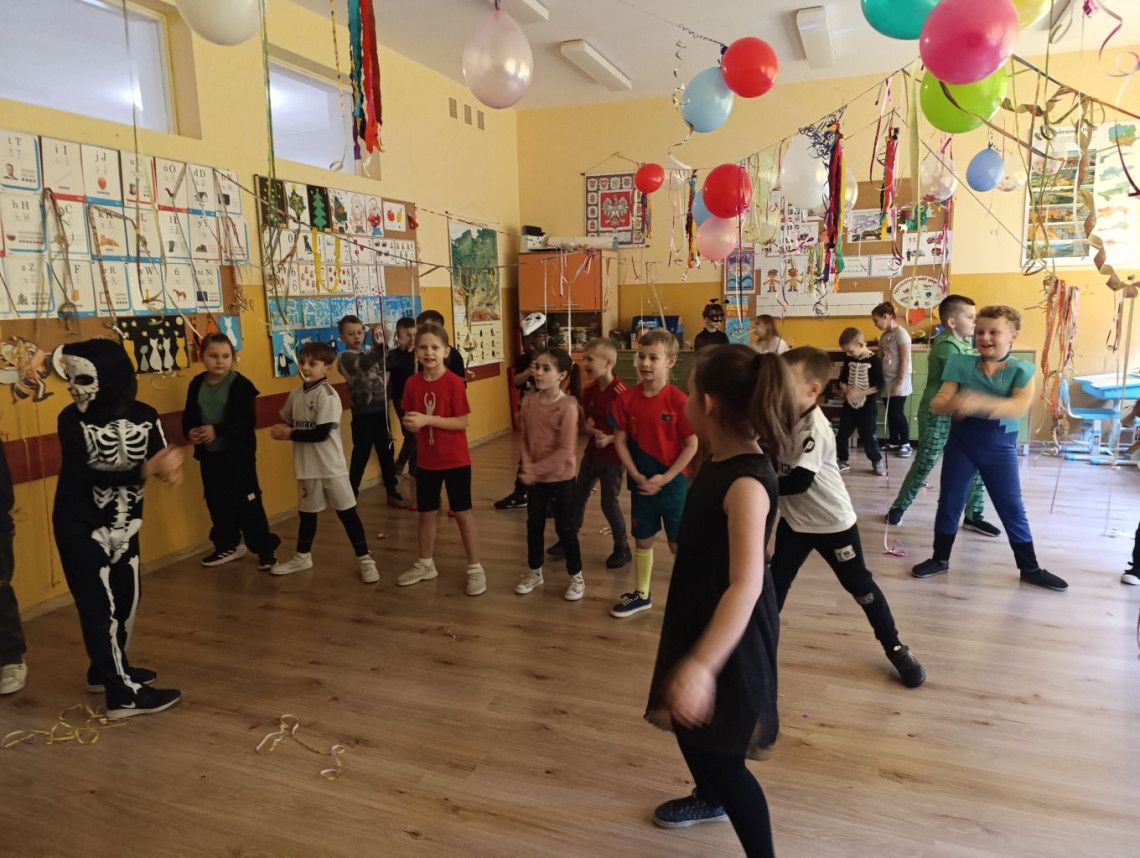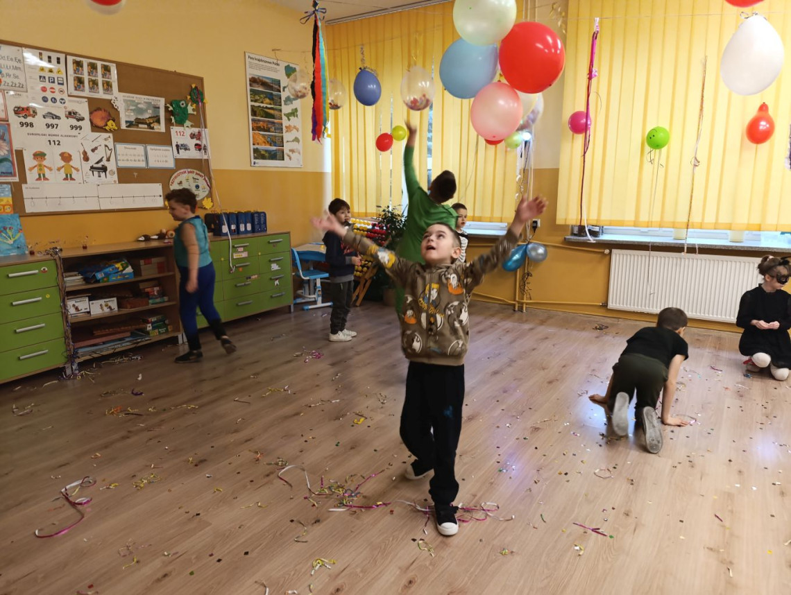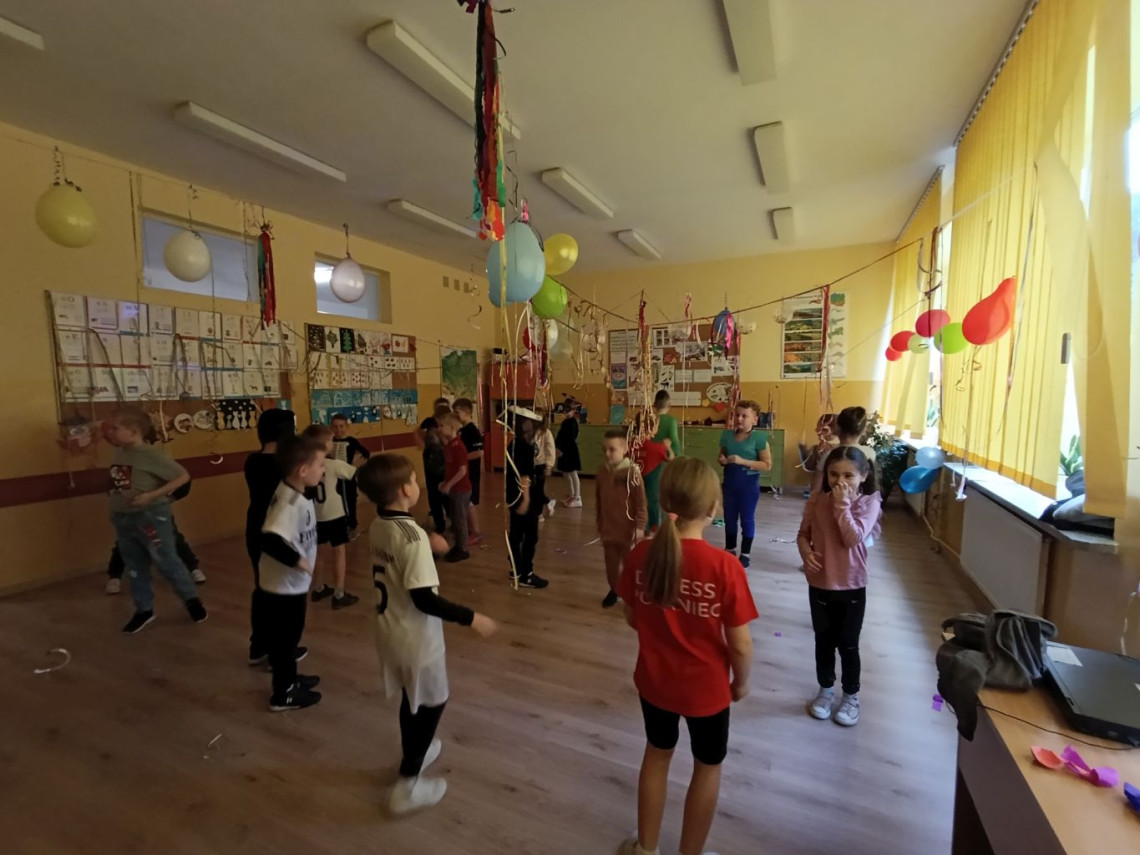 28 lutego 2025r. w naszej szkole odbył się bal karnawałowy w klasach pierwszych. Ten dzień był długo wyczekiwany przez uczniów, a sala lekcyjna w tym wyjątkowym dniu zamieniła się w piękną salę balową. Nauczyciele, uczniowie i rodzice wcześniej przyozdobili salę serpentynami, łańcuchami i balonami, co sprawiło że nabrała zjawiskowego wyglądu i wprowadziła wszystkich w wesoły nastrój. Uczniowie przebrani w piękne i kolorowe stroje bawili się wyśmienicie przy dźwiękach muzyki. W czasie przerwy dzieci miały czas na słodki poczęstunek przygotowany przez rodziców. Była to również wspaniała okazja do integracji uczniów klas pierwszych i zrobienia pamiątkowych zdjęć. Zabawa była super i na pewno długo pozostanie w naszej pamięci.