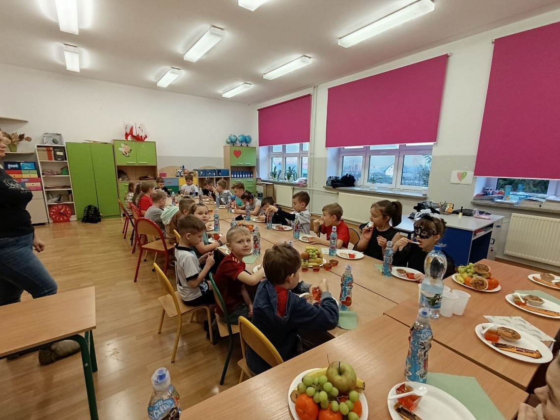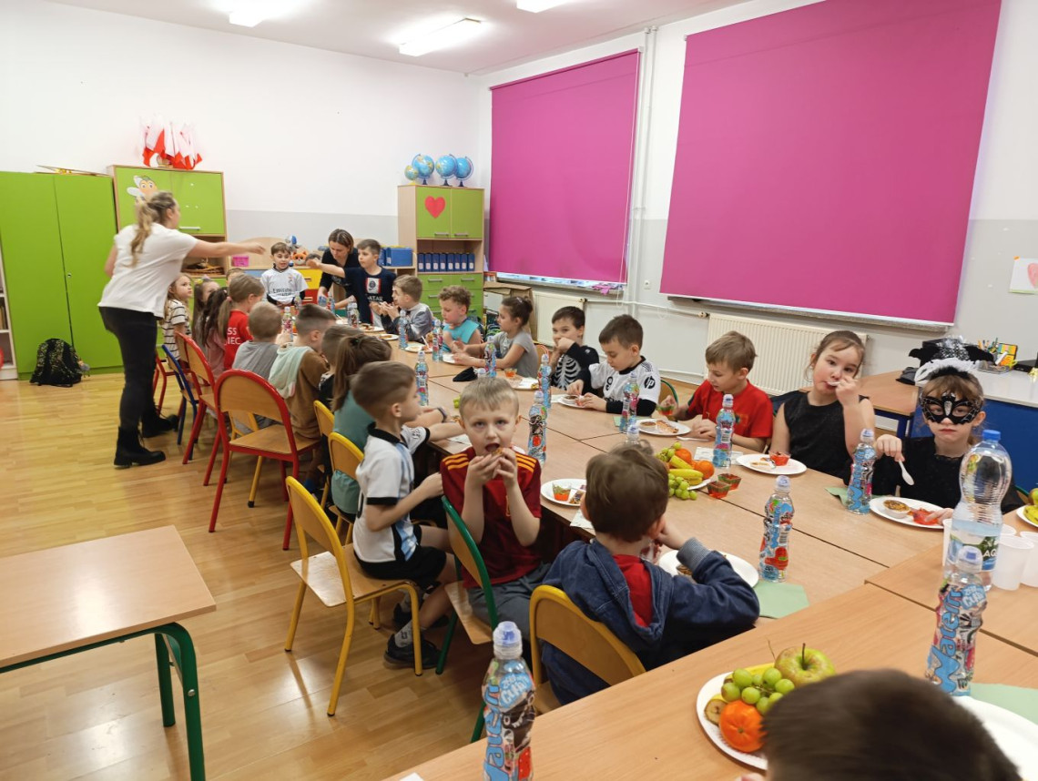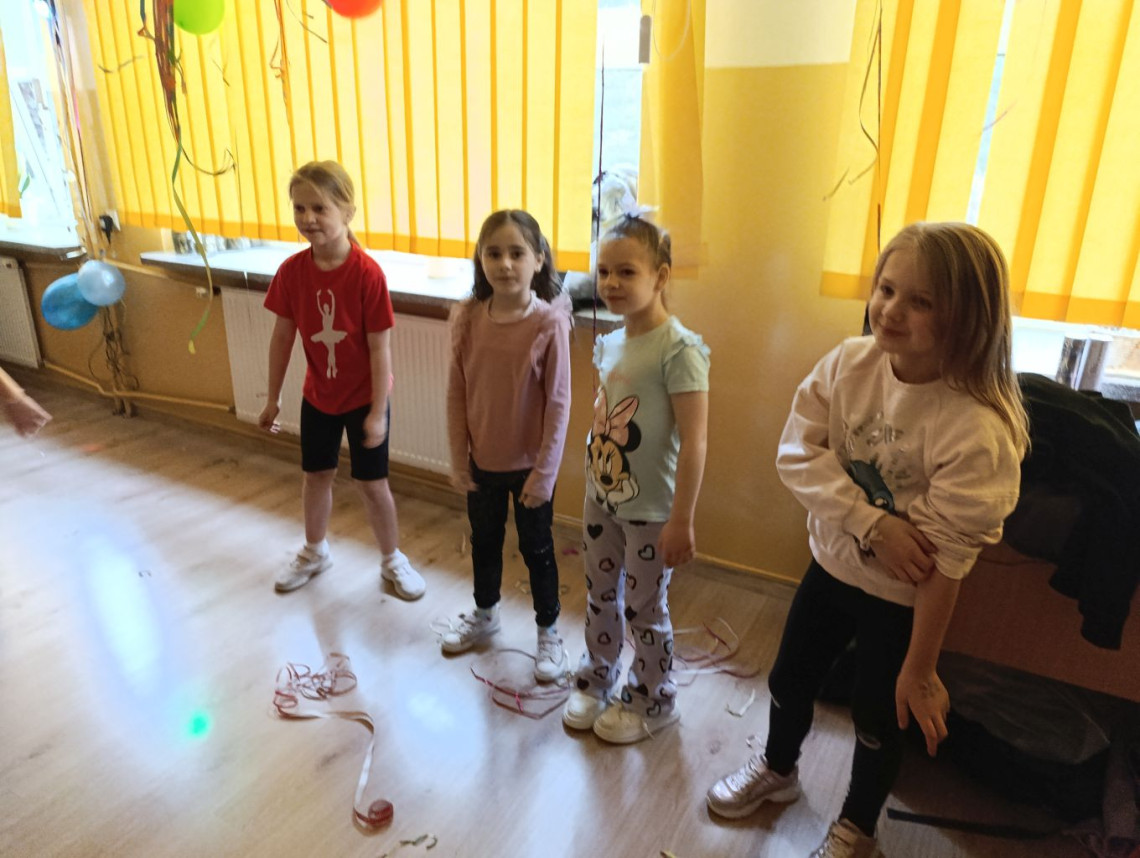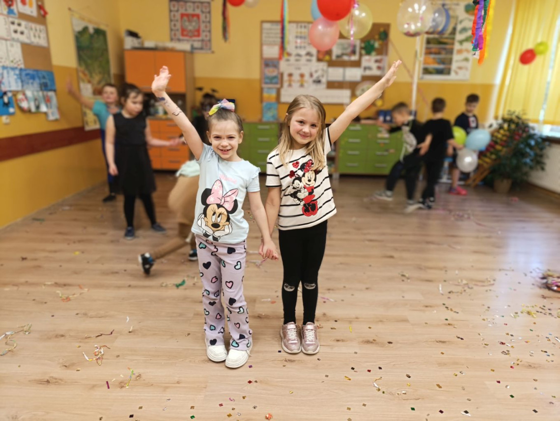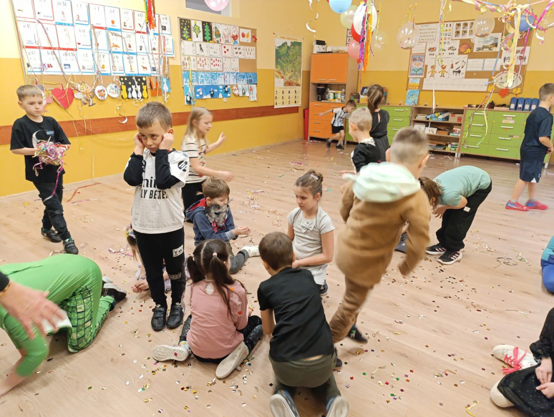 28 lutego 2025r. w naszej szkole odbył się bal karnawałowy w klasach pierwszych. Ten dzień był długo wyczekiwany przez uczniów, a sala lekcyjna w tym wyjątkowym dniu zamieniła się w piękną salę balową. Nauczyciele, uczniowie i rodzice wcześniej przyozdobili salę serpentynami, łańcuchami i balonami, co sprawiło że nabrała zjawiskowego wyglądu i wprowadziła wszystkich w wesoły nastrój. Uczniowie przebrani w piękne i kolorowe stroje bawili się wyśmienicie przy dźwiękach muzyki. W czasie przerwy dzieci miały czas na słodki poczęstunek przygotowany przez rodziców. Była to również wspaniała okazja do integracji uczniów klas pierwszych i zrobienia pamiątkowych zdjęć. Zabawa była super i na pewno długo pozostanie w naszej pamięci.