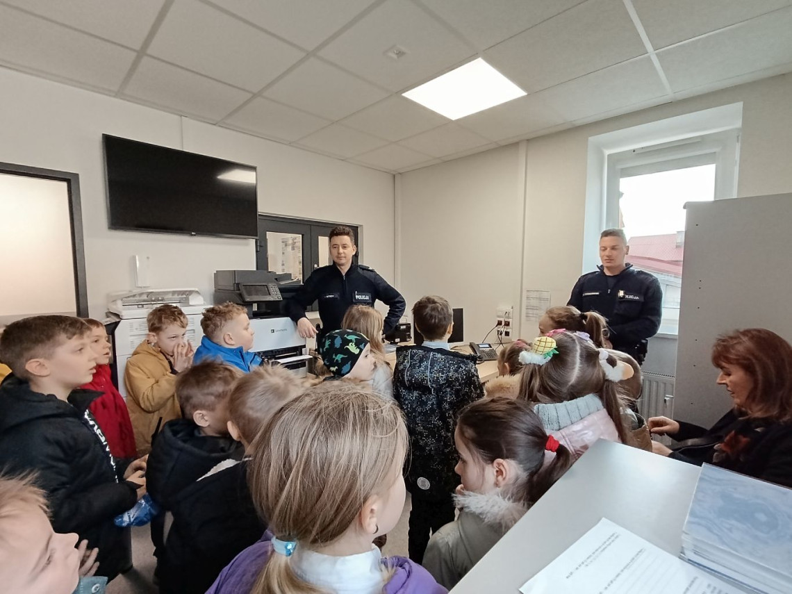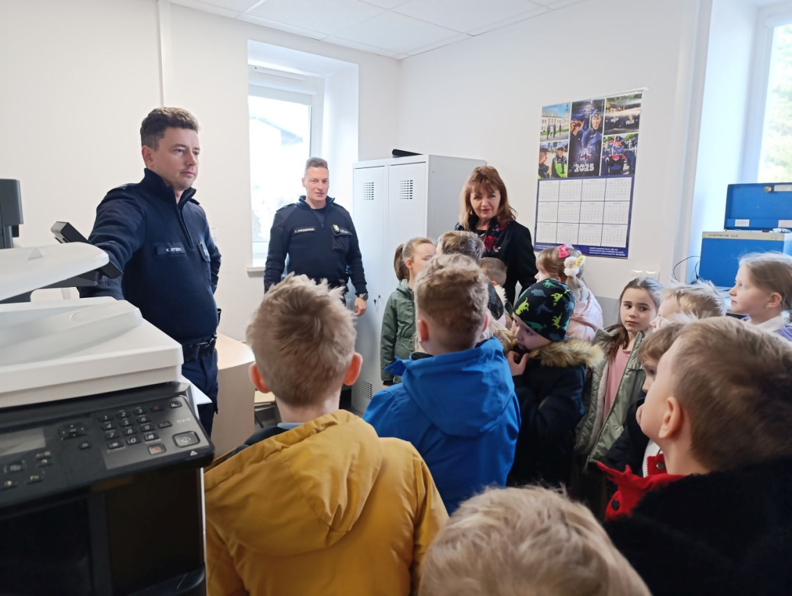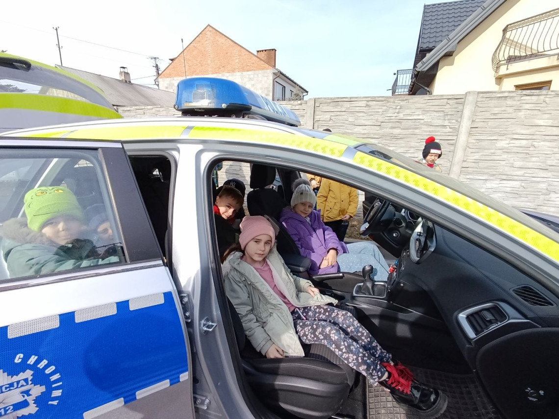 W dniu 07 marca 2025 r. pierwszaki odwiedzili Posterunek Policji w Osieku, gdzie dowiedzieli się jak zróżnicowana i ciekawa jest służba w Policji, ale jednocześnie bywa również niebezpieczna. Zwiedzając posterunek zobaczyli stanowisko dowodzenia i gabinety służbowe. Następnie uczniowie oglądali radiowóz policyjny, siedzieli w środku auta i widzieli sygnały świetlne co było dla nich największą atrakcją. Na zakończenie spotkania wszyscy pozowali do pamiątkowych zdjęć. Wycieczka dla uczniów była bardzo atrakcyjna, dostarczyła im niezapomnianych wrażeń, które na długo pozostaną w ich pamięci.