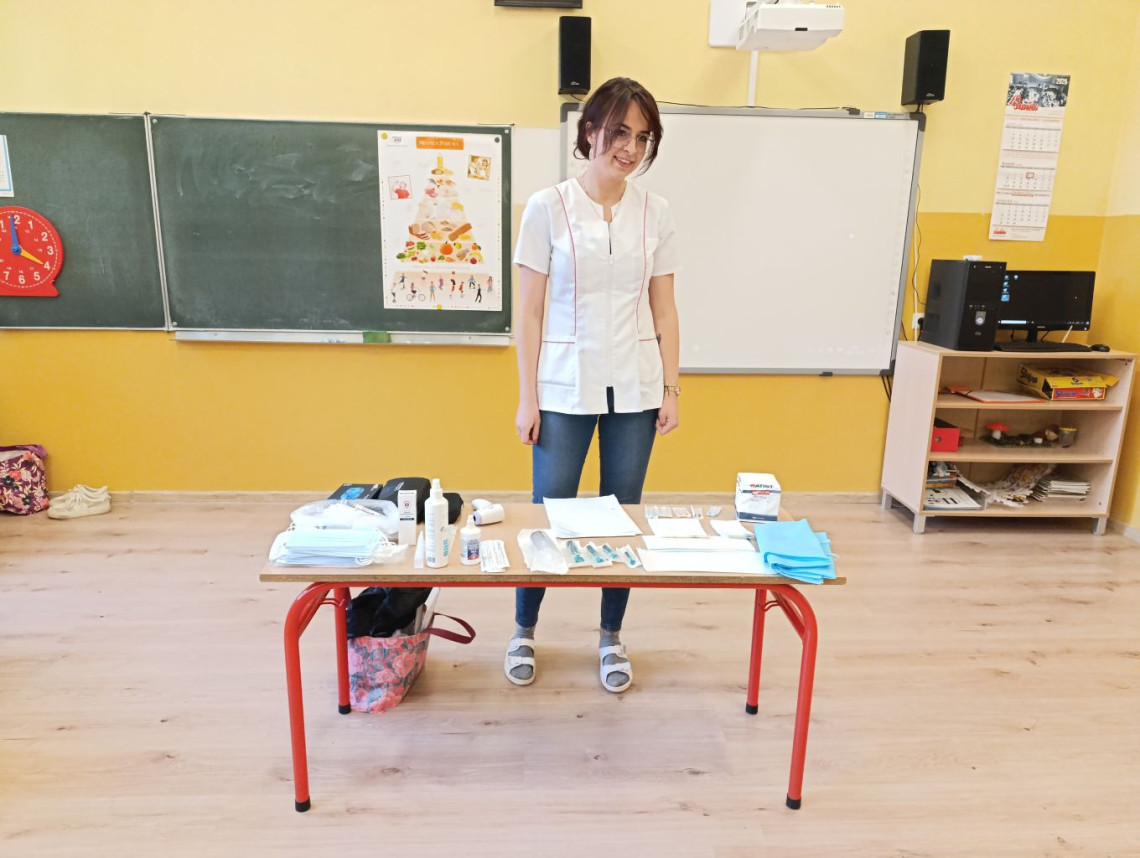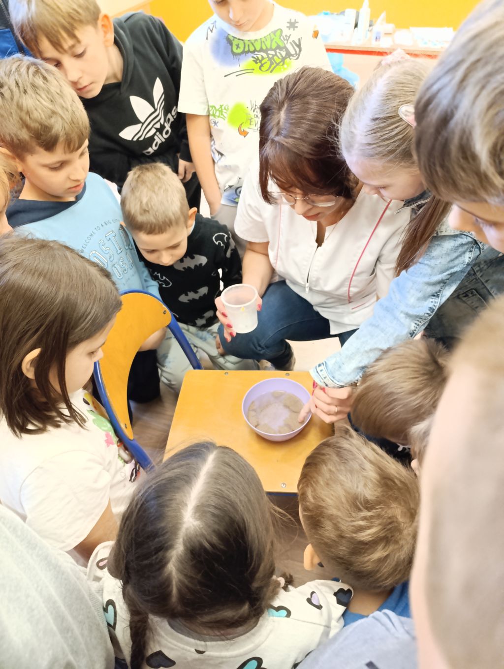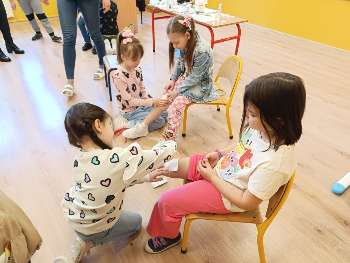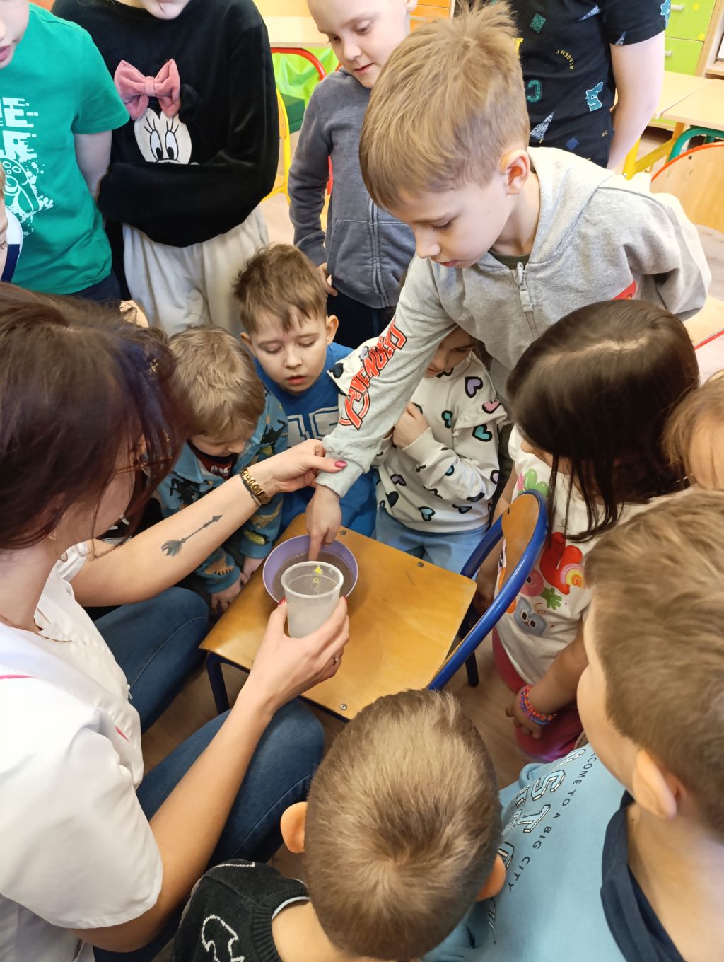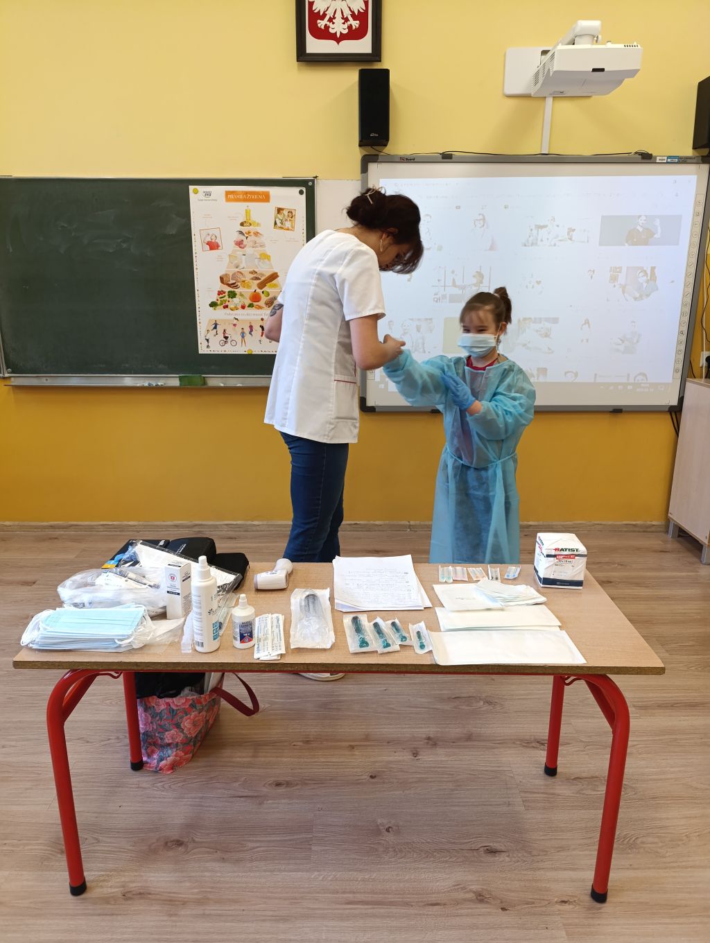 W dniu 10 marca 2025 r. uczniowie z klas pierwszych w ramach realizacji innowacji uczestniczyli w spotkaniu z pielęgniarką panią Magdaleną Mikus. Celem spotkania było przybliżenie dzieciom zawodu pielęgniarki jak również uświadomienie konieczności dbania o swoje zdrowie. Pielęgniarka opowiadając o swojej pracy demonstrowała dzieciom różne akcesoria medyczne: bandaże, plasterki, termometr, ciśnieniomierz, glukometr itp. Jednak największą frajdą dla dzieci było mierzenie temperatury i ciśnienia przez pielęgniarkę, naklejanie plasterków i wzajemne bandażowanie kolegów i koleżanek. Na zakończenie spotkania wszyscy uczniowie pozowali do pamiątkowego zdjęcia, otrzymali kolorowankę z numerami alarmowymi i naklejkę – DZIELNY PACJENT. Spotkanie to przyniosło wszystkim mnóstwo emocji i pozytywnych wrażeń.