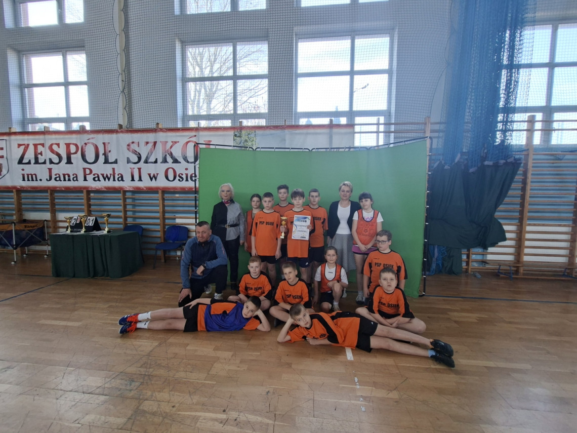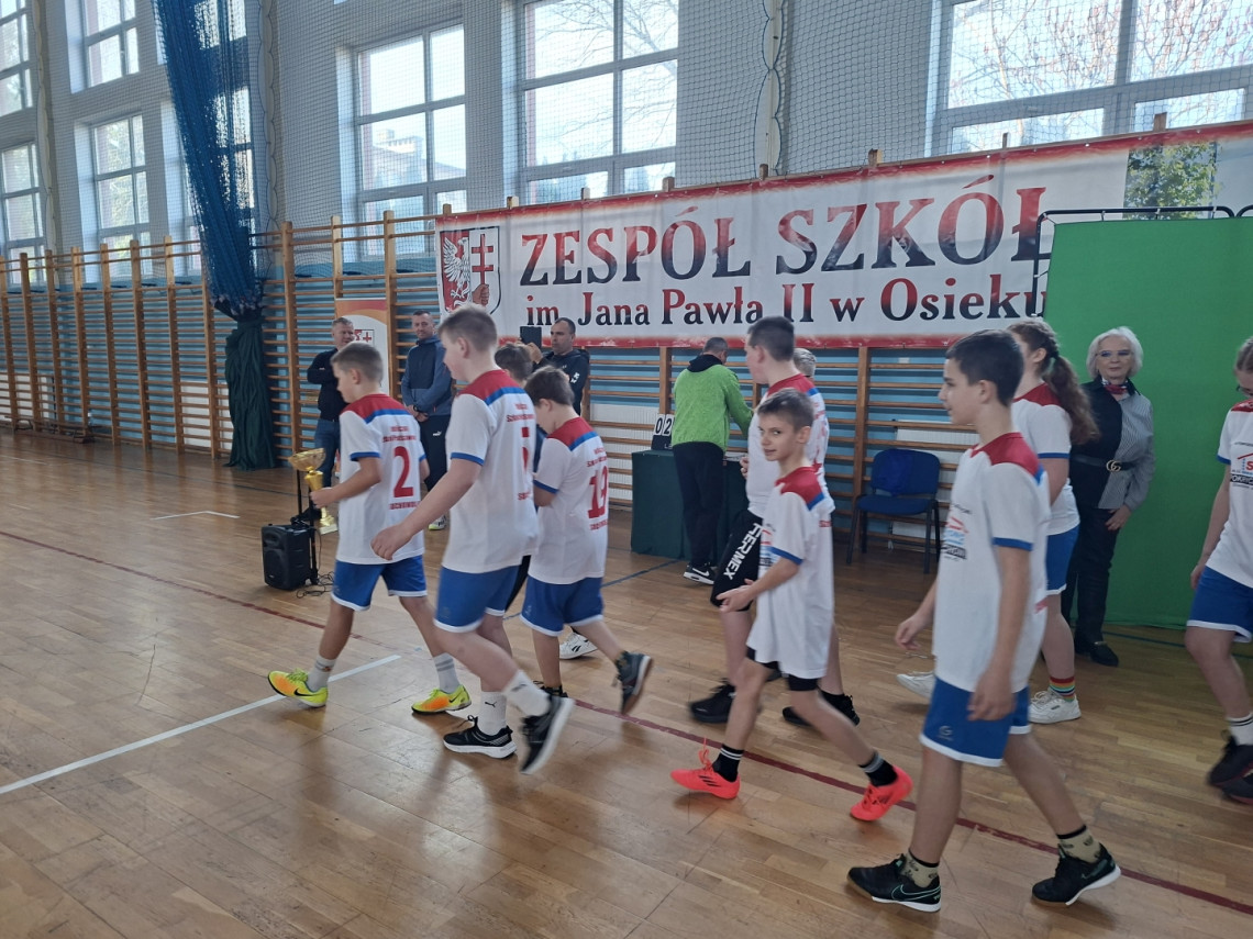 Statuetki i dyplomy wręczyli gospodarze turnieju: Burmistrz Miasta i Gminy Osiek pani Magdalena Marynowska, dyrektor Zespołu Szkół im. Jana Pawła II w Osieku pani Małgorzata Kunowska oraz trenerzy.