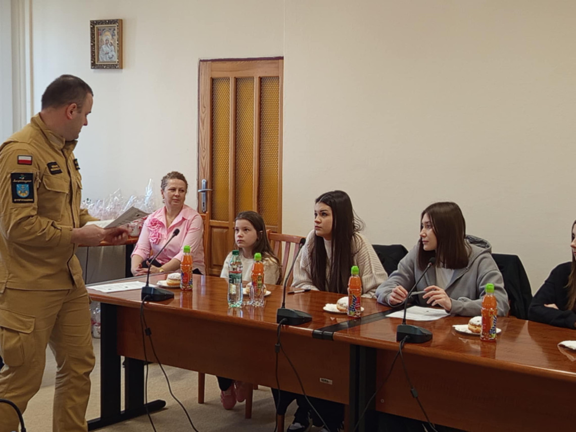 Dnia 18 marca 2025 r. uczniowie ze szkół naszej gminy wzięli udział w gminnych eliminacjach Ogólnopolskiego Turnieju Wiedzy Pożarniczej "Młodzież Zapobiega Pożarom". Eliminacje odbyły się w Urzędzie Miasta i Gminy w Osieku. Turniej miał na celu popularyzowanie przepisów i kształtowanie umiejętności w zakresie ochrony ludności, ekologii, ratownictwa i ochrony przeciwpożarowej.