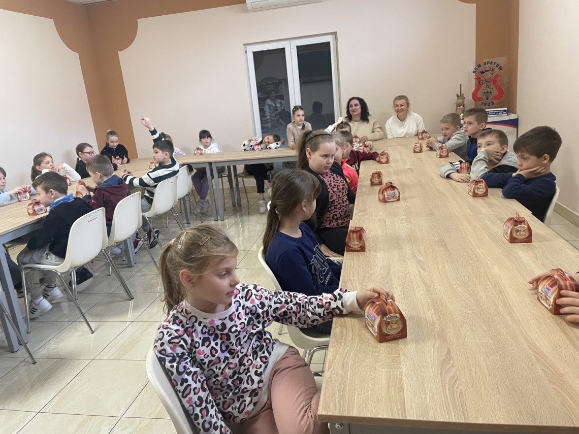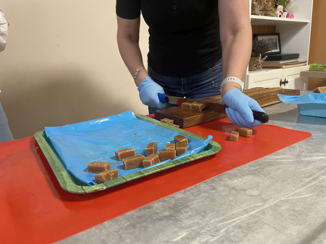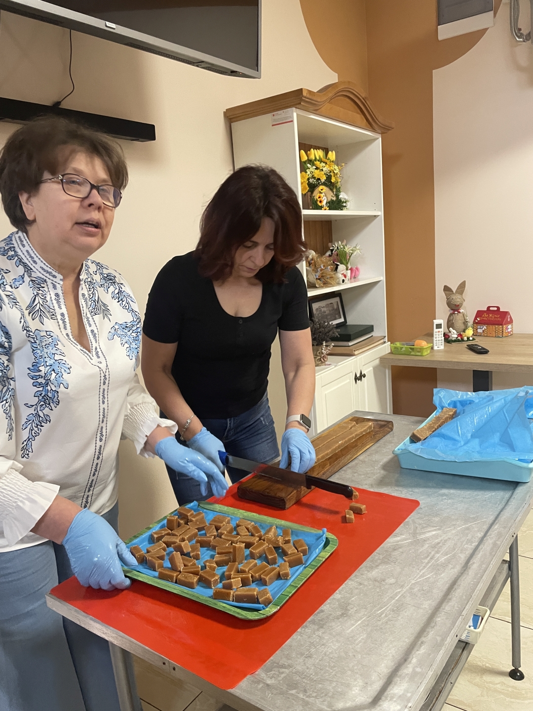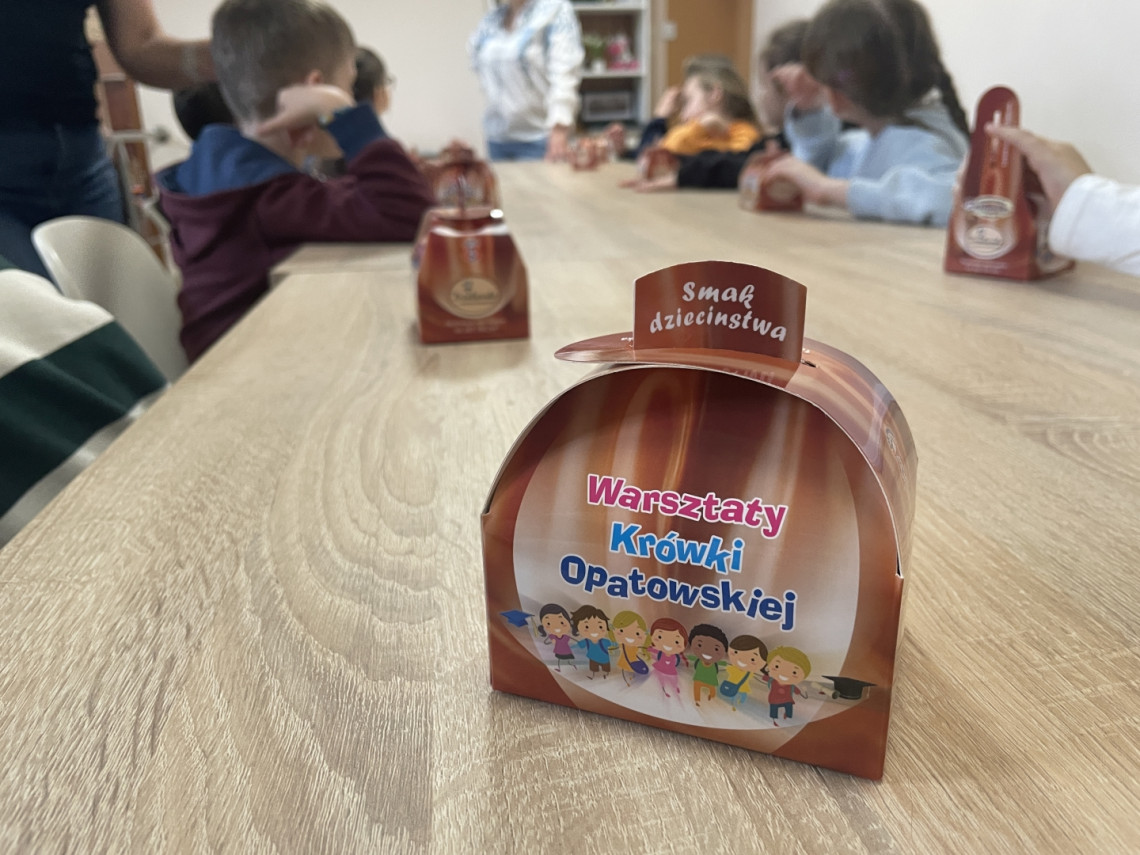 W kawiarence „Krówkarenka” poznały dalsze tajemnice produkcji, a także opanowały sztukę ręcznego zawijania krówek we własne etykietki. Własnoręcznie zawinięte krówki zapakowały w pamiątkowy kuferek i zabrały do domu. Na pamiątkę pobytu w Opatowie w kawiarni dzieci zakupiły Krówki Opatowskie z logo Krówkarenki, a także Krówki w firmowych i okolicznościowych opakowaniach. Czas upłynął wszystkim słodko.