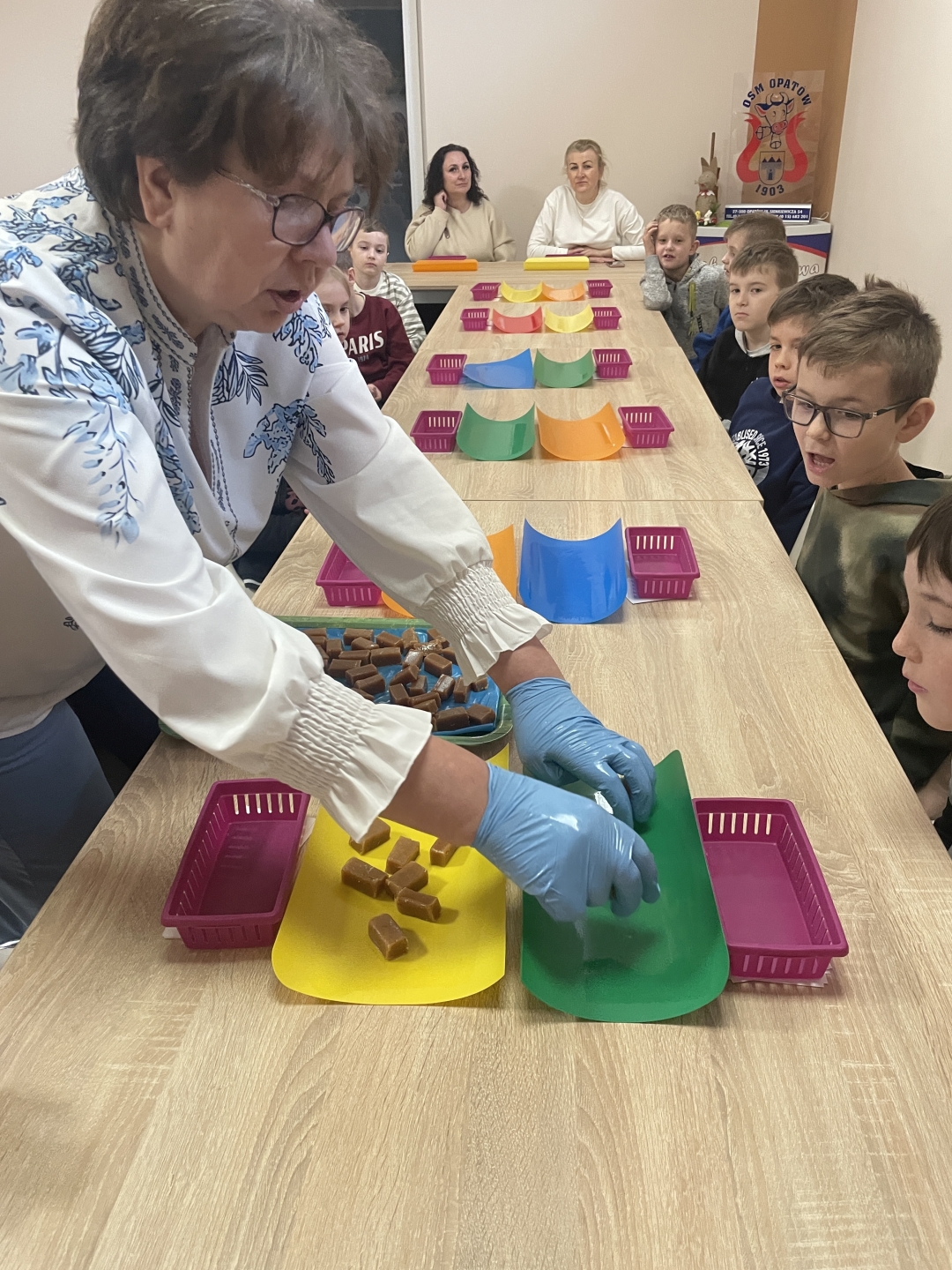 24 Marca uczniowie klas IIa i IIb, uczestniczyli w szkolnej wycieczce do Zakładu cukierniczego OSM w Opatowie. W czasie wycieczki dzieci zgłębiały tajniki wiedzy na temat produkcji Krówki Opatowskiej. Dowiedzieliśmy się także tego, jakie składniki potrzebne są do powstania cukierków i jak przebiega proces produkcji.