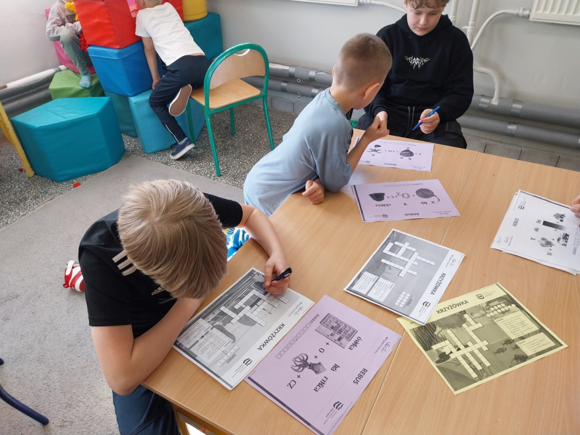 W ramach programu uczniowie z klasy VI b uczęszczający na świetlicę szkolną zapoznali się z treścią gazetki szkolnej z hasłem „Woda źródłem życia” oraz dnia 21 marca  2025r. odbył się na świetlicy szkolnej turniej wiedzy o wodzie, w którym rywalizowano o miano znawców obszernego tematu o wodzie rozwiązując rebusy wodne oraz krzyżówki.