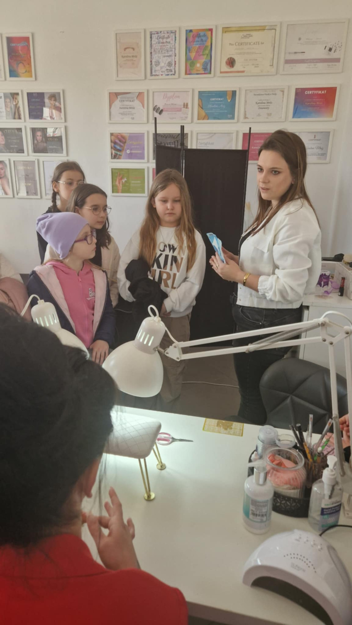 W ramach preorientacji zawodowej uczniowie klasy III z wychowawcą Ewa Kruszewska w dniu 28.03.2025 odwiedzili zakład kosmetyczny "AMBASADA PIĘKNA".
