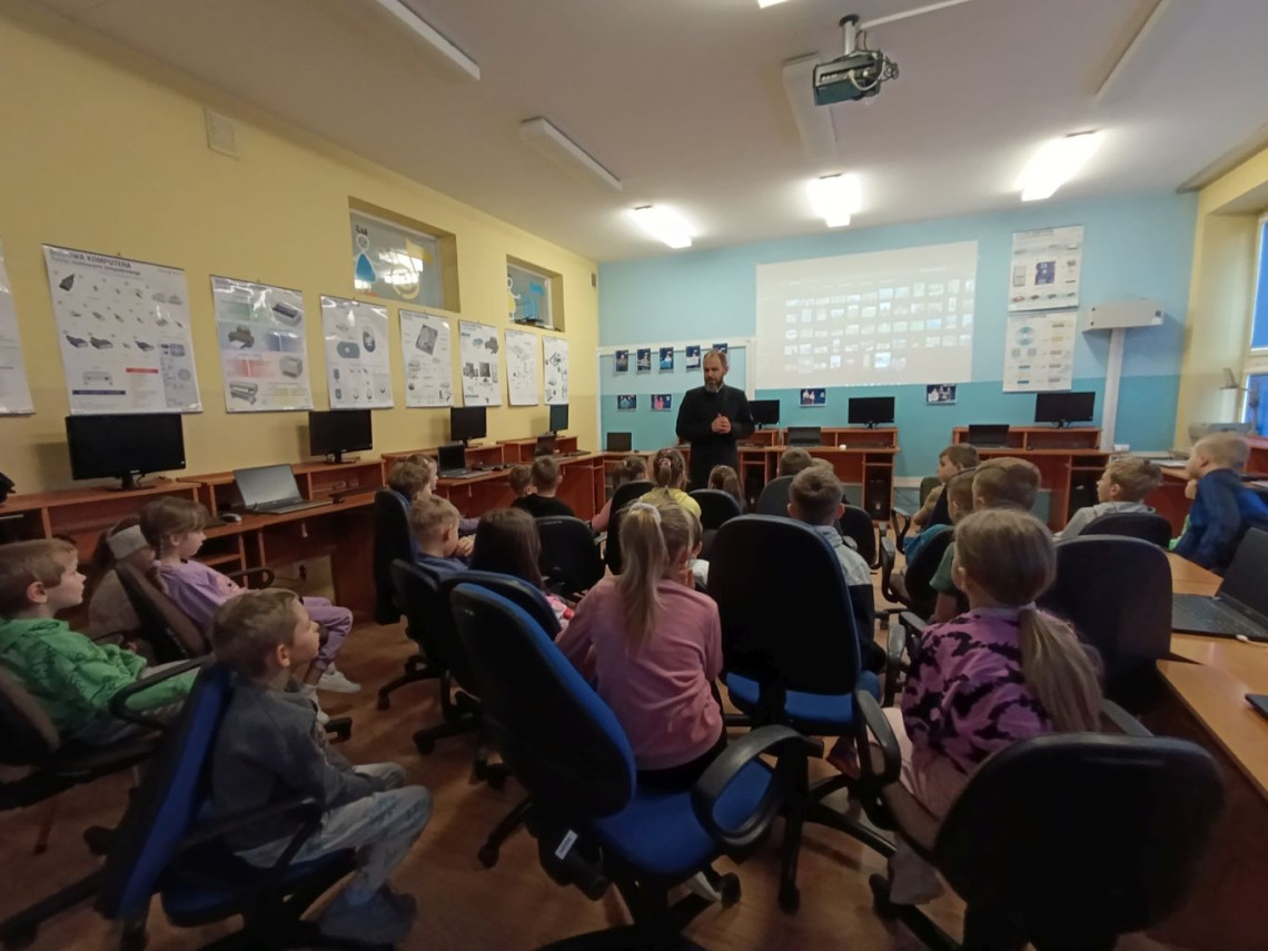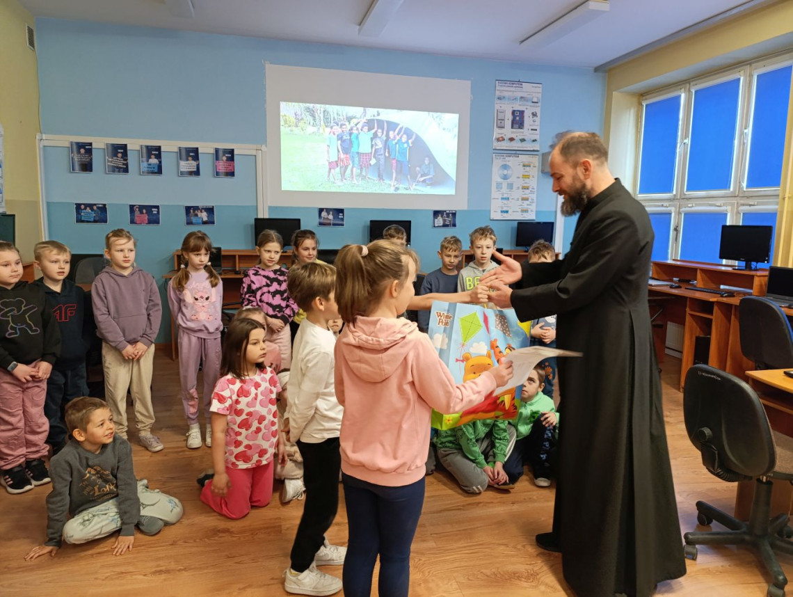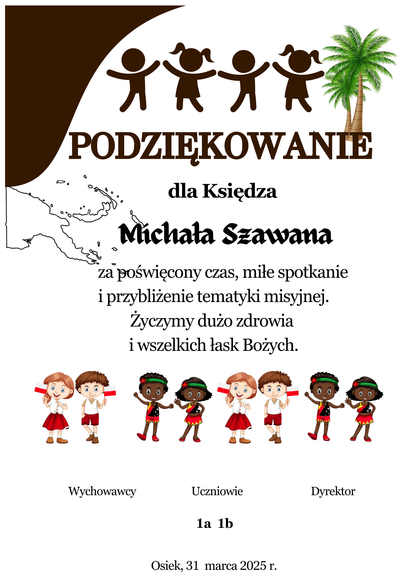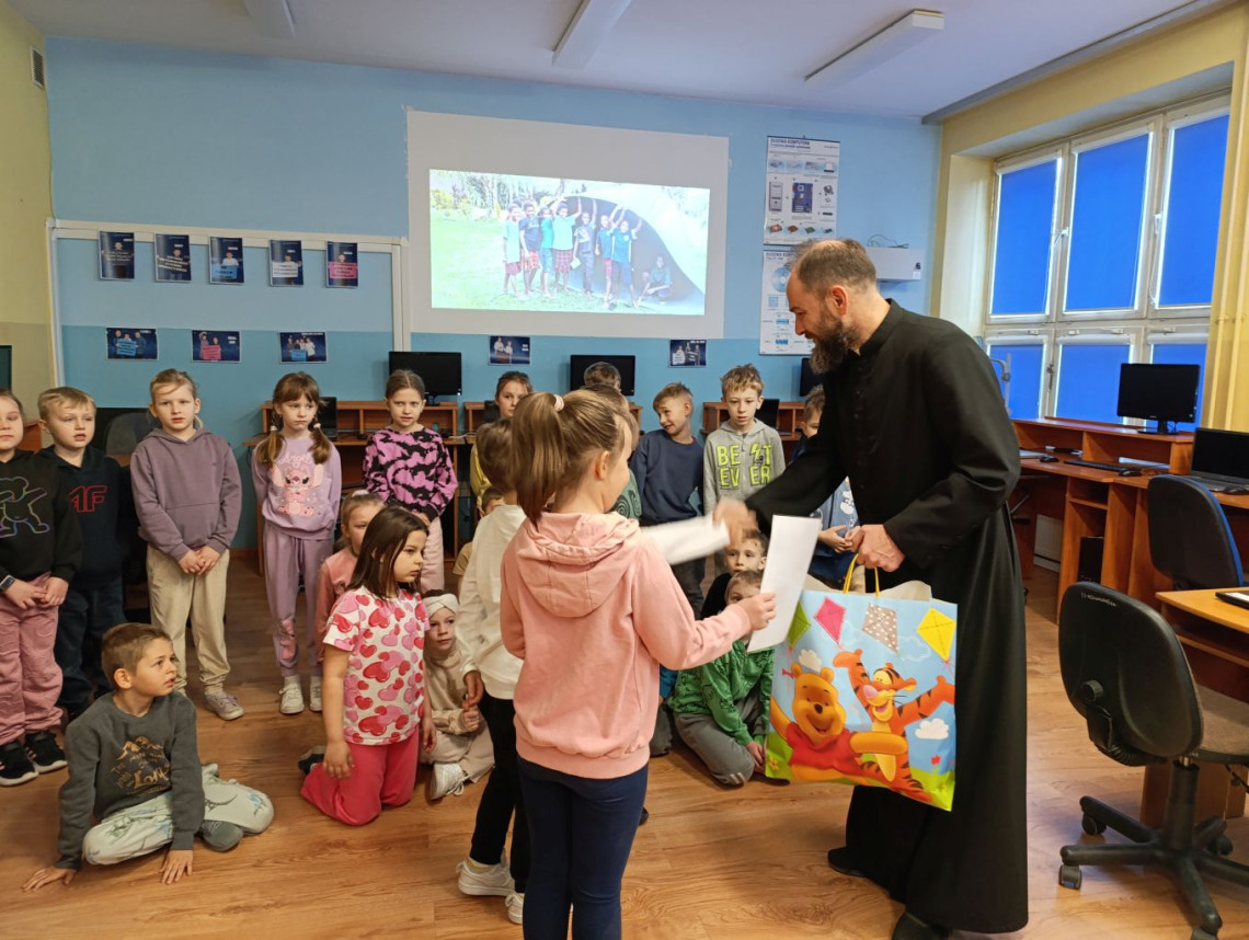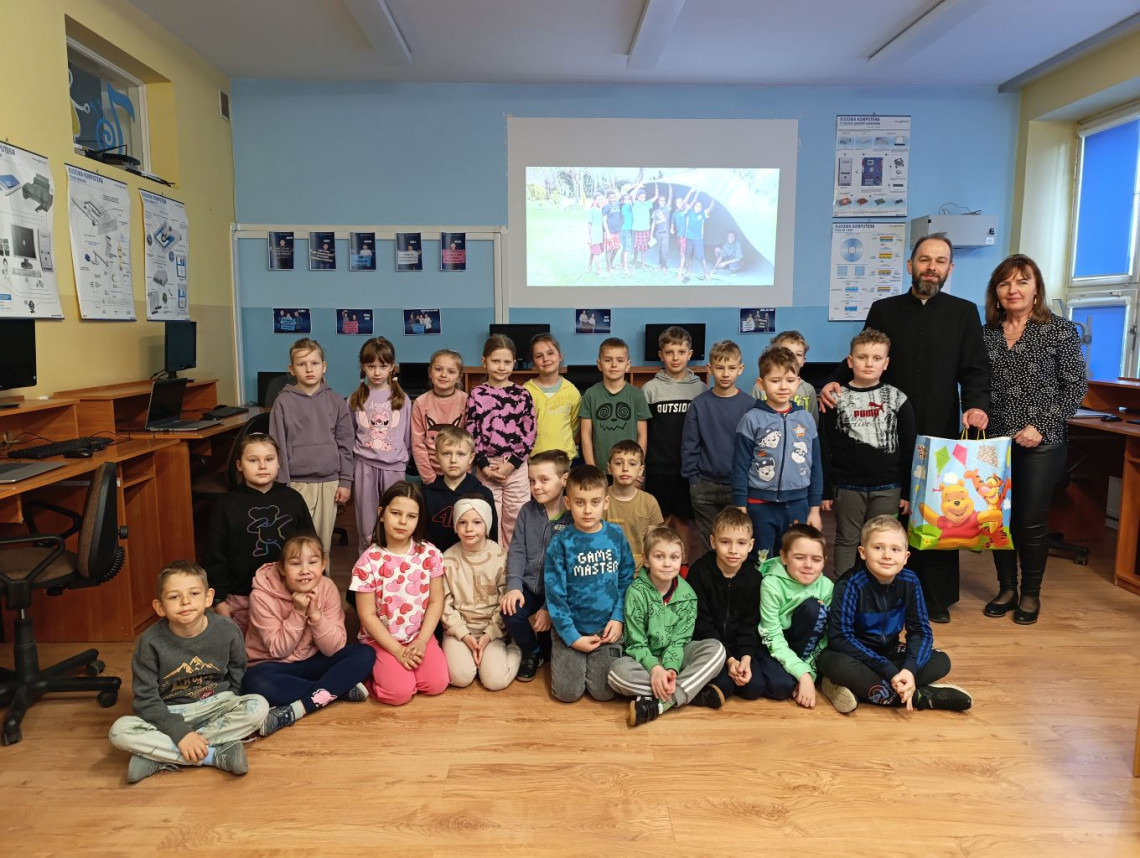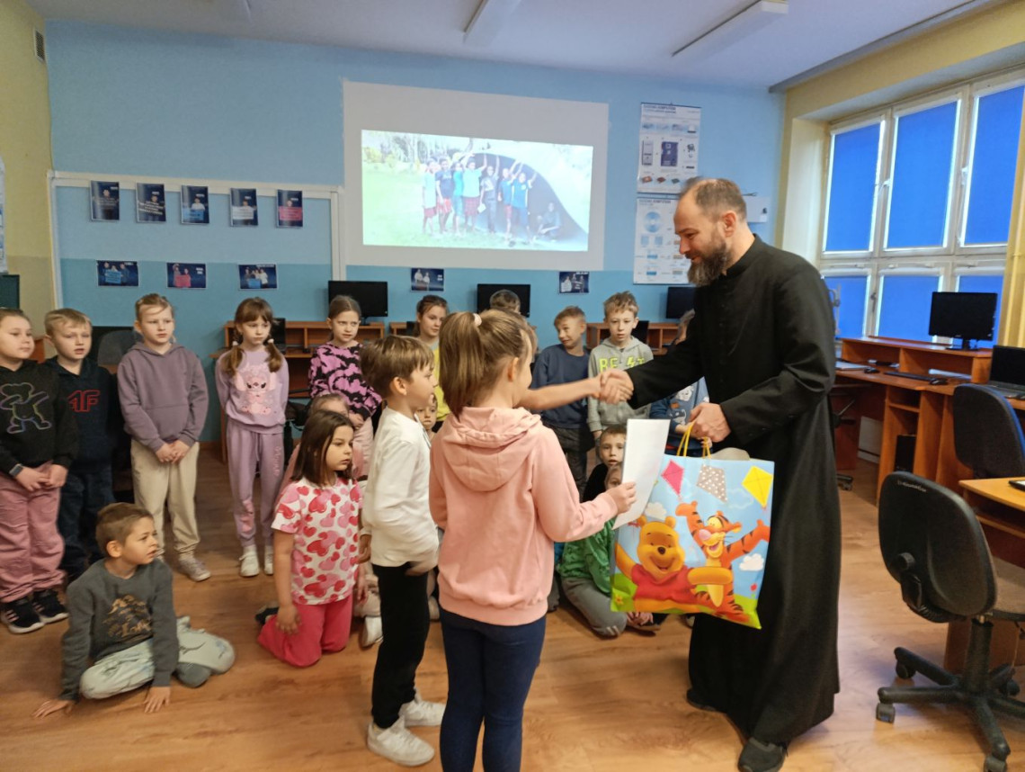 W dniu 31 marca 2025 r. uczniowie klas pierwszych w ramach realizacji innowacji pedagogicznej zapoznali się z pracą misjonarza. Właśnie w tym dniu swoją obecnością zaszczycił nas ks. Michał Szawan, który zapoznał dzieci ze swoją pracą misyjną w odległym kraju, a właściwie w Papui Nowej Gwinei. Przygotował prezentację w postaci krótkich filmików i zdjęć. Tym samym przybliżył nam i przedstawił życie mieszkańców nad rzeką Sepik oraz warunki w jakich żyją ludzie w innej części Świata. Spotkanie przebiegało w bardzo miłej, pełnej ciepła i serdeczności atmosferze. Nasi uczniowie byli pełni podziwu w jak trudnych warunkach żyją ich rówieśnicy wraz z rodzinami i jak ciężka jest praca misjonarza, gdyż misjonarz to nie tylko powołanie, ale i praca wymagająca często wielu wyrzeczeń i poświęcenia się drugiemu człowiekowi.