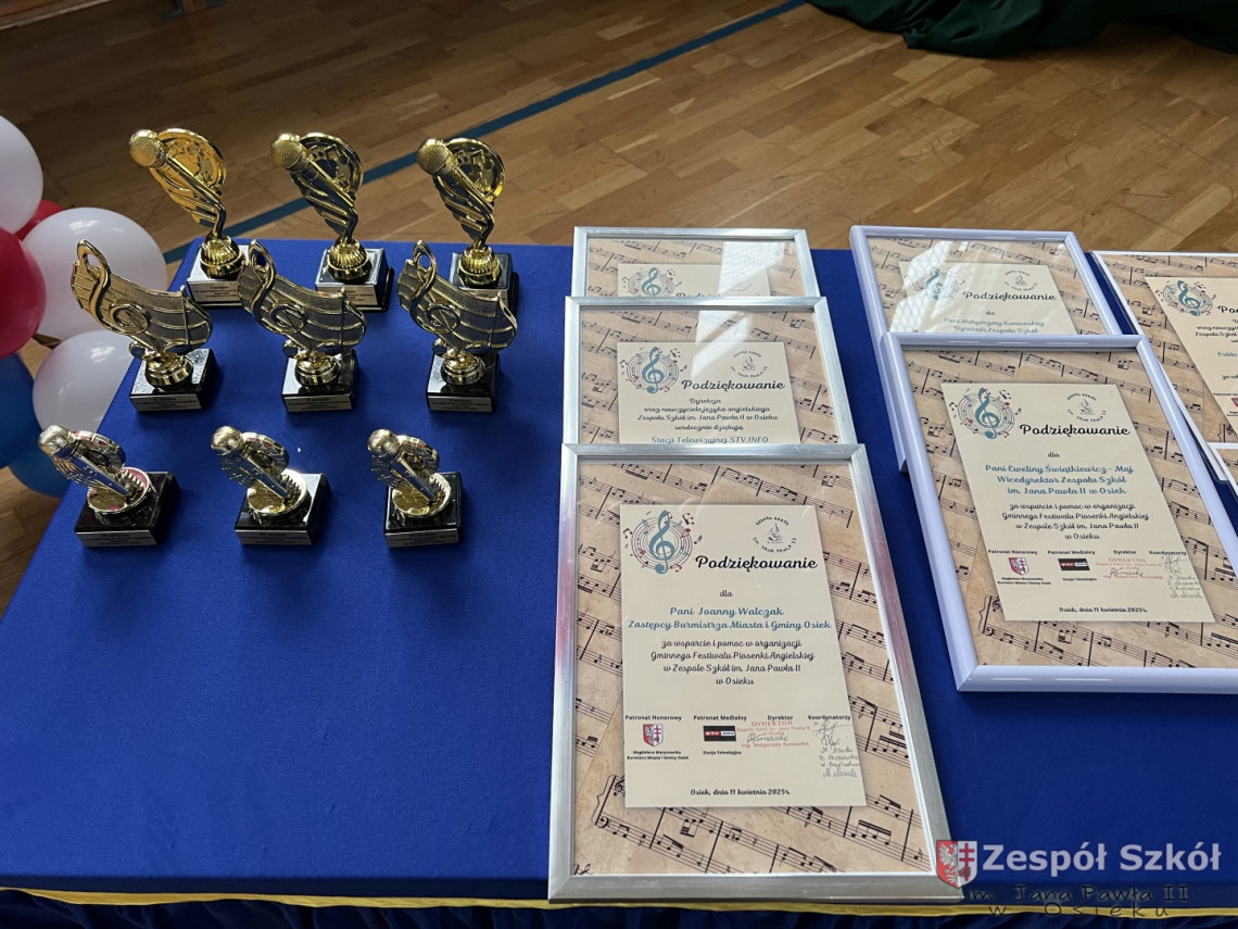 Gminny Festiwal Piosenki Angielskiej odbywał się pod patronatem honorowym Burmistrz Miasta i Gminy Osiek Magdaleny Marynowskiej i patronatem medialnym Stacji Telewizyjnej STV.Info. Serdecznie dziękujemy Zastępcy Burmistrza Miasta i Gminy Osiek Joannie Walczak za obecność oraz słodki upominek dla wszystkich uczestników konkursu.
