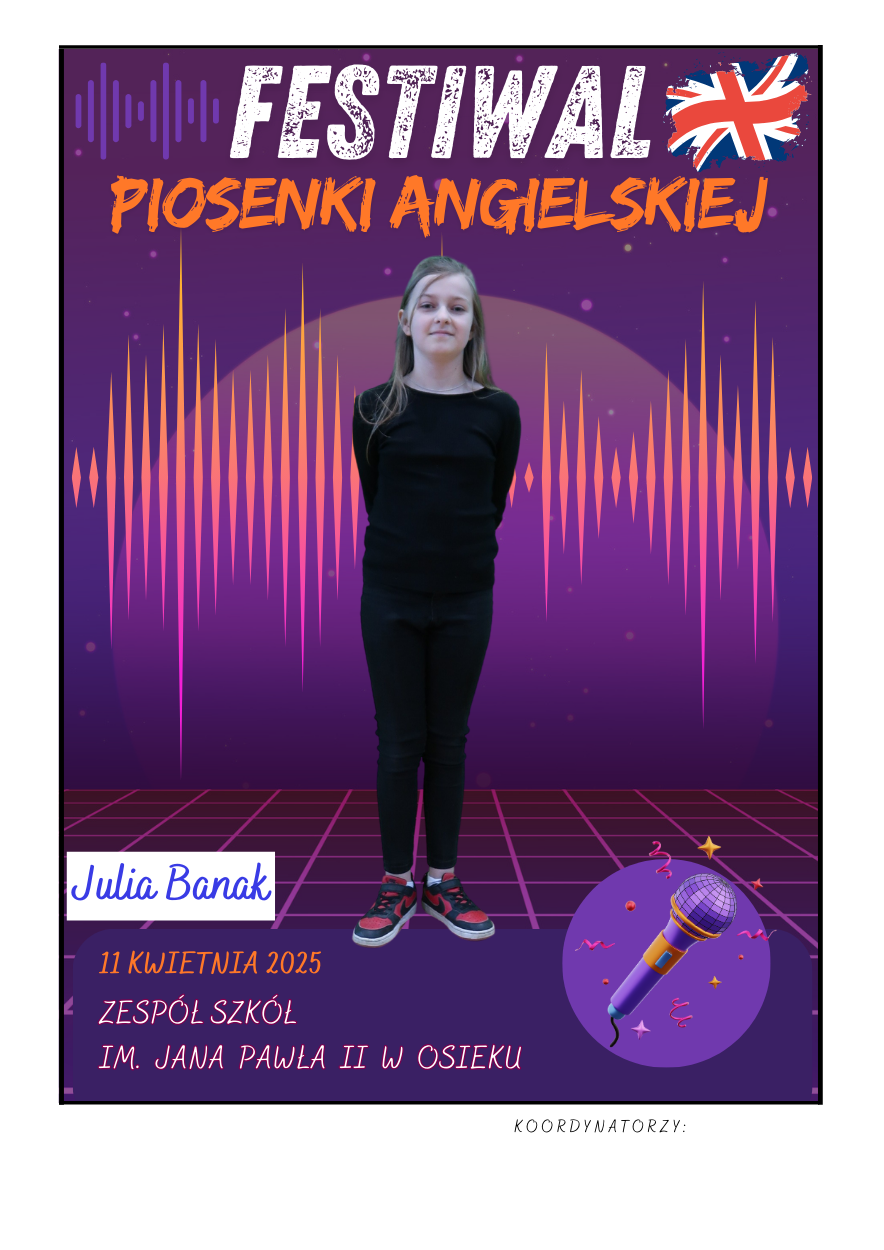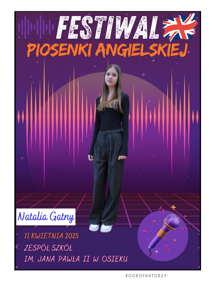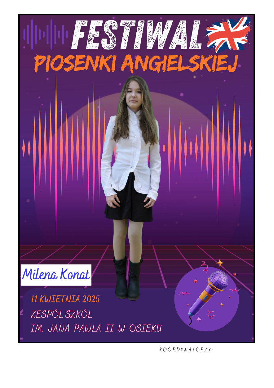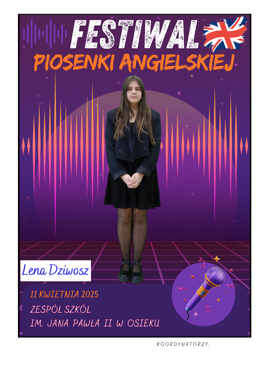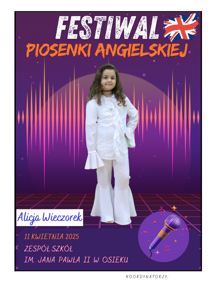 Na scenie zaprezentowali się soliści ze szkół podstawowych z gminy Osiek, którzy wykonali znane utwory w języku angielskim – od klasycznych ballad, przez energetyczne hity, aż po współczesne przeboje. Uczniowie zaskoczyli wszystkich nie tylko swoimi wokalnymi umiejętnościami, ale też odwagą, pomysłowością i sceniczną charyzmą. Występy były oceniane przez jury, które zwracało uwagę m.in. na poprawność językową, interpretację utworu oraz ogólny wyraz artystyczny.