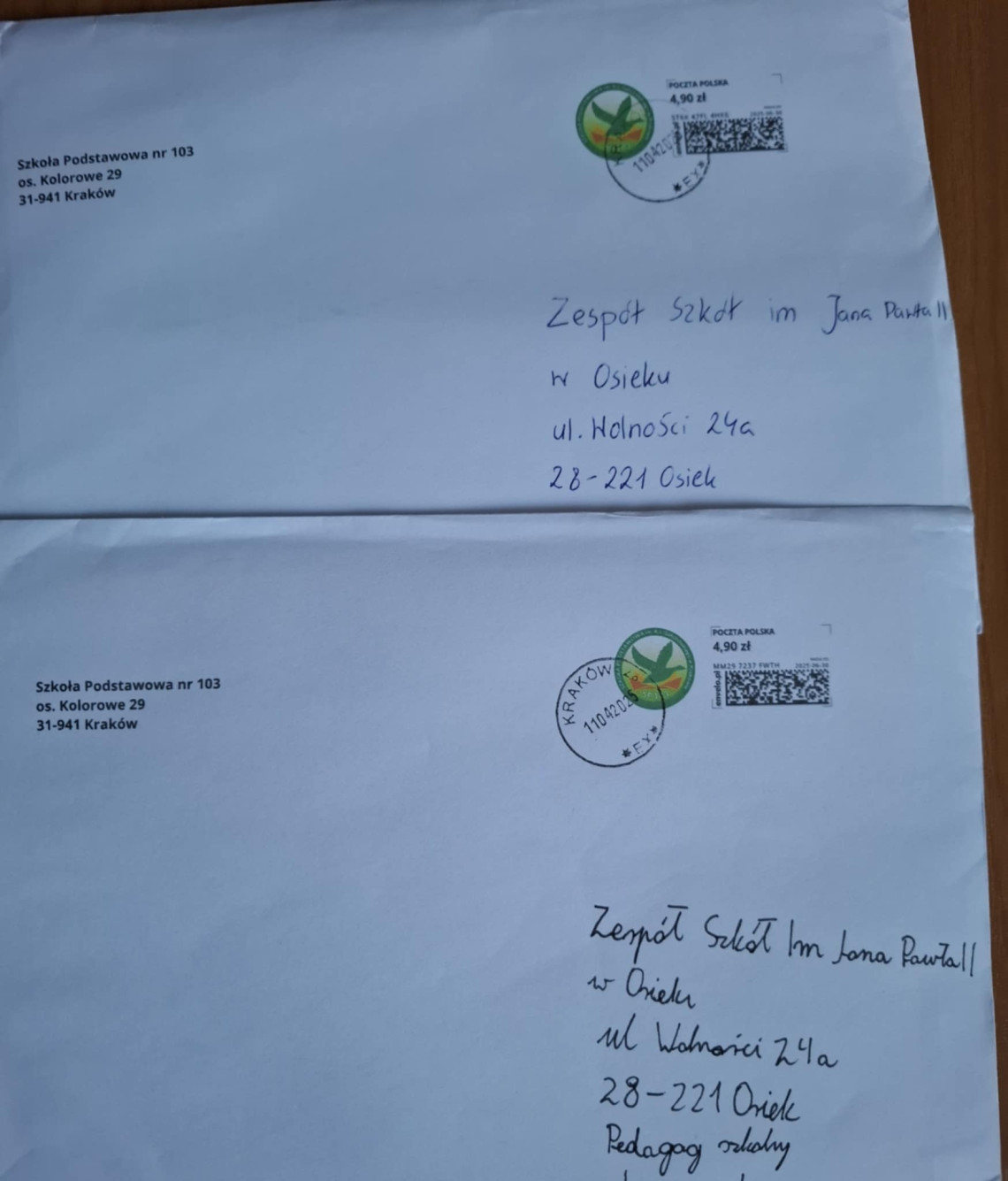 W Zespole Szkół im. Jana Pawła II w Osieku, jak co roku została przeprowadzona akcja „ Kartka Świąteczna” zorganizowana przez Szkolny Klub Wolontariuszy. Wykonane przez uczniów i wolontariuszy kartki zostały przekazane wyznaczonym rodzinom oraz przesłane zaprzyjaźnionej Szkole Podstawowej nr 103 w Krakowie, od której również otrzymaliśmy życzenia wielkanocne.