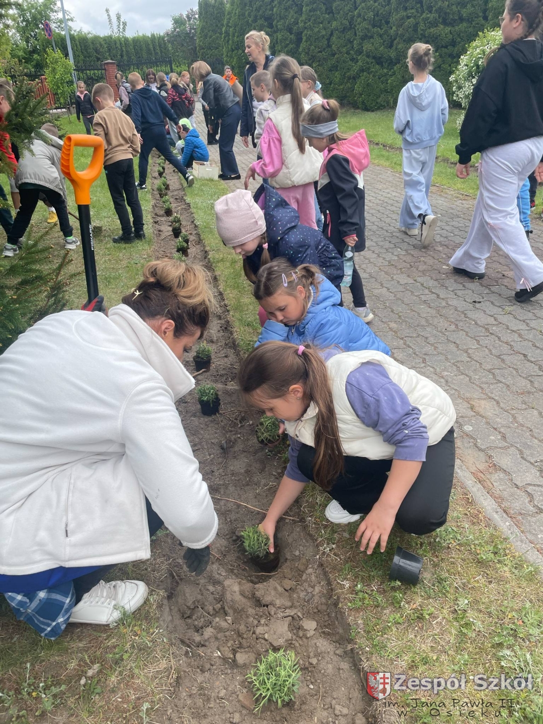 Dziękujemy wszystkim uczestnikom za zaangażowanie i wspólną pracę. Teraz pozostaje czekać, aż lawenda pięknie zakwitnie, dodając uroku szkolnym rabatom i przypominając nam o wartości dbania o naturę każdego dnia.
