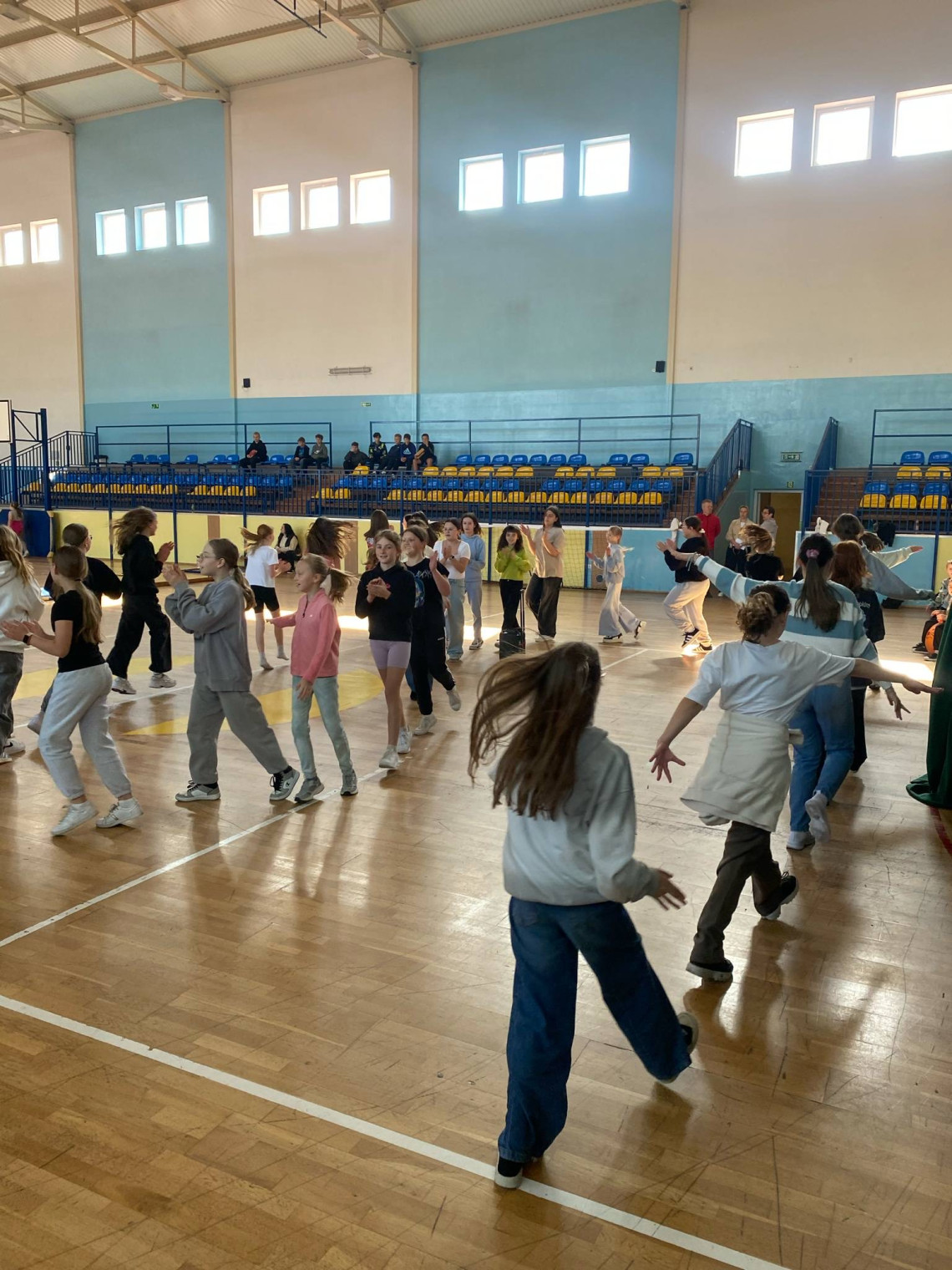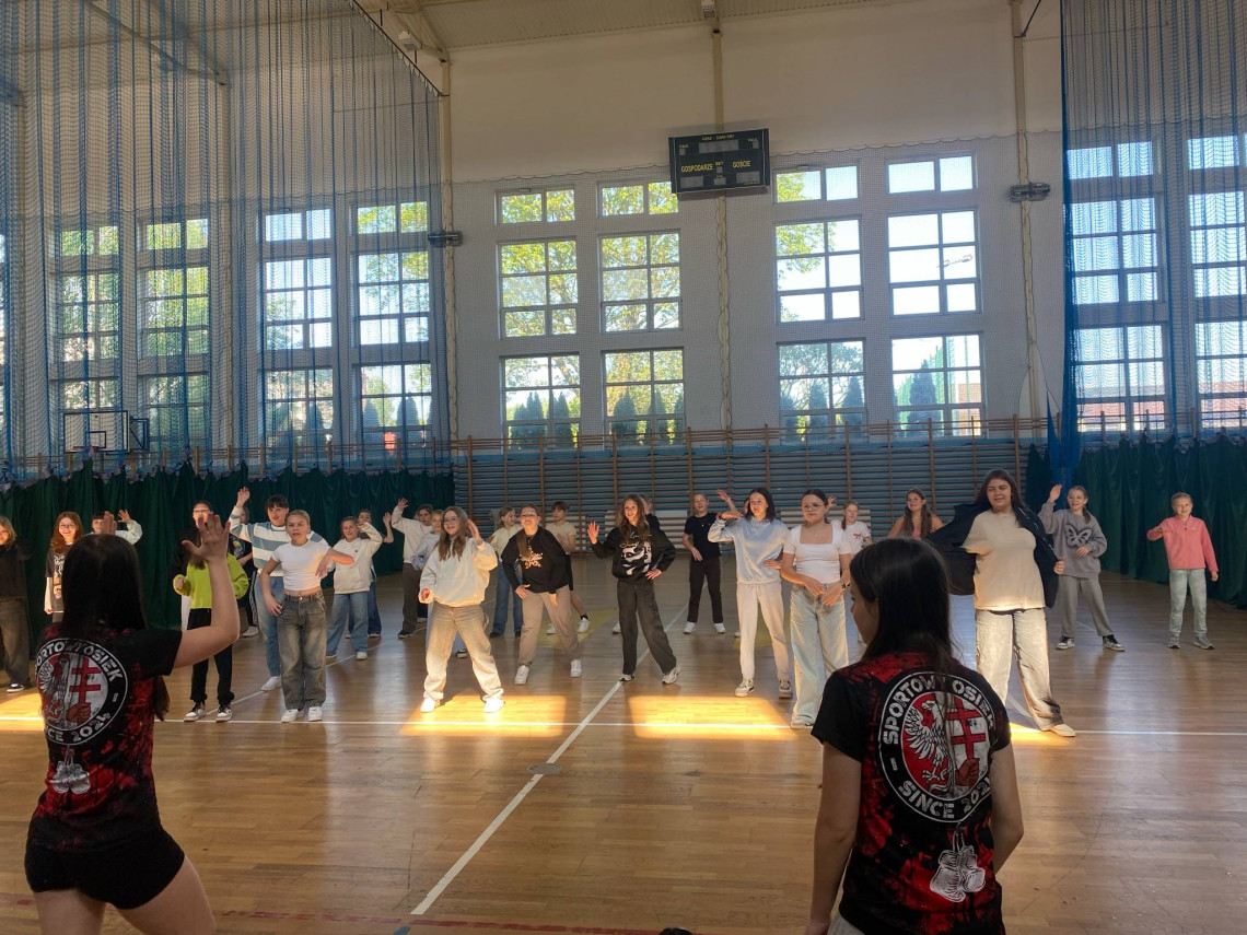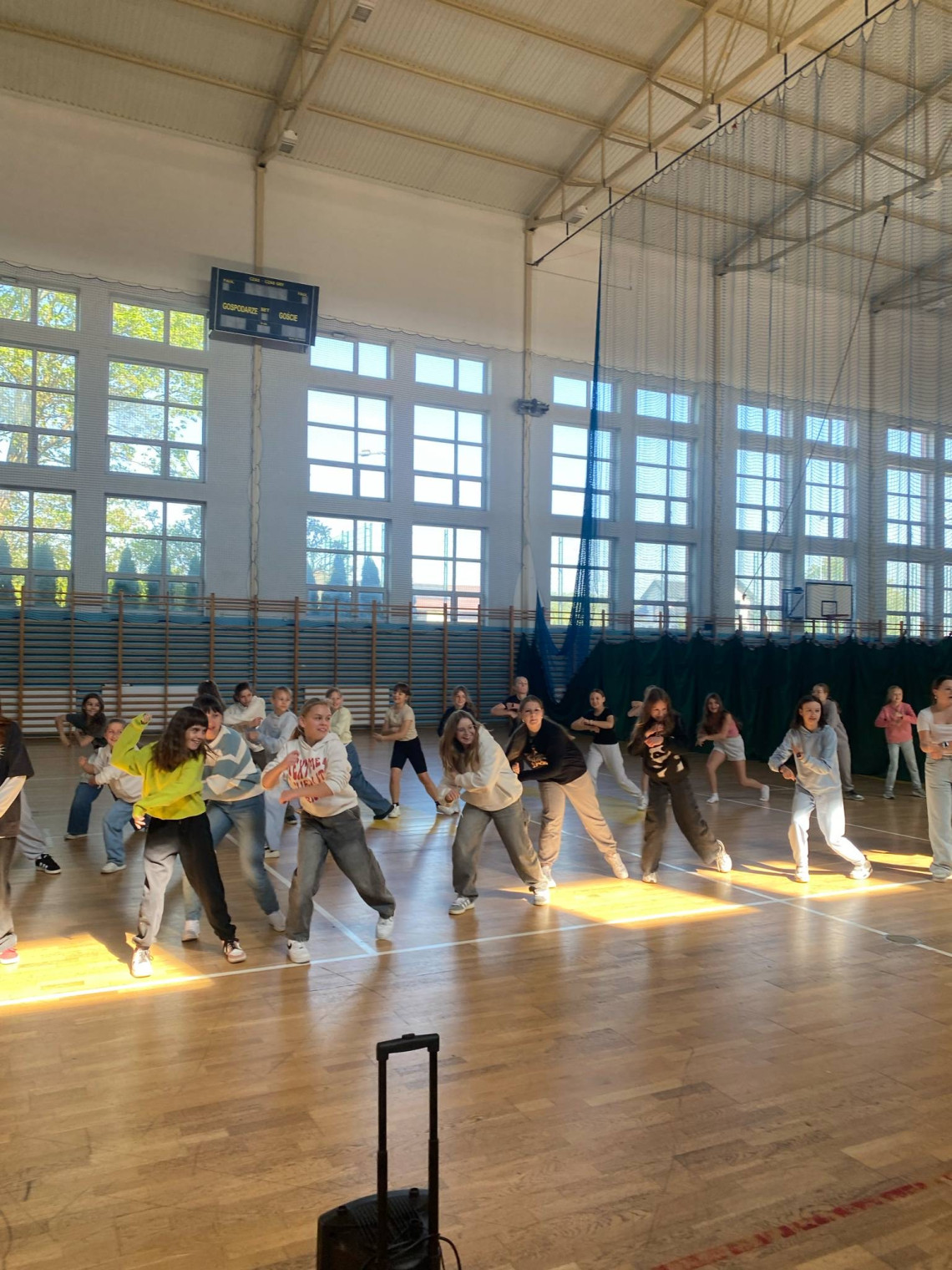 Wydarzenie odbyło się w szkolnej hali sportowej, gdzie uczniowie mogli wspólnie i aktywnie spędzić czas, doskonaląc swoją sprawność fizyczną. Energia i zaangażowanie prowadzących sprawiły, że zarówno młodsi, jak i starsi uczniowie świetnie się bawili, ucząc się jednocześnie, jak ważna jest regularna aktywność fizyczna dla zdrowia.