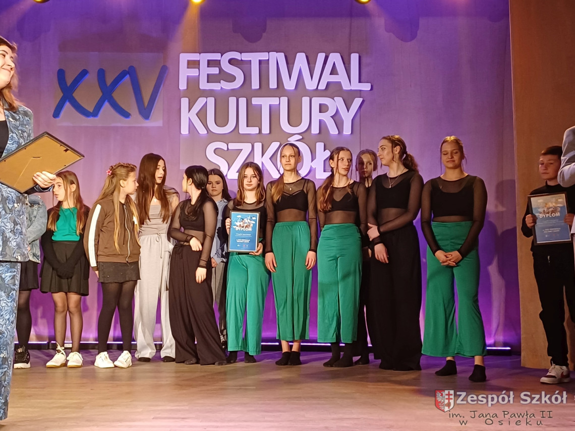 i taneczne. Zespół Szkół im. Jana Pawła II w Osieku reprezentowały utalentowane uczennice kl. VII i VIII w dwóch układach tanecznych w kategorii taniec współczesny. Ich występ był efektem wielu godzin ciężkiej pracy i zaangażowania, co było widoczne w ich precyzyjnych ruchach i wyrazistej ekspresji. Dziewczęta z dumą reprezentowały naszą szkołę, a ich zaangażowanie i radość z tańca były zaraźliwe dla publiczności. W czerwcu planowane jest podsumowanie Festiwalu, będzie to świetna okazja, by podkreślić, jak festiwal zbliżył ludzi i otworzył ich na różnorodność.