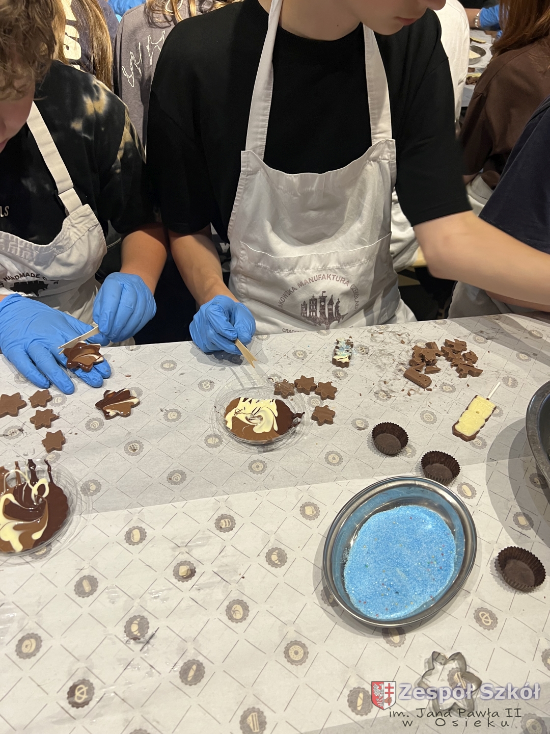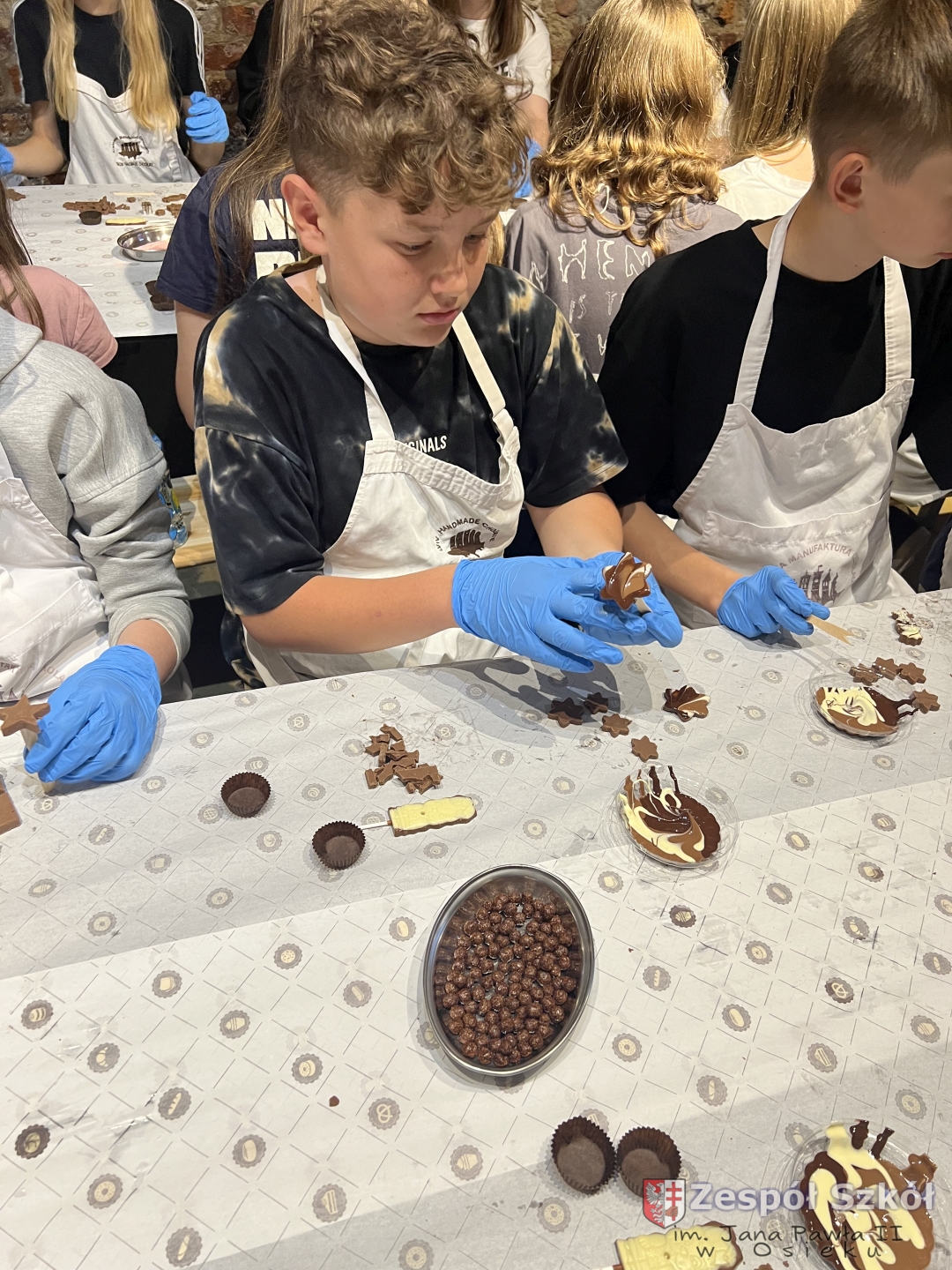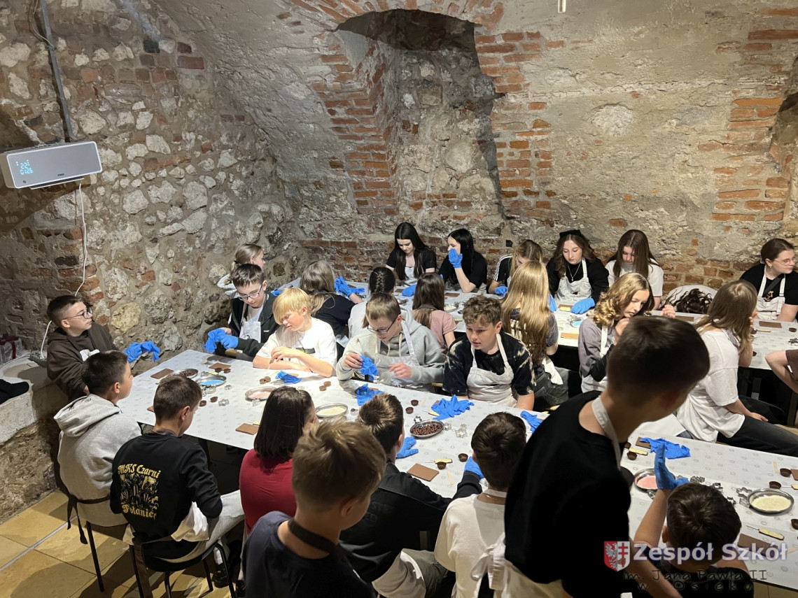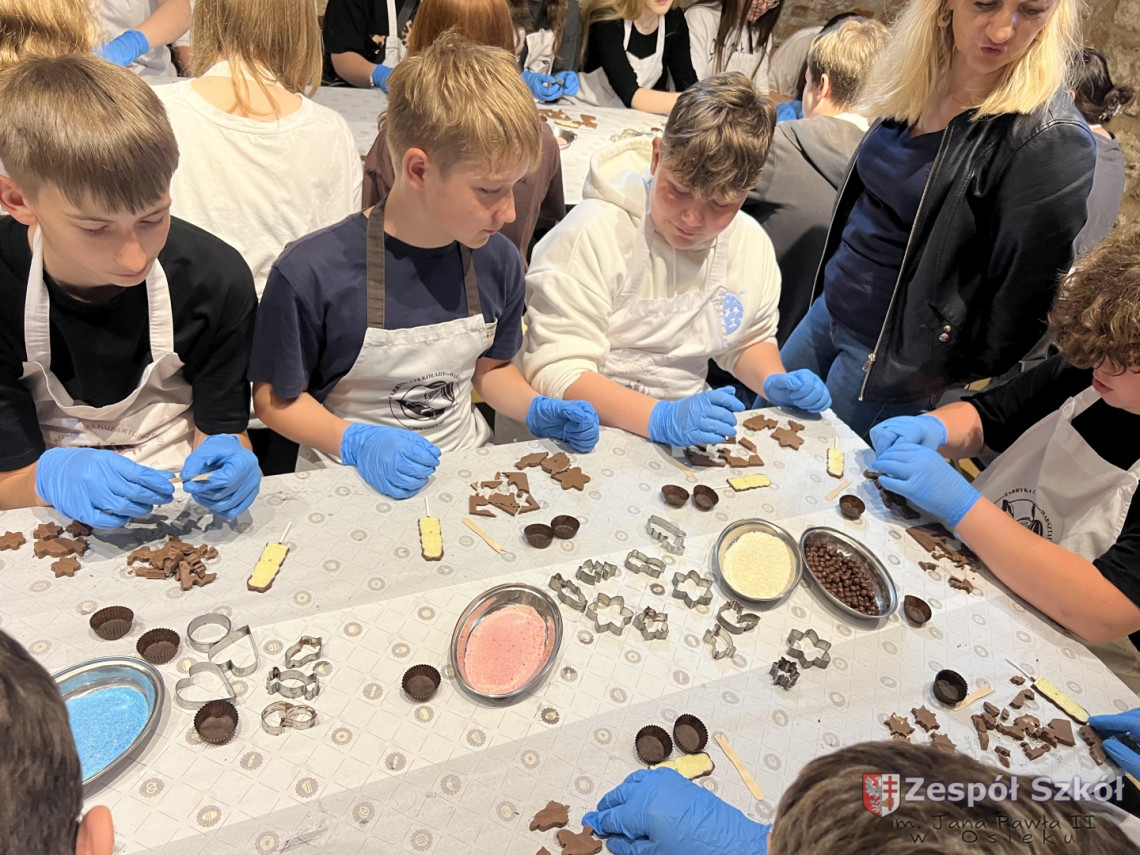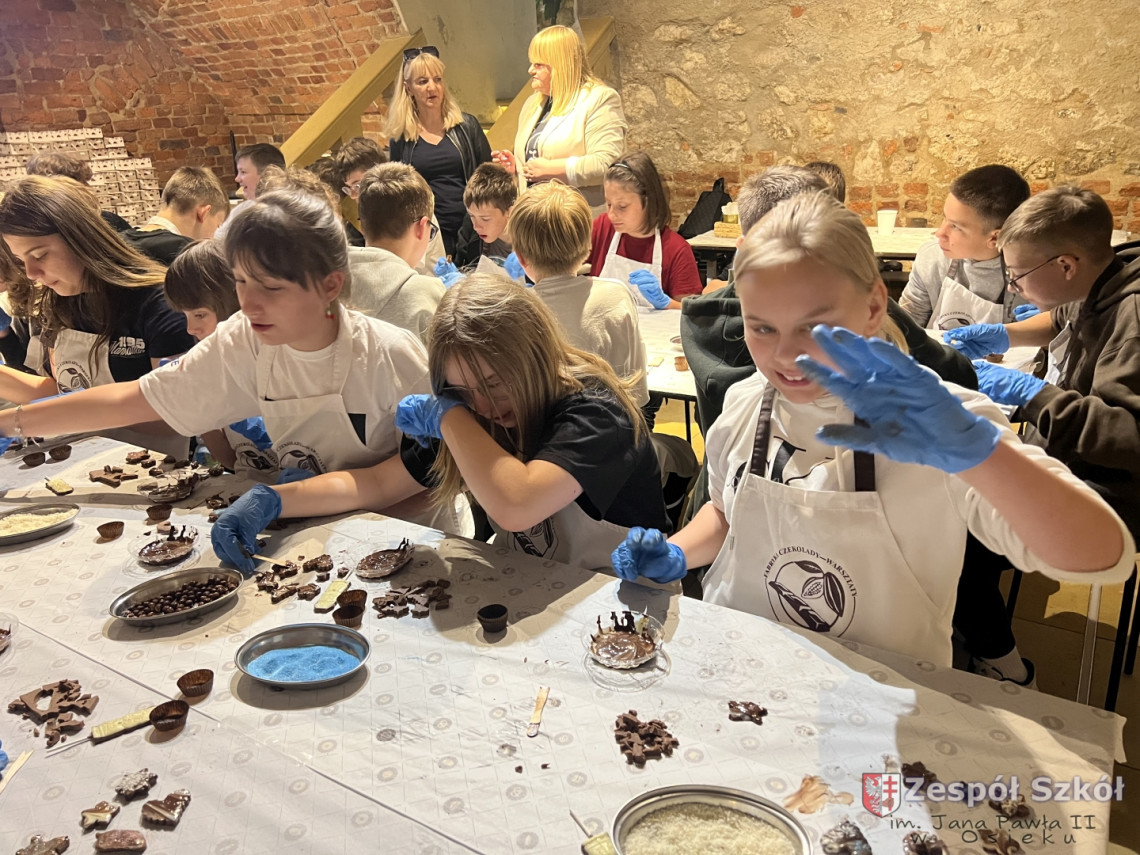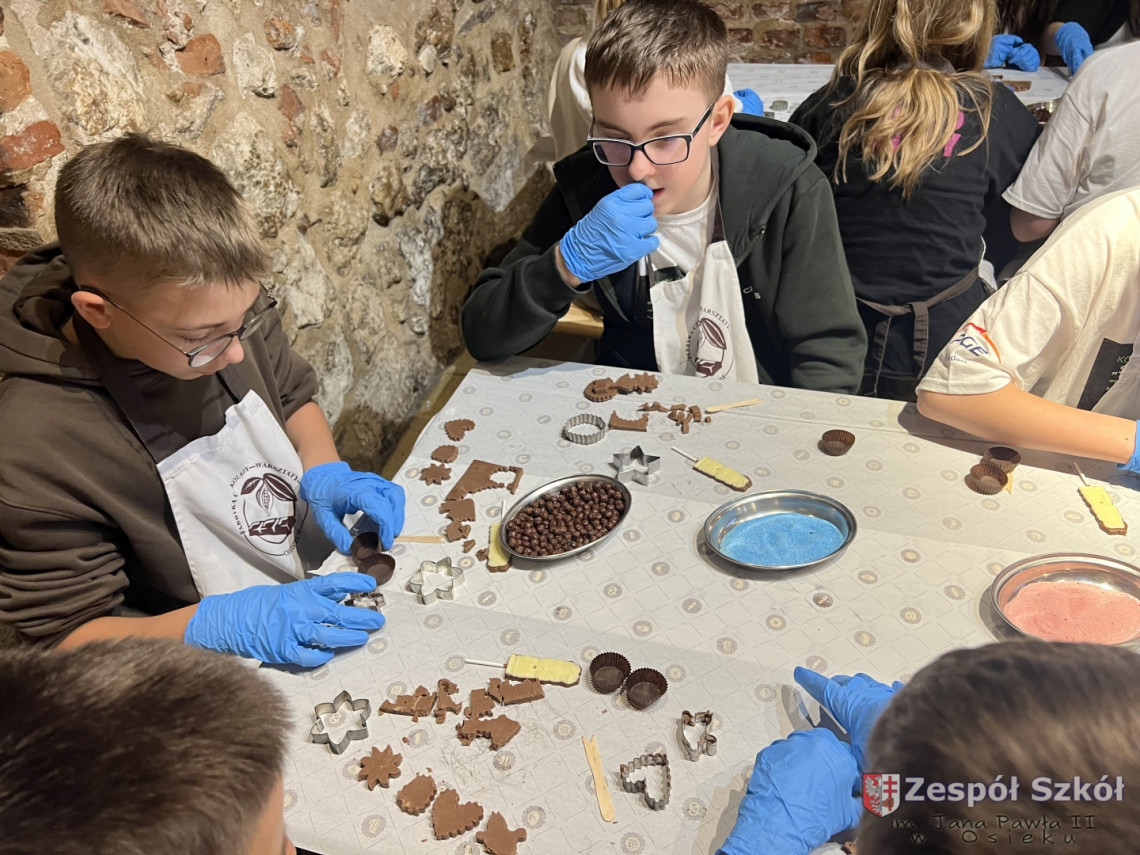 Kolejną atrakcją były warsztaty czekoladowe, podczas których uczniowie mieli okazję poznać proces powstawania czekolady, samodzielnie stworzyć własne słodkie kompozycje oraz – co najważniejsze – skosztować efektów swojej pracy!