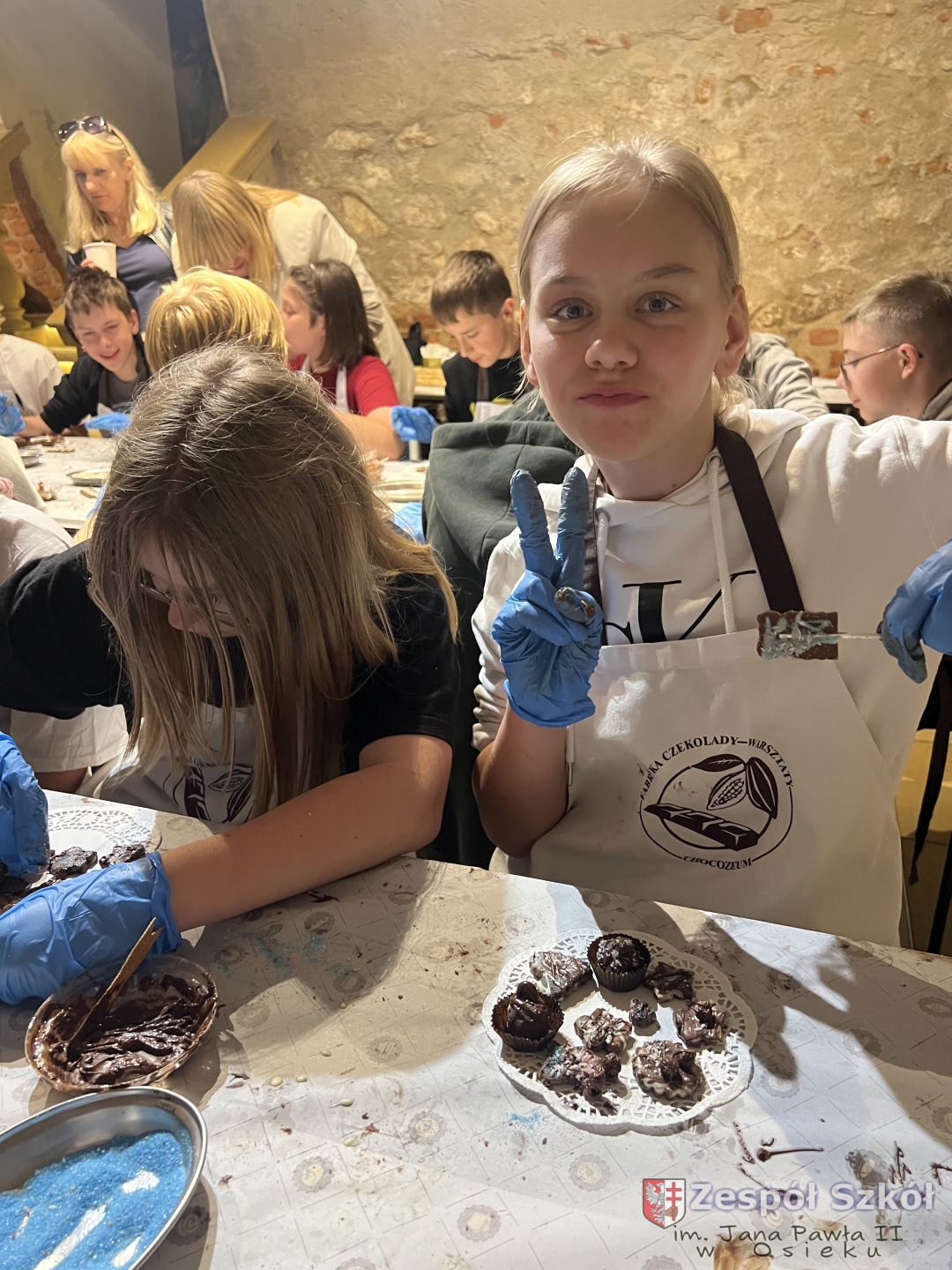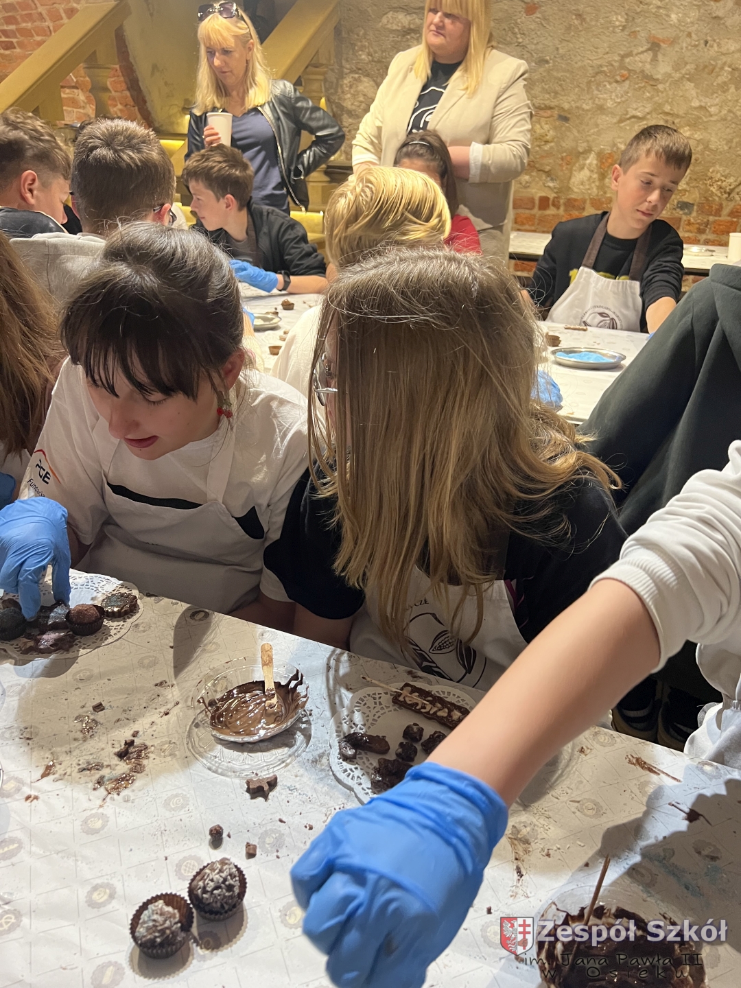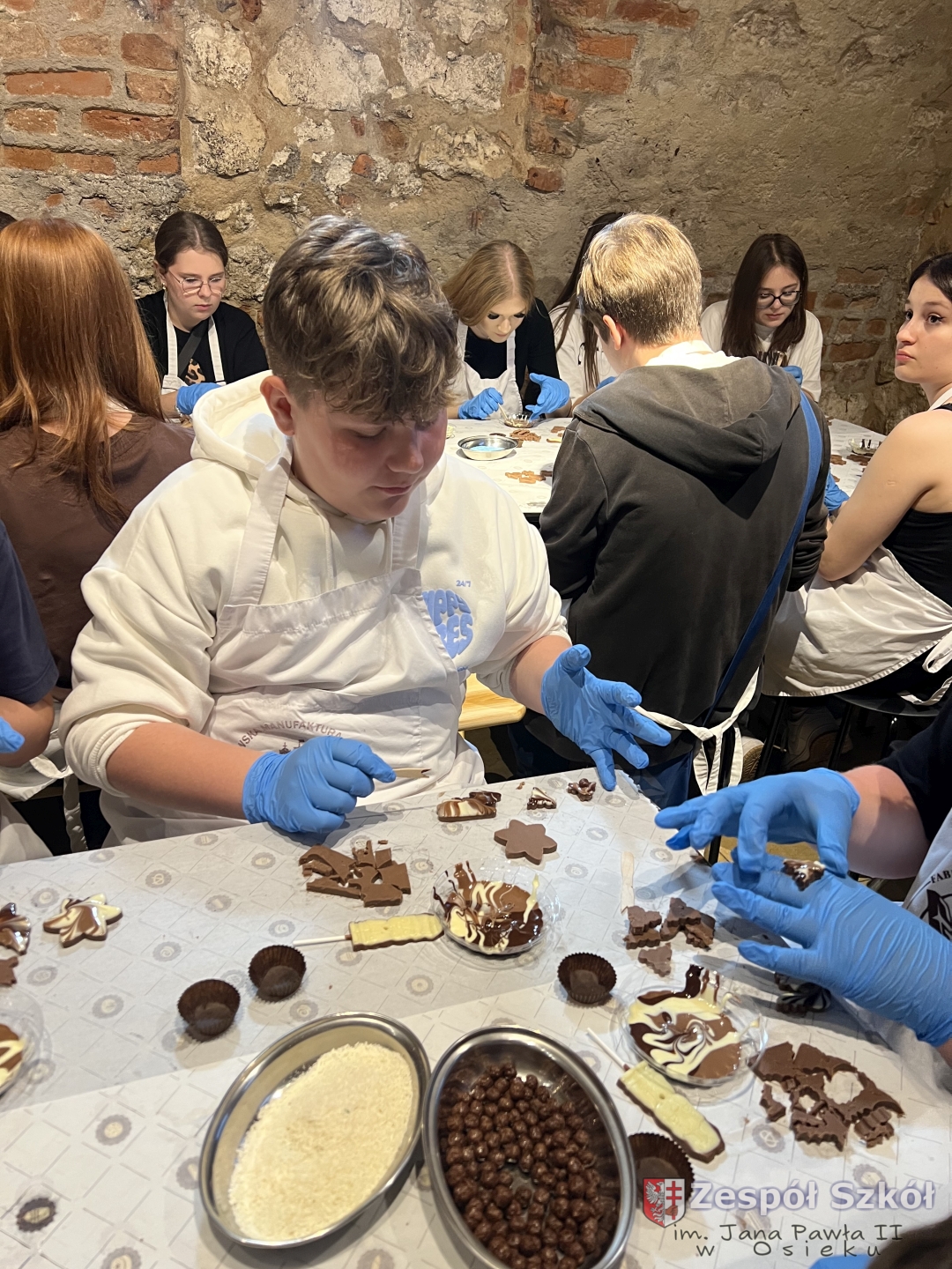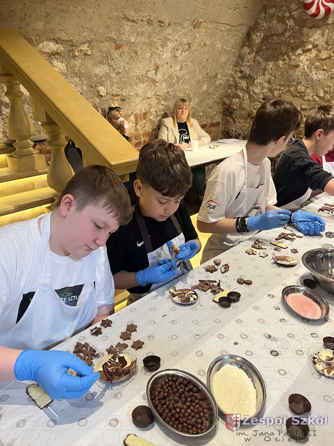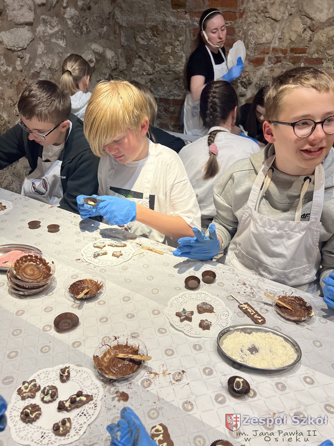 Kolejną atrakcją były warsztaty czekoladowe, podczas których uczniowie mieli okazję poznać proces powstawania czekolady, samodzielnie stworzyć własne słodkie kompozycje oraz – co najważniejsze – skosztować efektów swojej pracy!