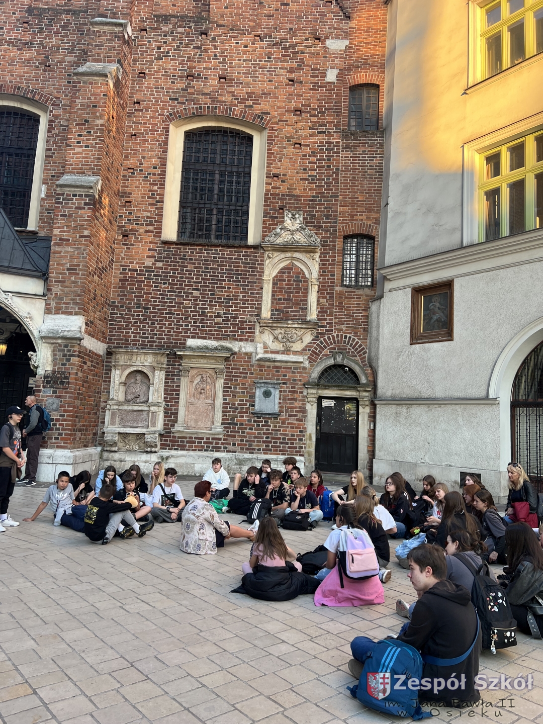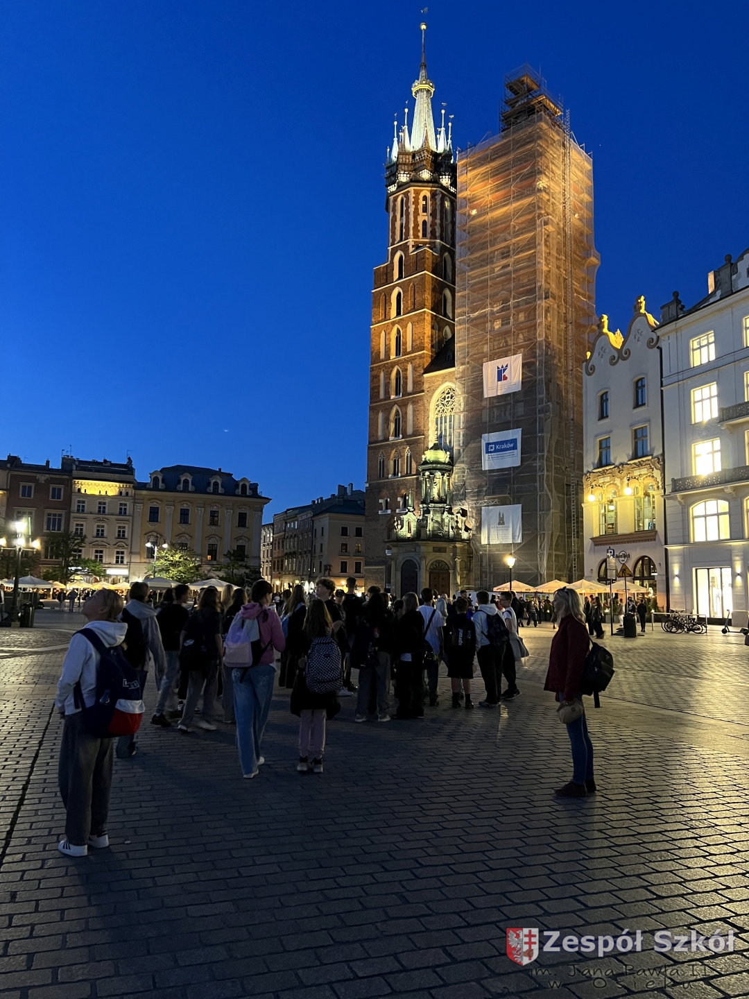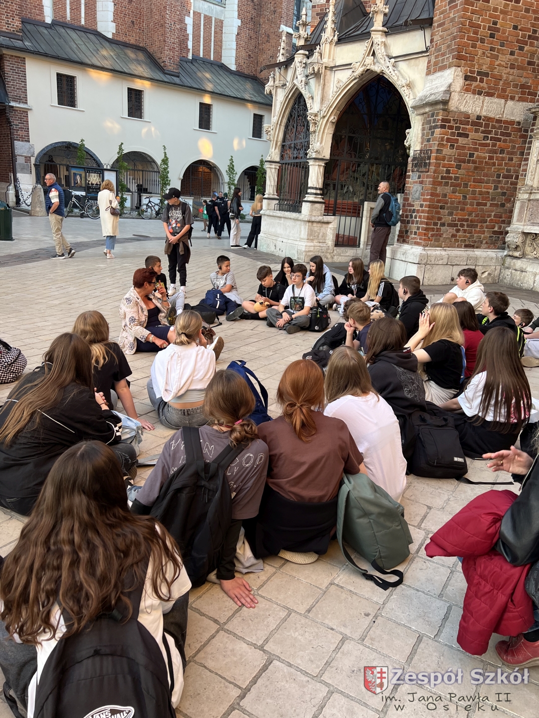 z najważniejszymi momentami w dziejach Krakowa. Spacer zakończył się na Rynku Głównym – jednym z największych średniowiecznych placów Europy. Uczniowie zatrzymali się przy Kościele Mariackim, Sukiennicach i Wieży Ratuszowej, słuchając ciekawostek