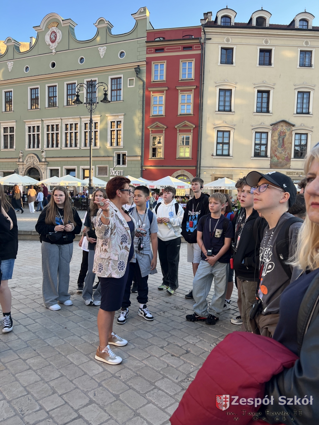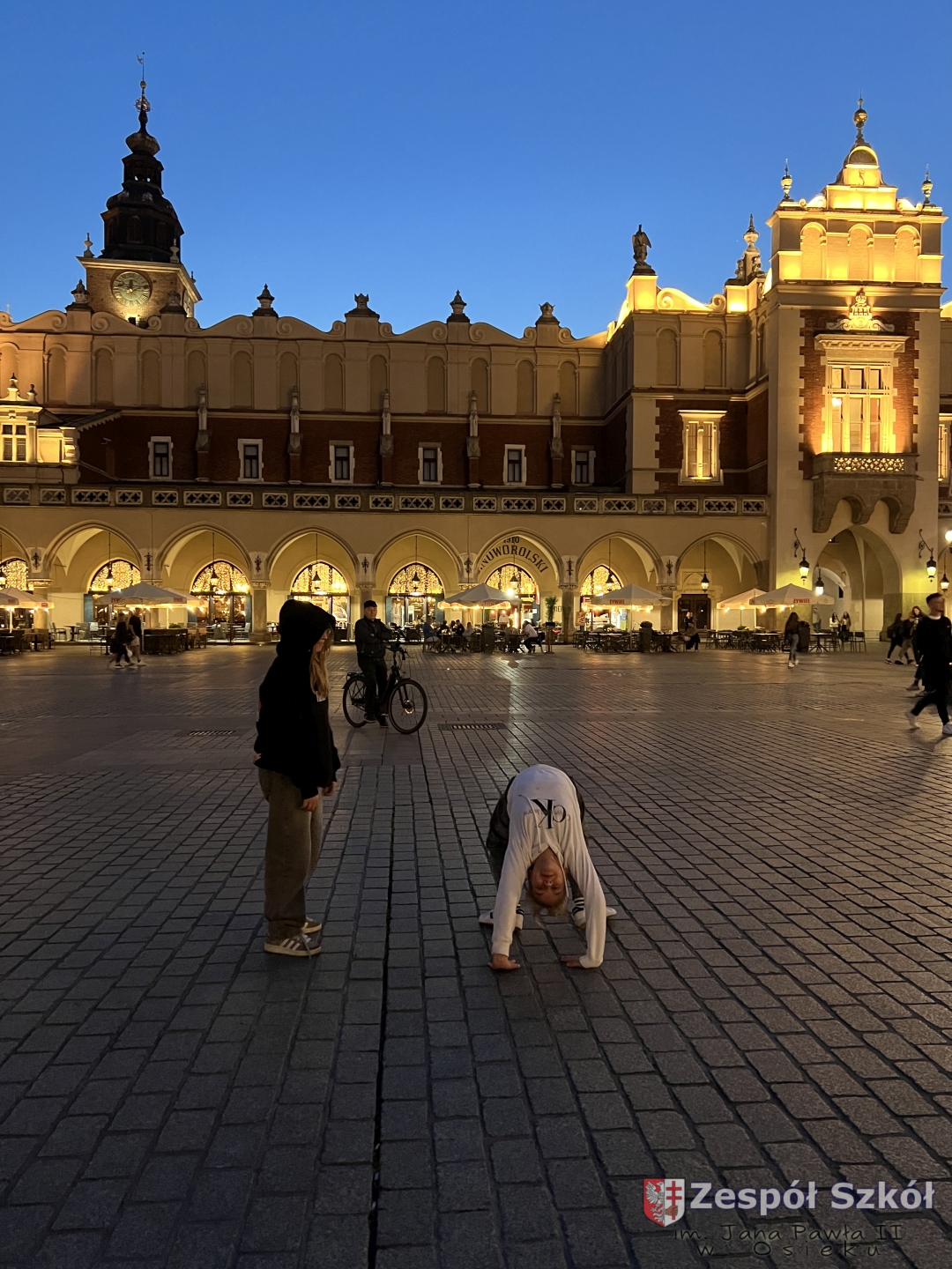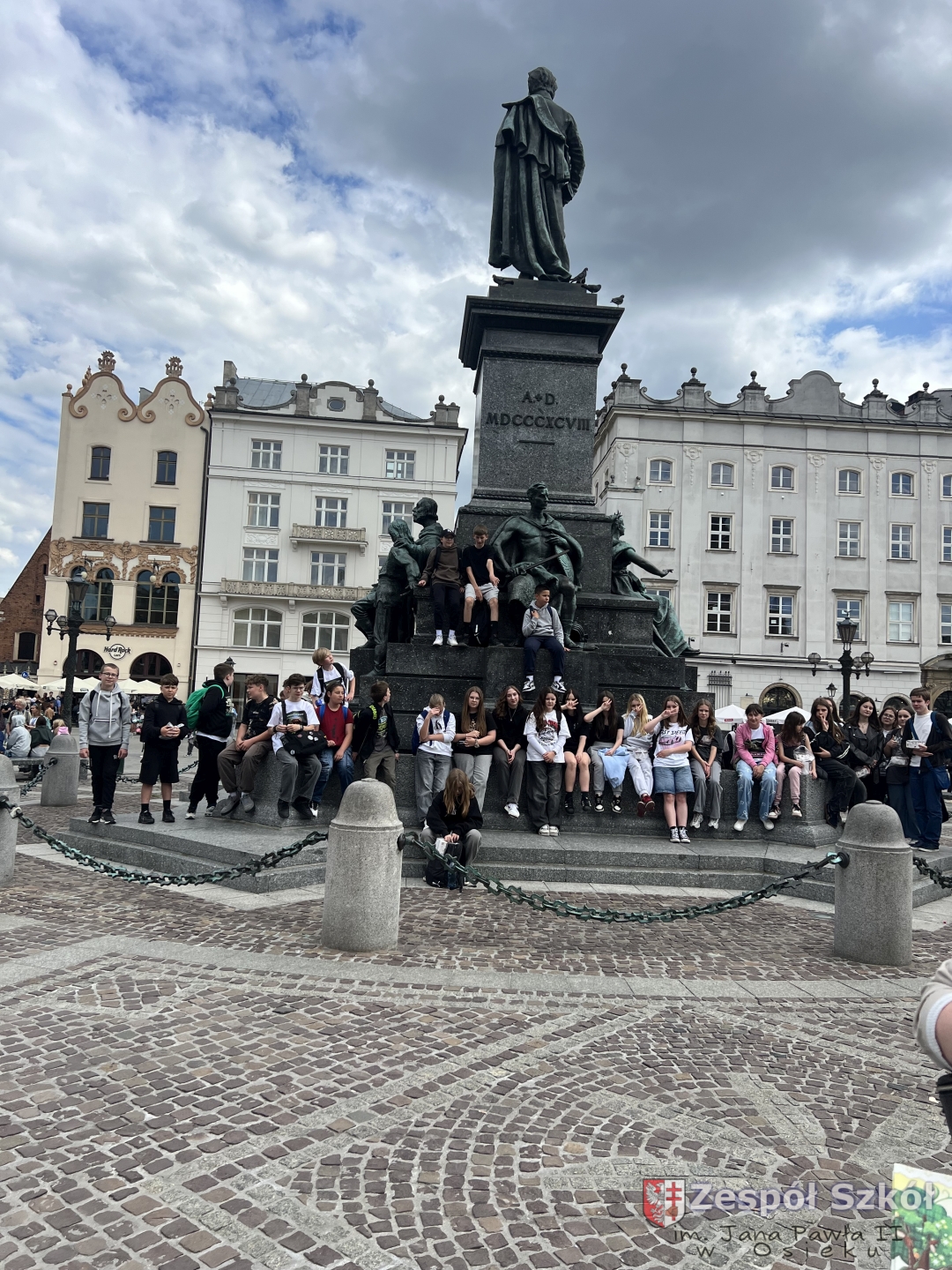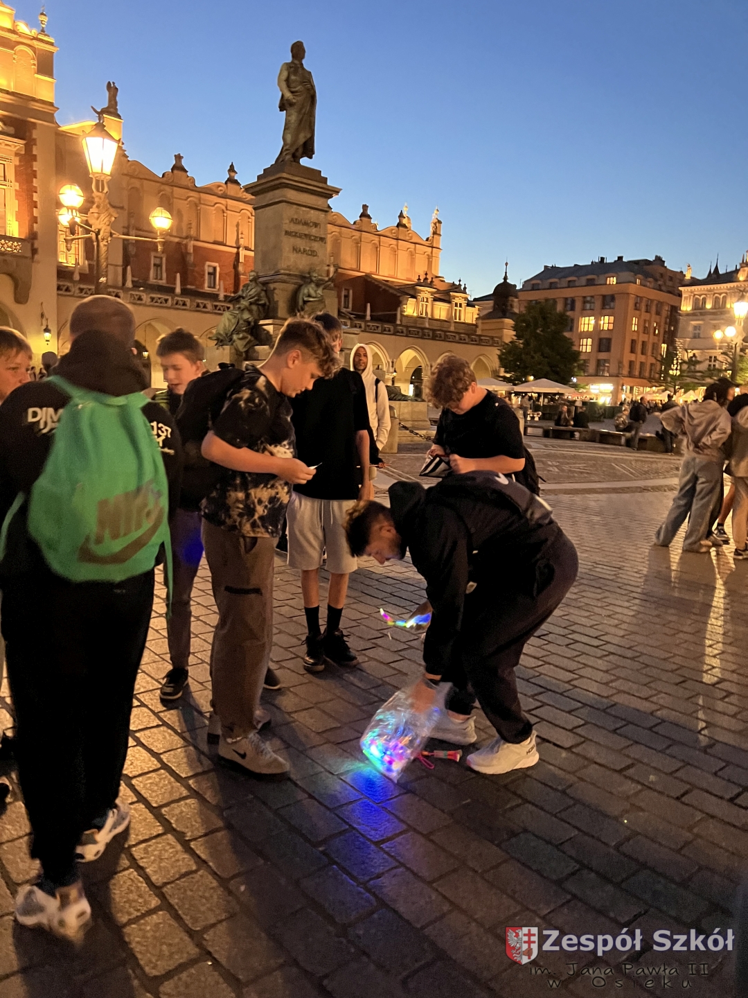z najważniejszymi momentami w dziejach Krakowa. Spacer zakończył się na Rynku Głównym – jednym z największych średniowiecznych placów Europy. Uczniowie zatrzymali się przy Kościele Mariackim, Sukiennicach i Wieży Ratuszowej, słuchając ciekawostek
