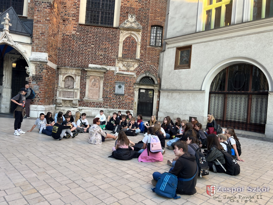 Następnie uczniowie odbyli spacer historyczną Drogą Królewską. Zwiedzanie rozpoczęło się u stóp Zamku Królewskiego na Wawelu, gdzie poznali historię polskich królów, miejsca koronacji oraz tajemnice wawelskiej katedry. Przechodząc ulicą Grodzką, mieli okazję zobaczyć liczne zabytkowe kościoły, pałace i kamienice związane